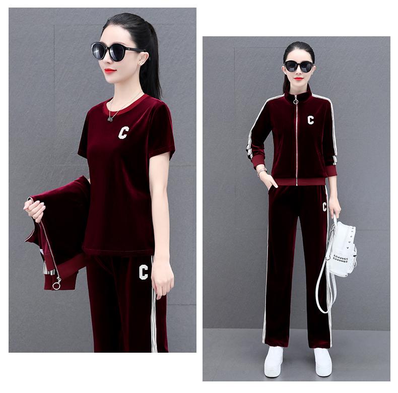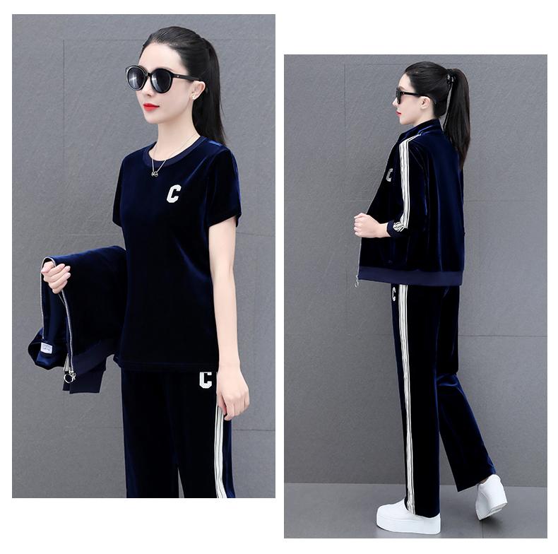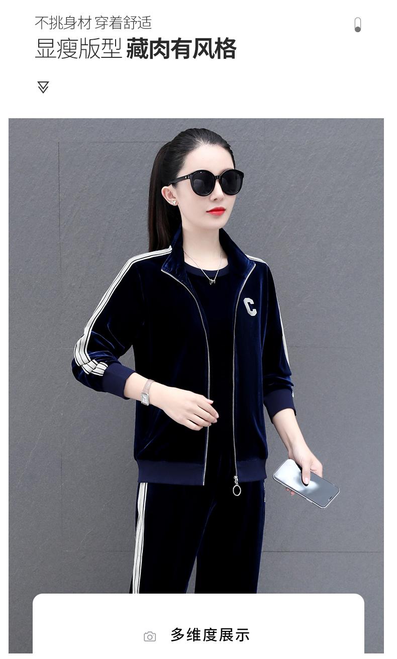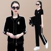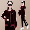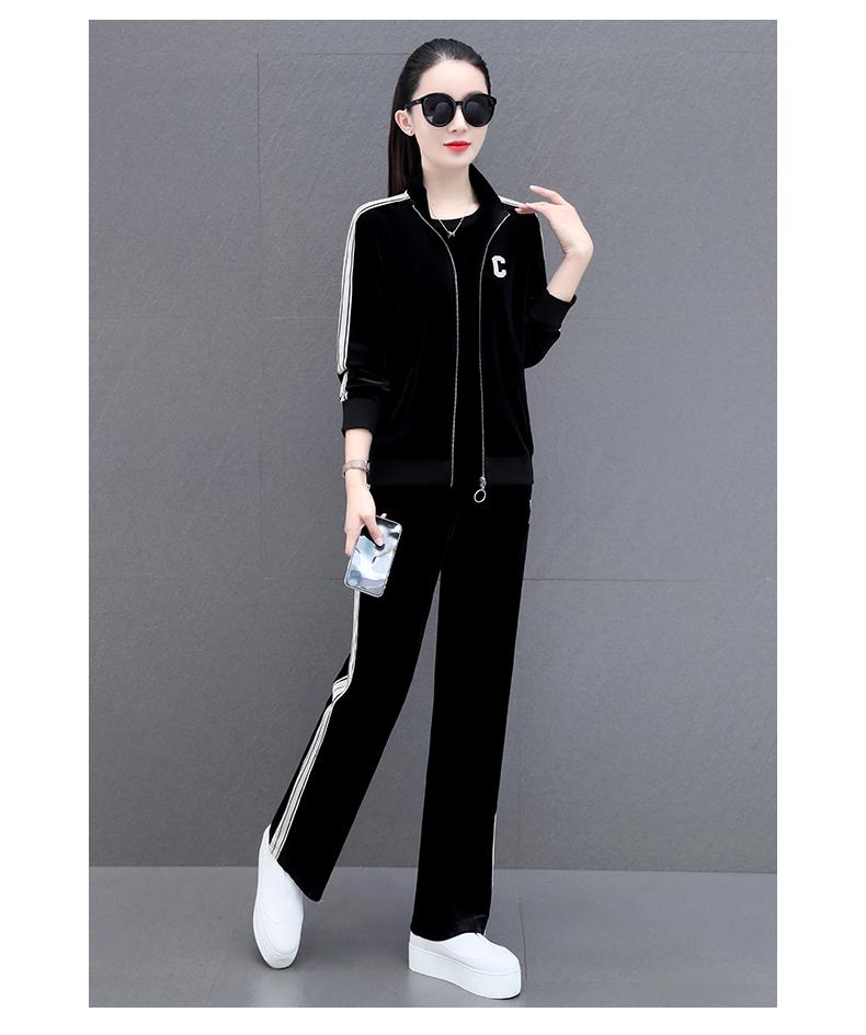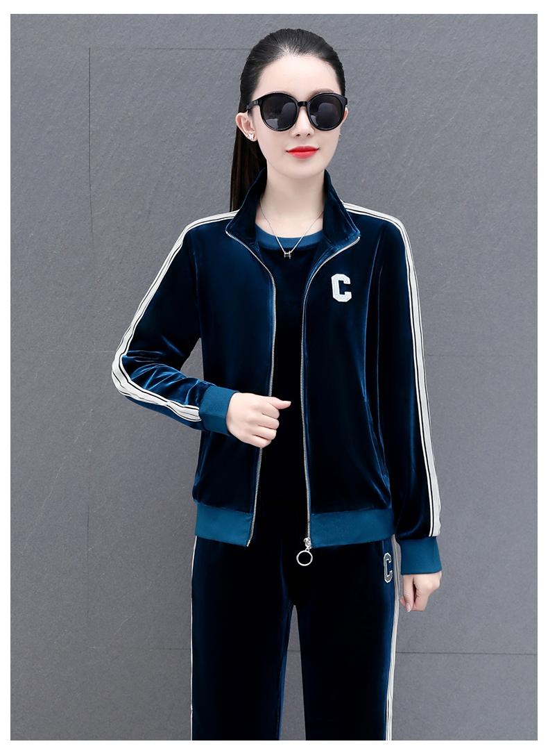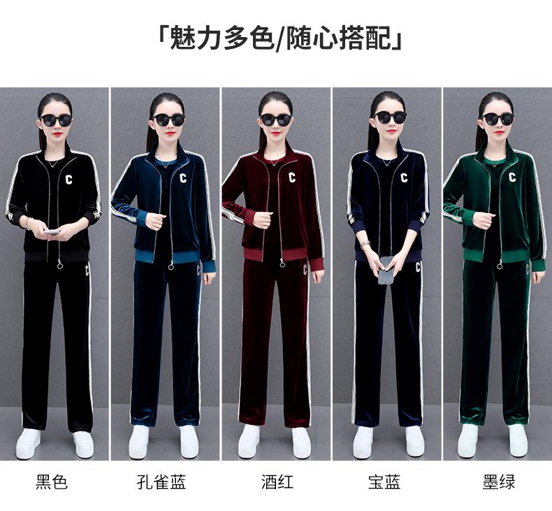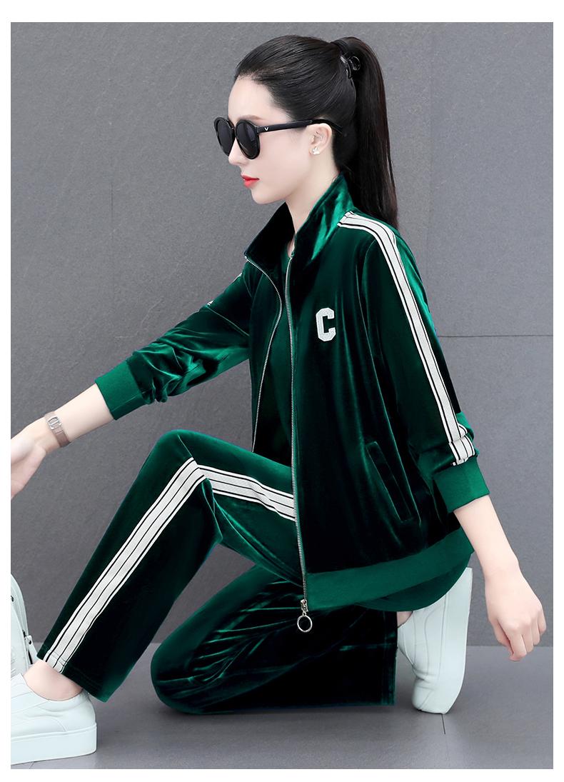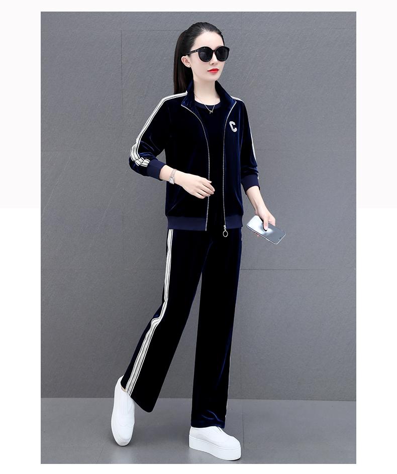 Traje para correr matutino para mujer, primavera y otoño, nuevo 2023, terciopelo dorado para mujer, adelgazante, que reduce la edad, estilo occidental, ropa casual, conjunto deportivo de tres piezas