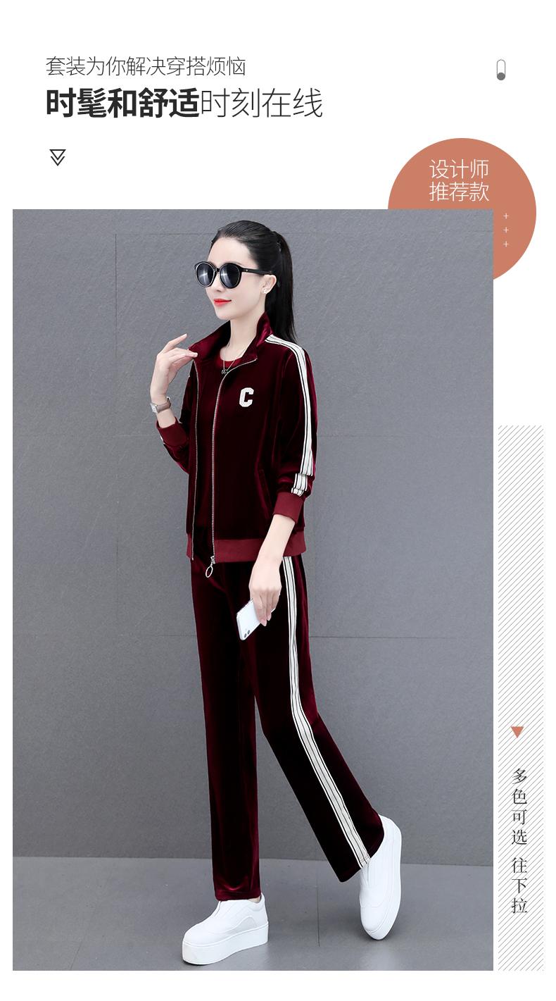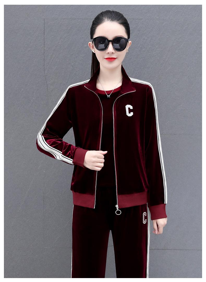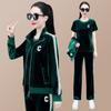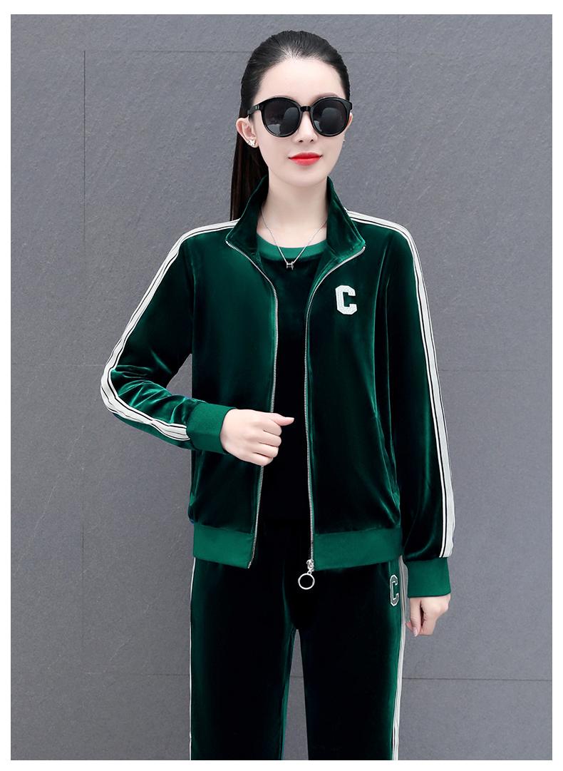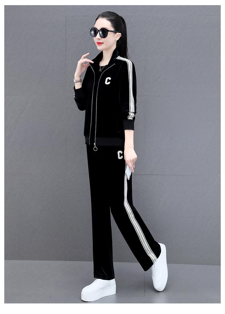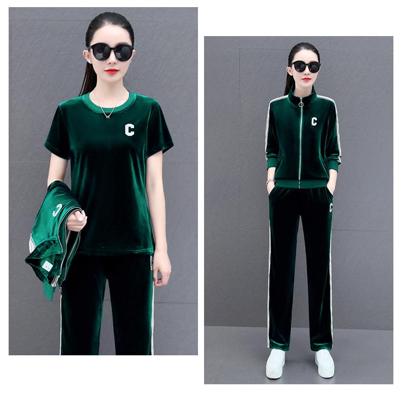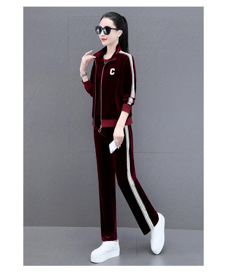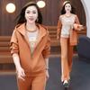 Traje para correr matutino para mujer, primavera y otoño, nuevo 2023, terciopelo dorado para mujer, adelgazante, que reduce la edad, estilo occidental, ropa casual, conjunto deportivo de tres piezas