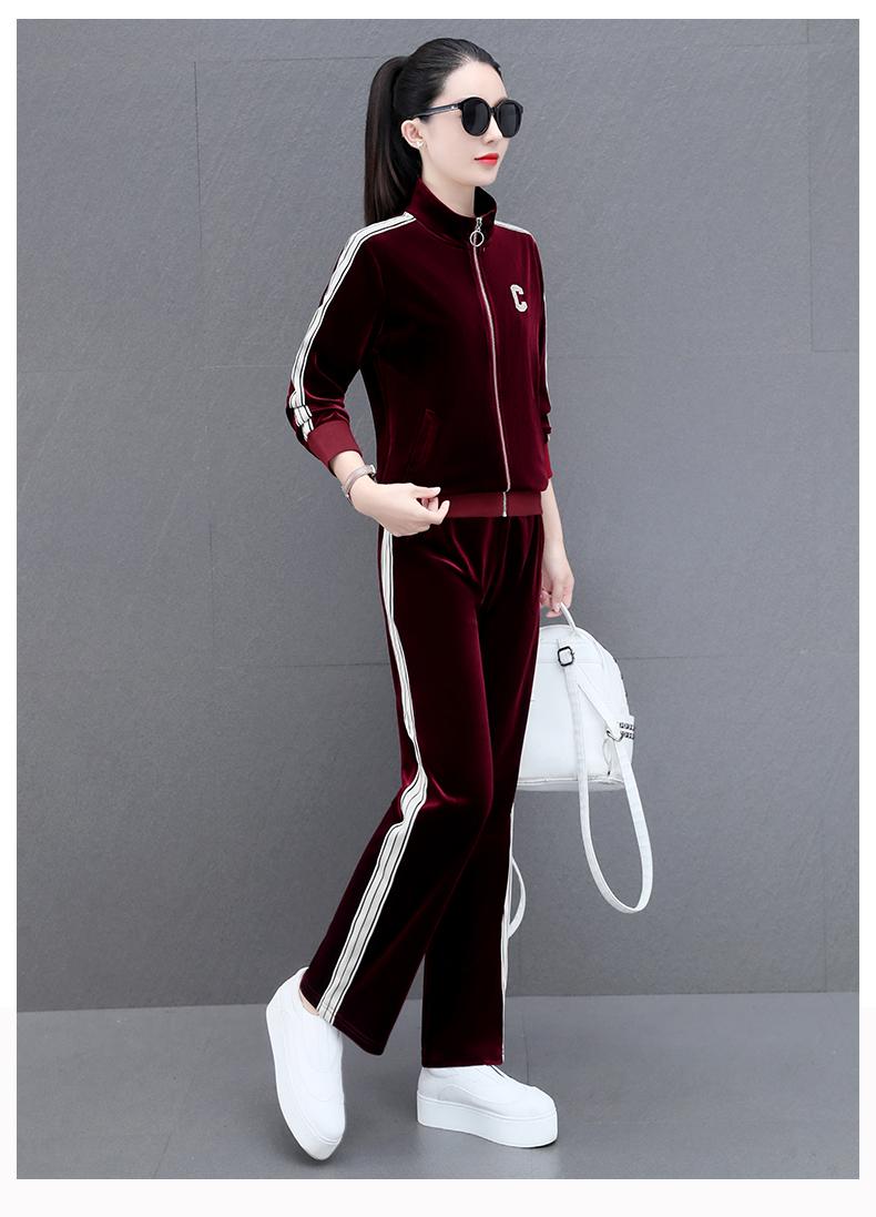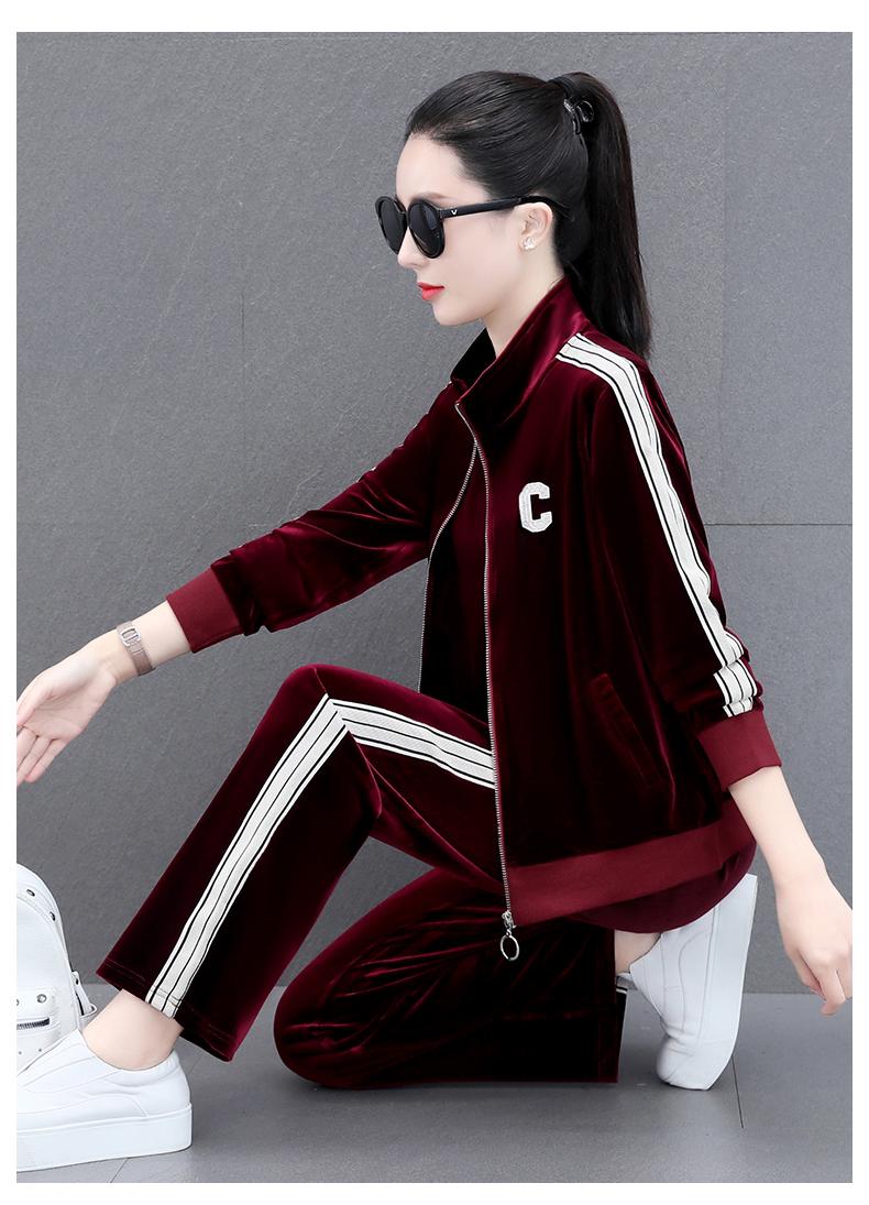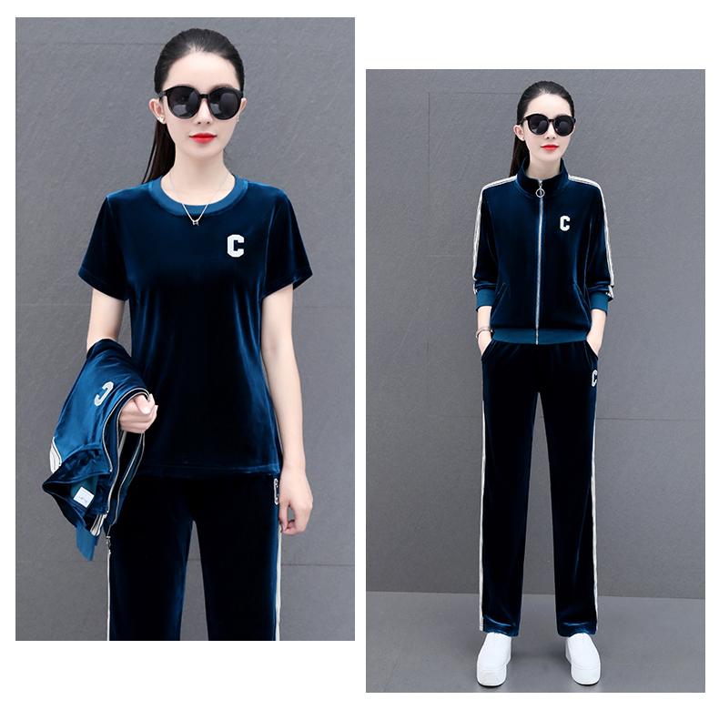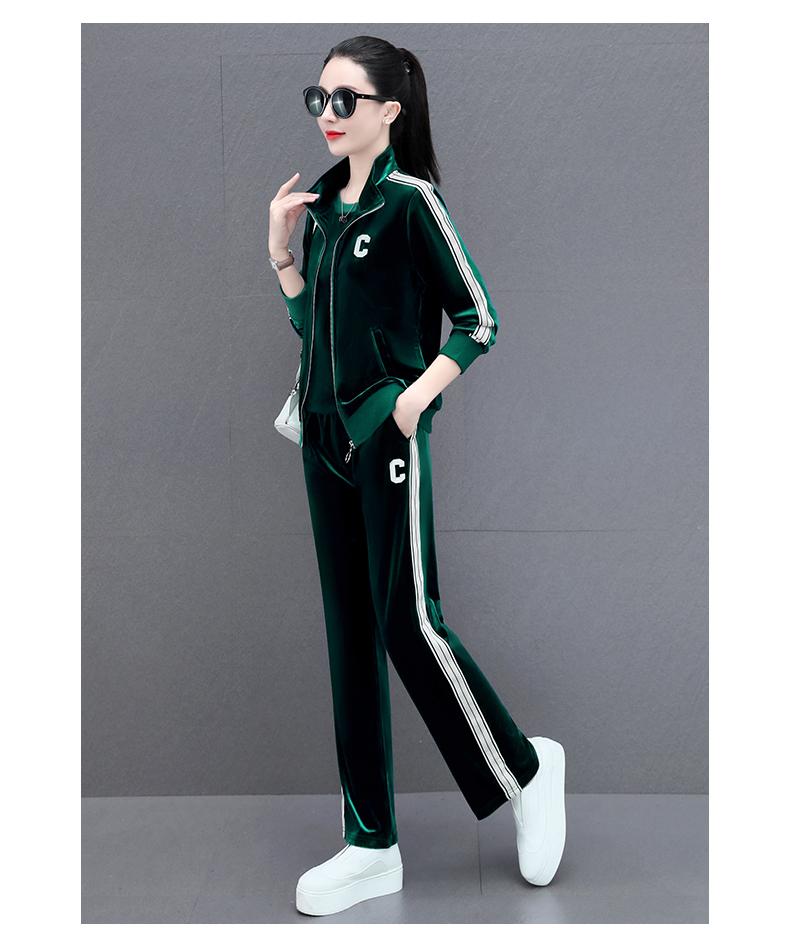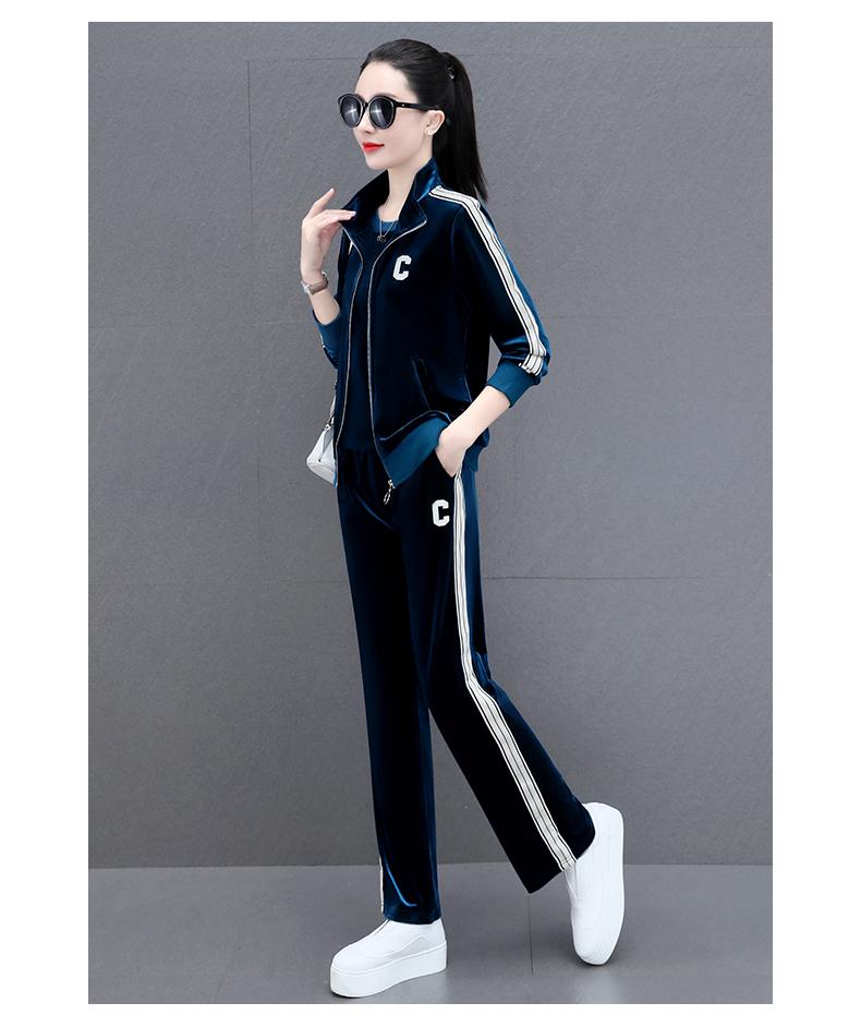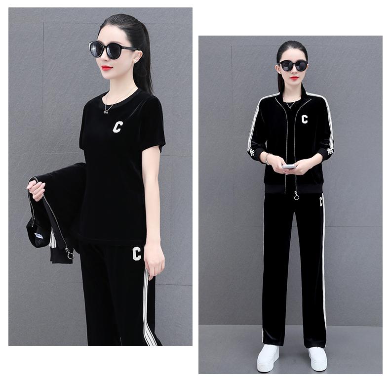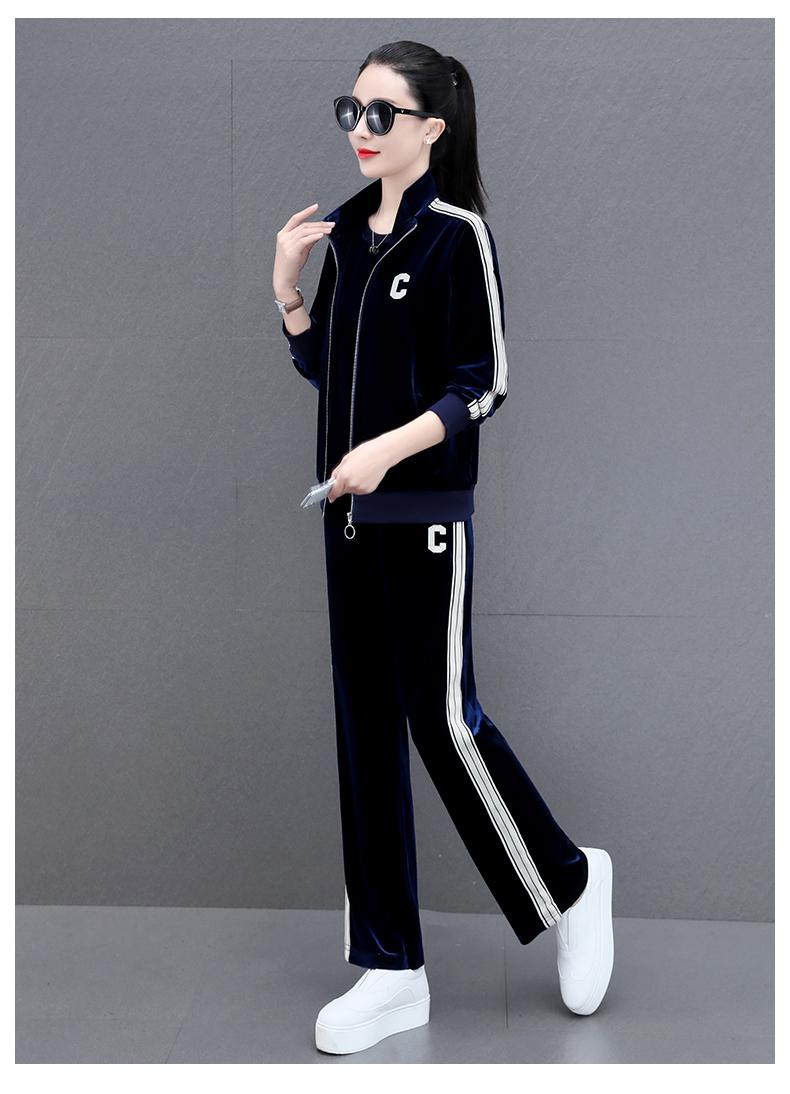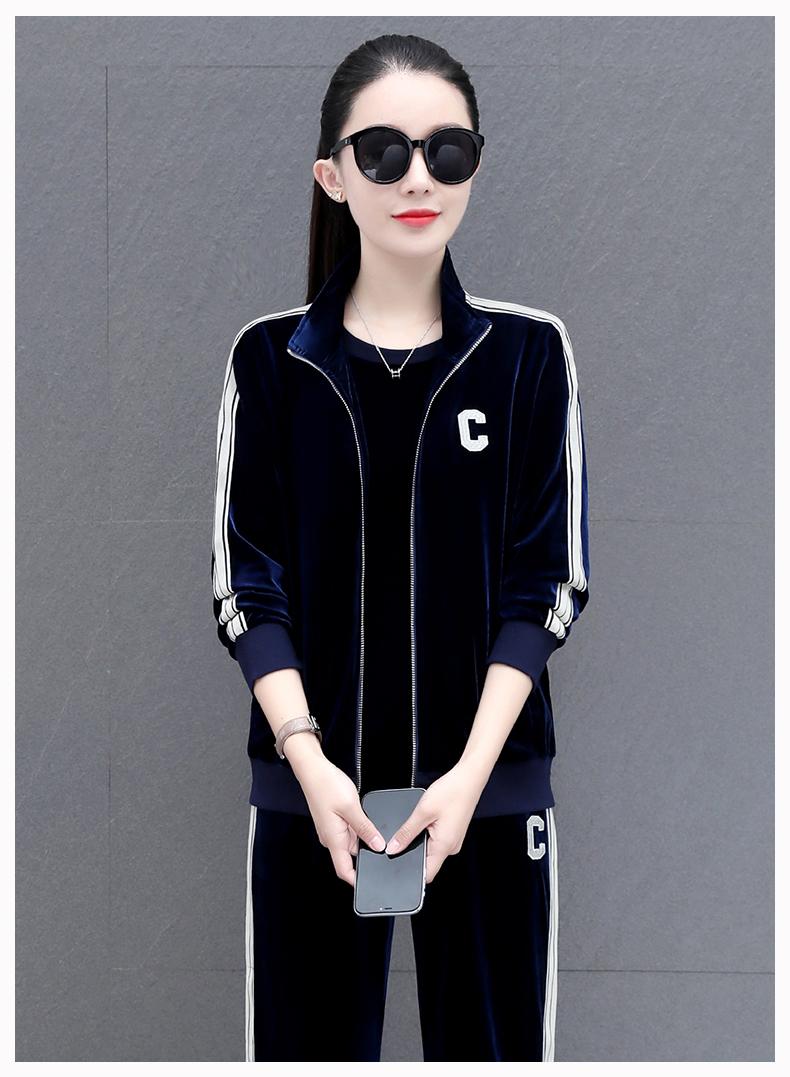 Traje para correr matutino para mujer, primavera y otoño, nuevo 2023, terciopelo dorado para mujer, adelgazante, que reduce la edad, estilo occidental, ropa casual, conjunto deportivo de tres piezas