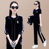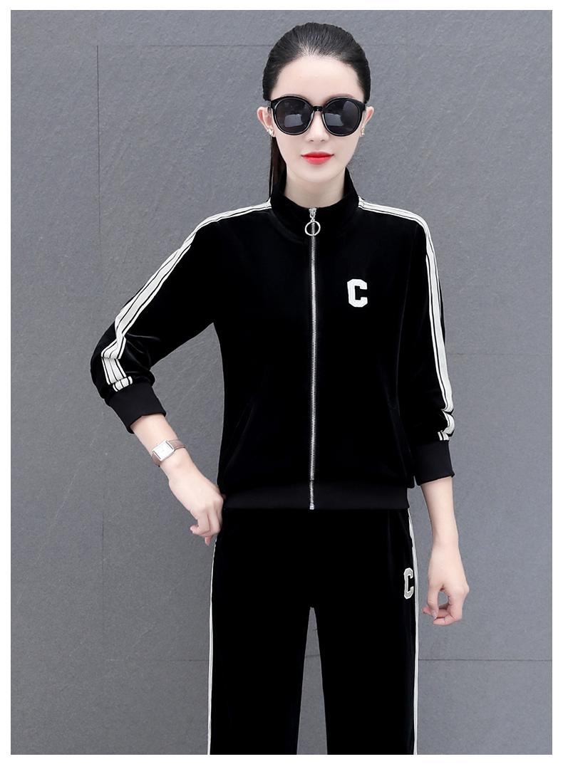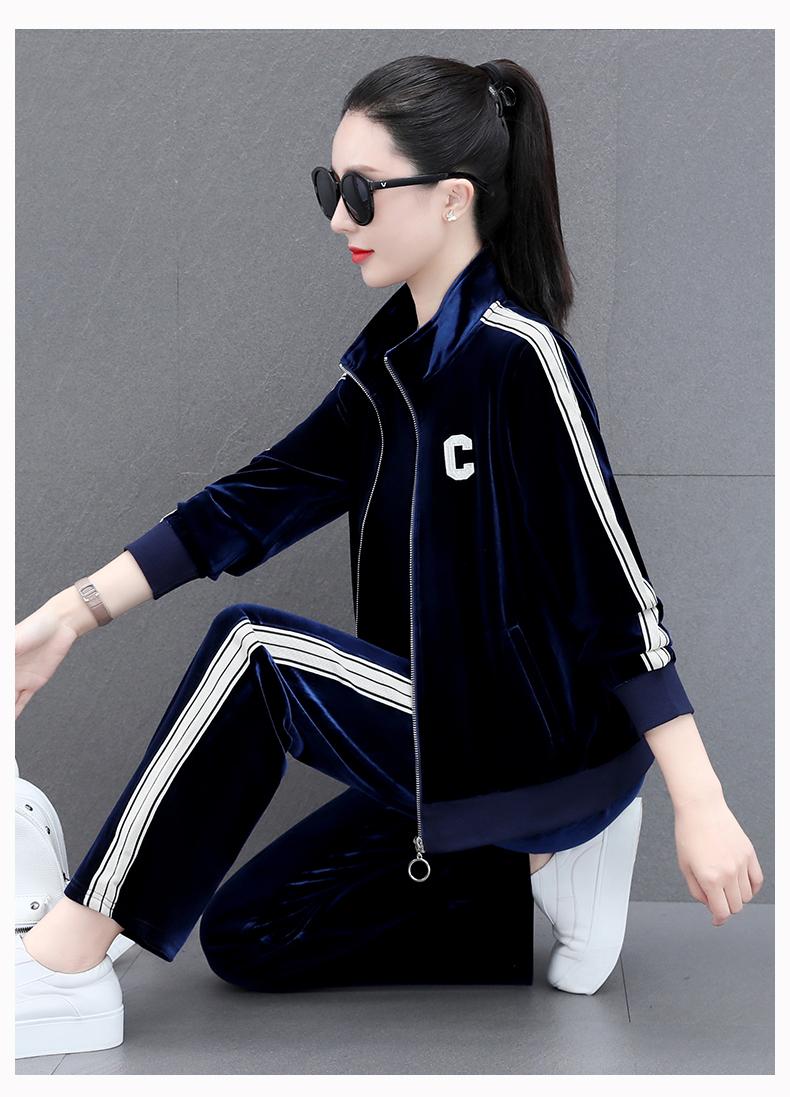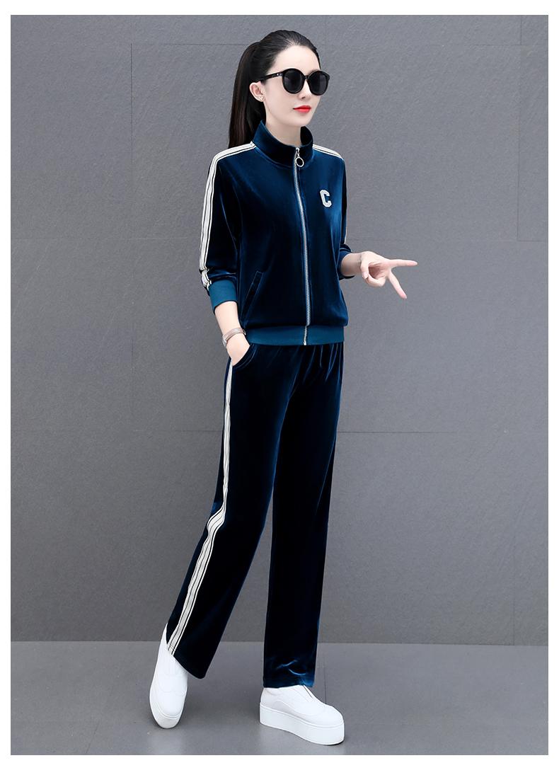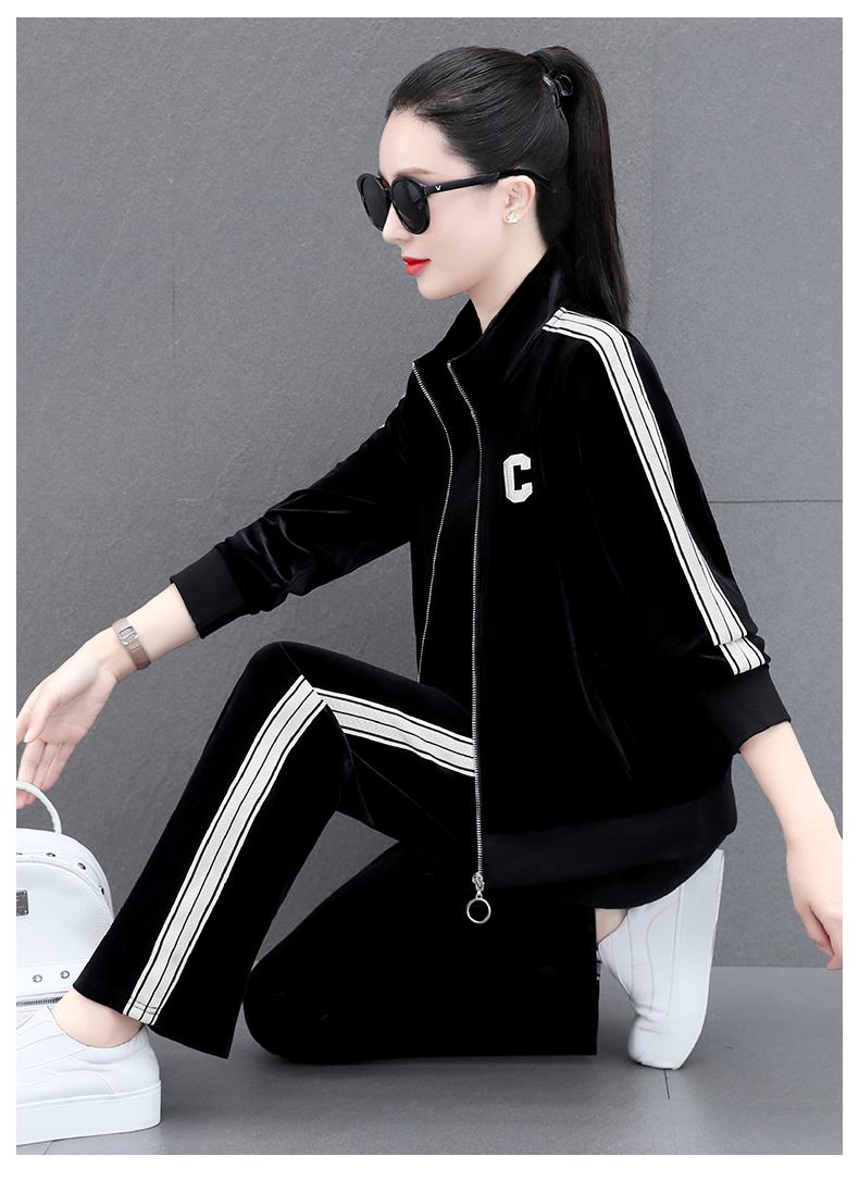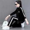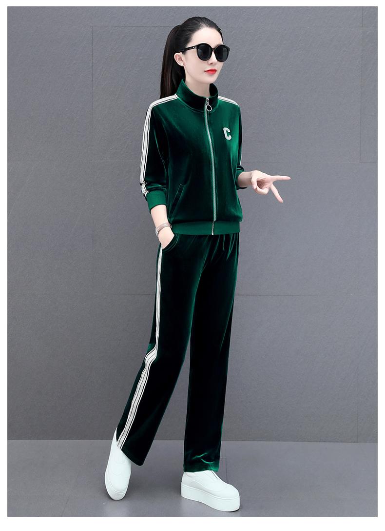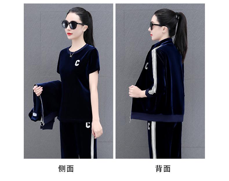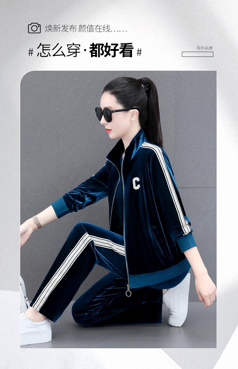 Traje para correr matutino para mujer, primavera y otoño, nuevo 2023, terciopelo dorado para mujer, adelgazante, que reduce la edad, estilo occidental, ropa casual, conjunto deportivo de tres piezas
