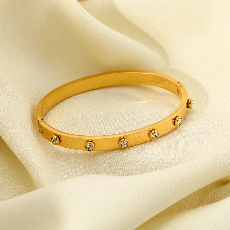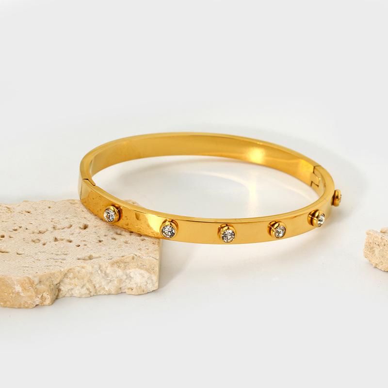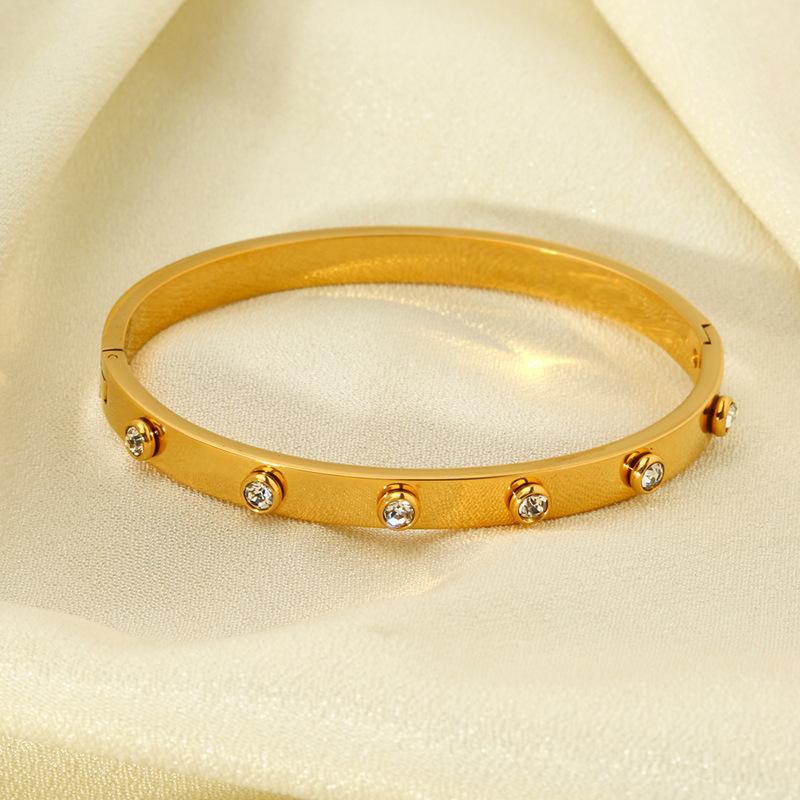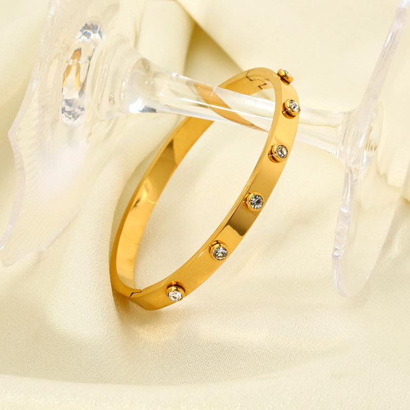 Pulsera de hebilla de circonita con incrustaciones de oro de 18 quilates, diseño de moda para mujer, simple para combinar con todo, nueva pulsera de acero de titanio, pulsera al por mayor