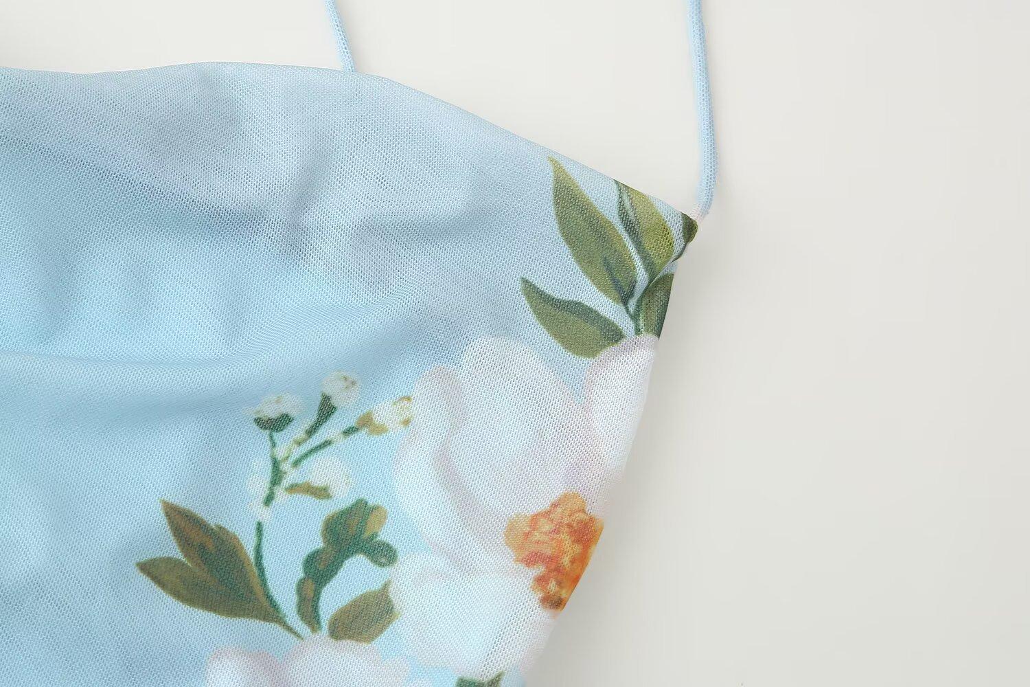 Primavera 2025 Nuevo Vestido Corto de Tirantes de Moda Femenina Transfronteriza Europea y Americana de Malla de Seda Estampada w 017 117