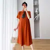 Vestido de maternidad de verano 2024, nuevo, coreano, a rayas, de seda helada, midi, suelto, de talla grande, para embarazadas