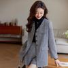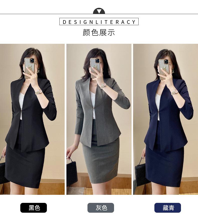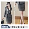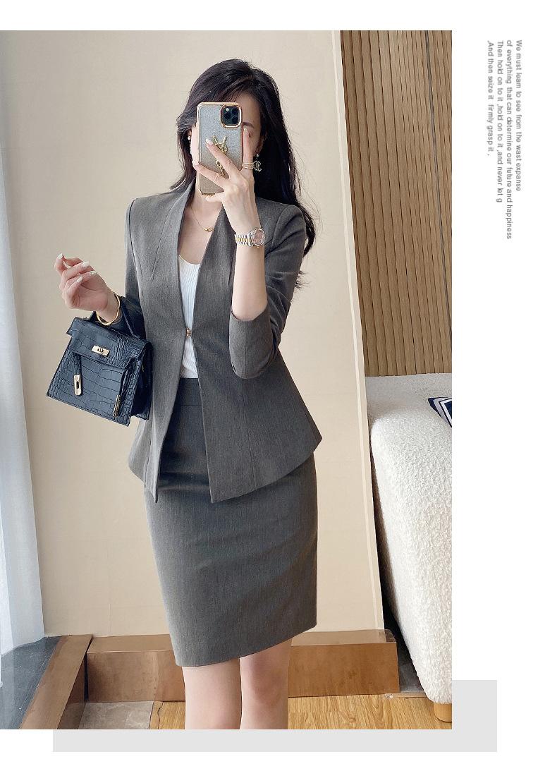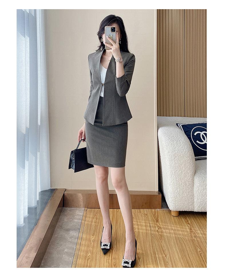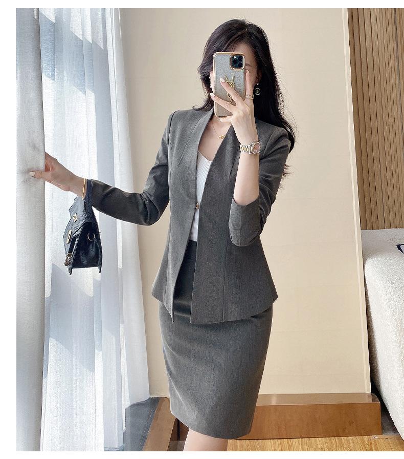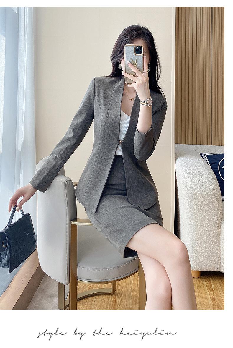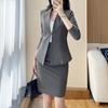 24 Primavera y otoño nuevo traje gris sin cuello de manga larga chaqueta de mujer pantalones falda traje de dos piezas de moda simple