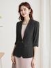 Chaqueta negra de cuello pequeño con mangas de tres puntos para mujer, de manga media, para primavera, verano y otoño, profesional, informal, elegante, a la moda, combina con todo.