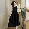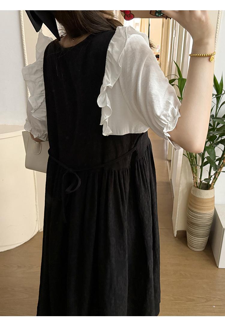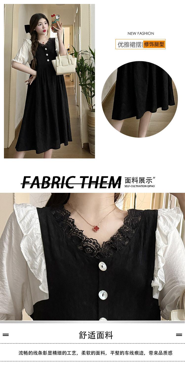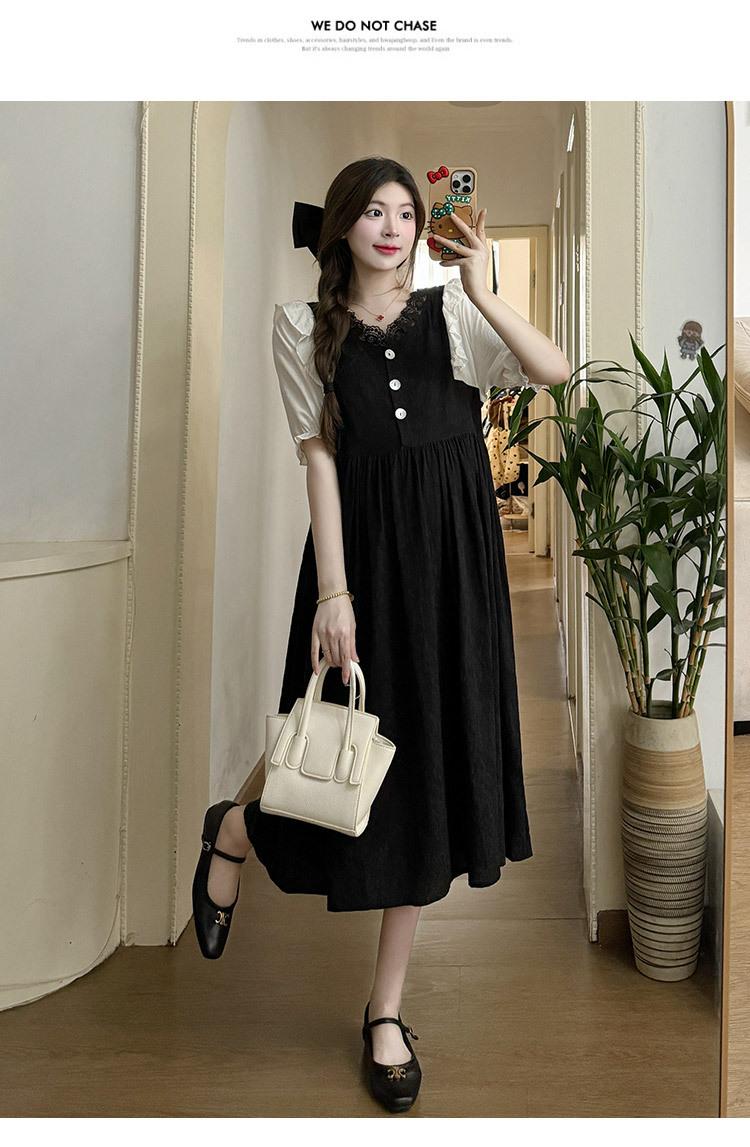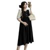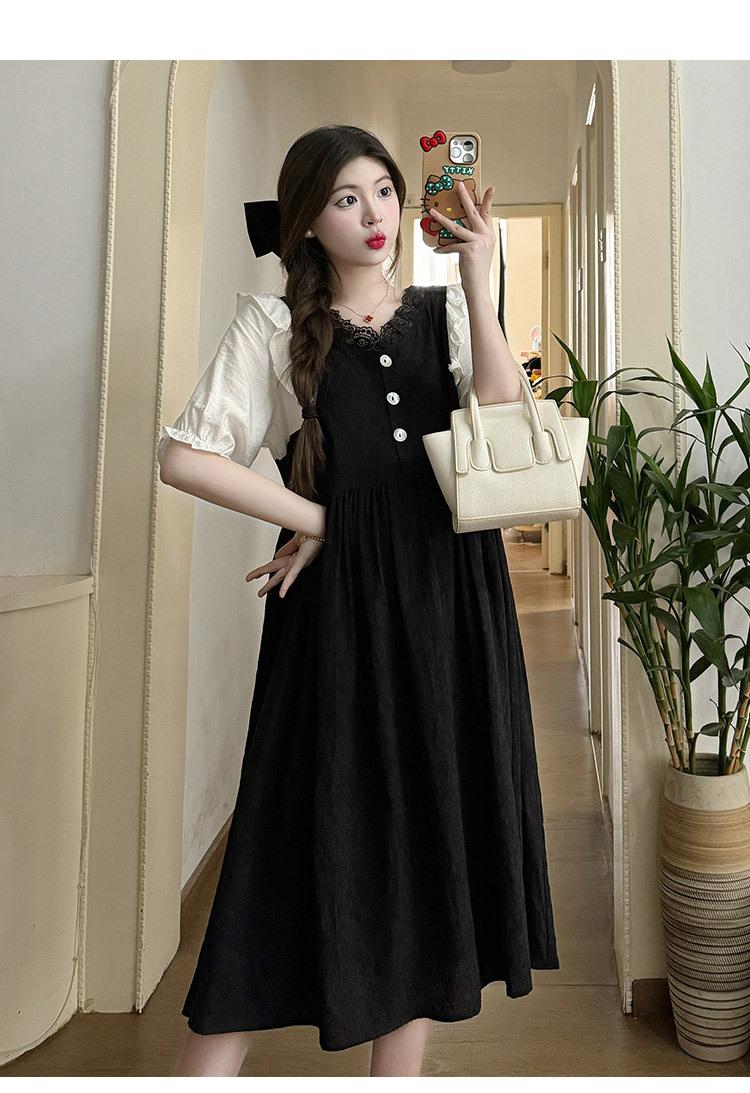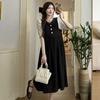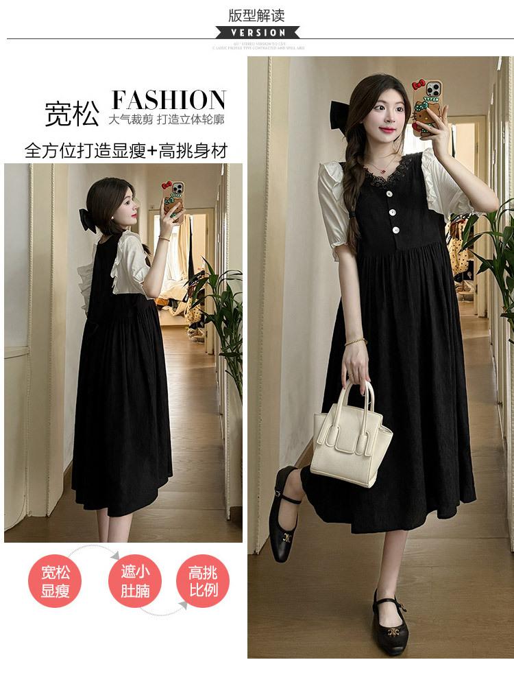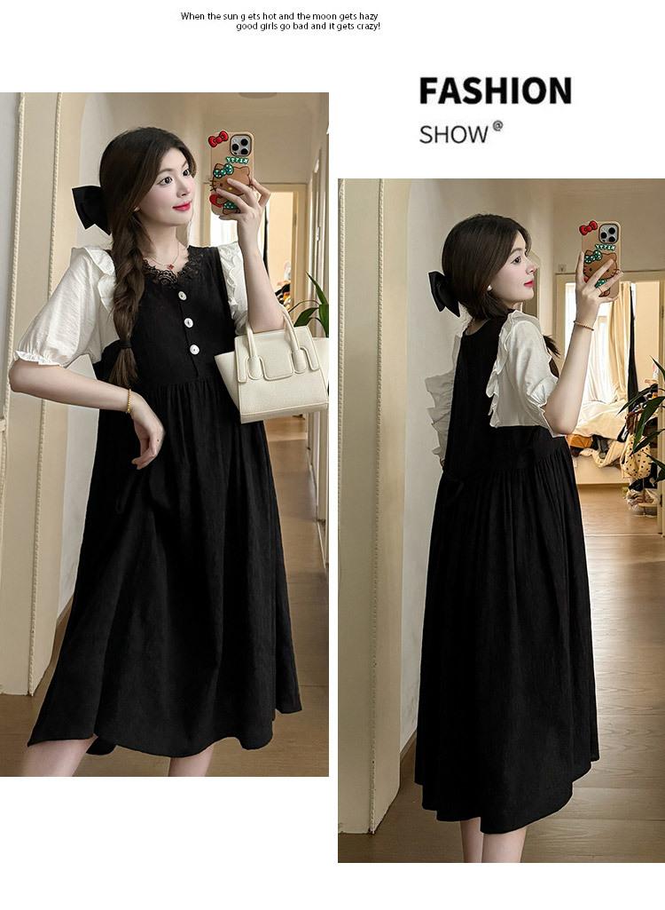 Vestido de Verano de Maternidad 2025 Nuevo Retro Francés Patchwork Vestido de Color en Contraste de Textura Oscura