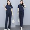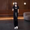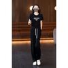 Traje de verano 2025 para mujer, informal, de manga corta, con pantalones anchos, estilo occidental, ropa deportiva de dos piezas, comercio exterior