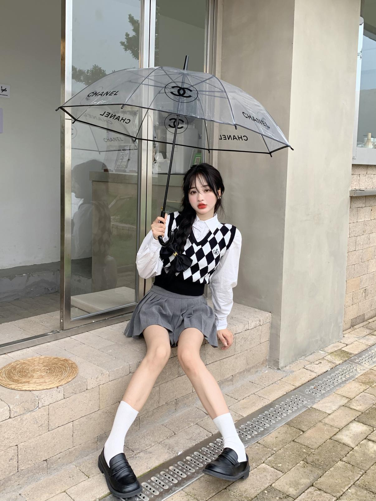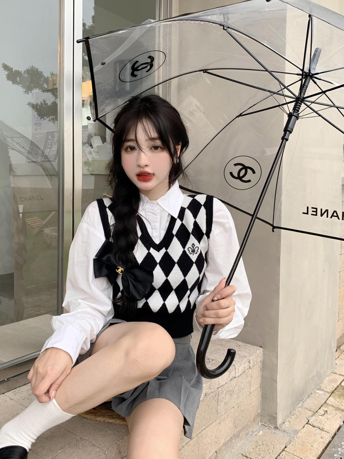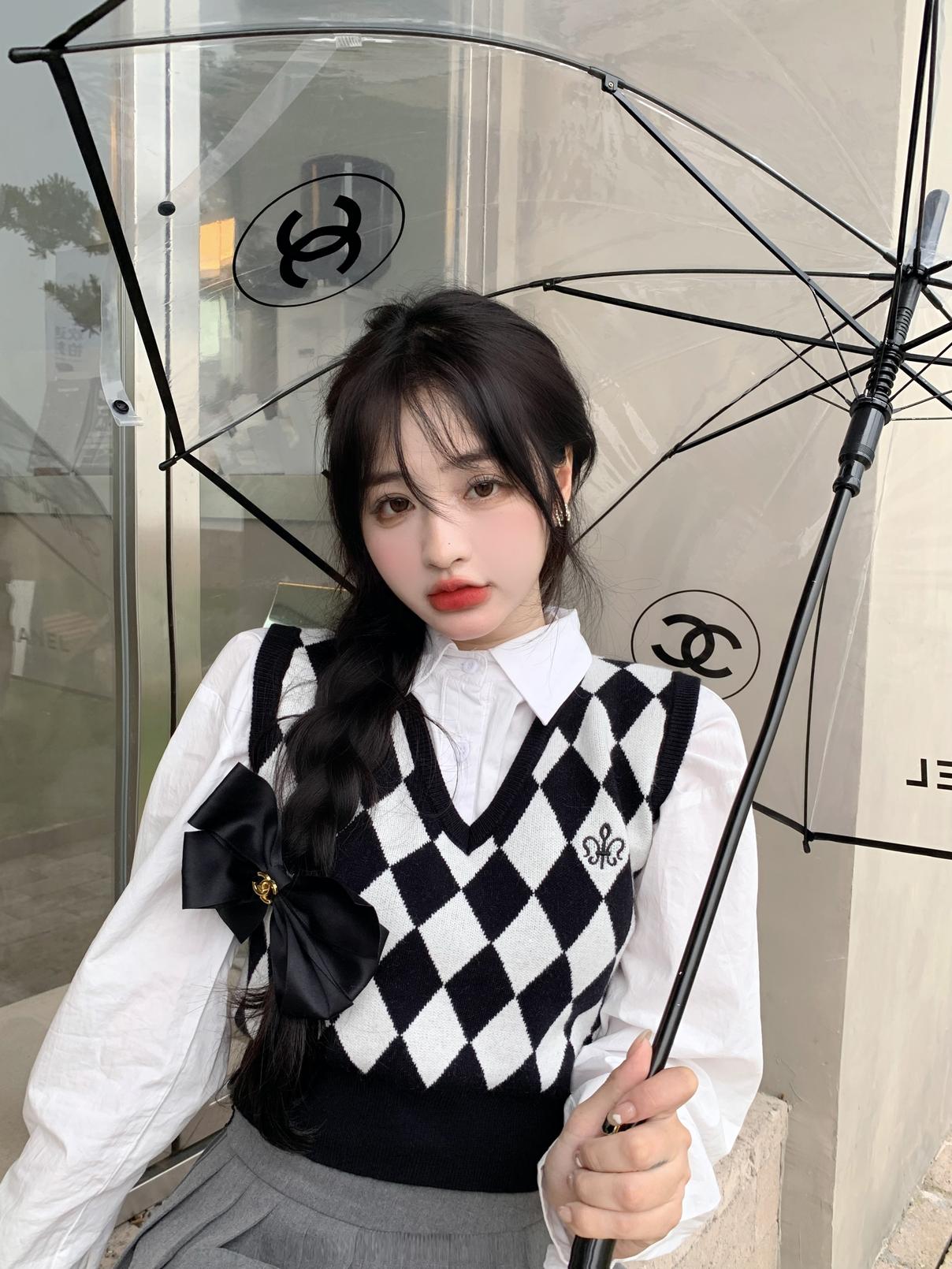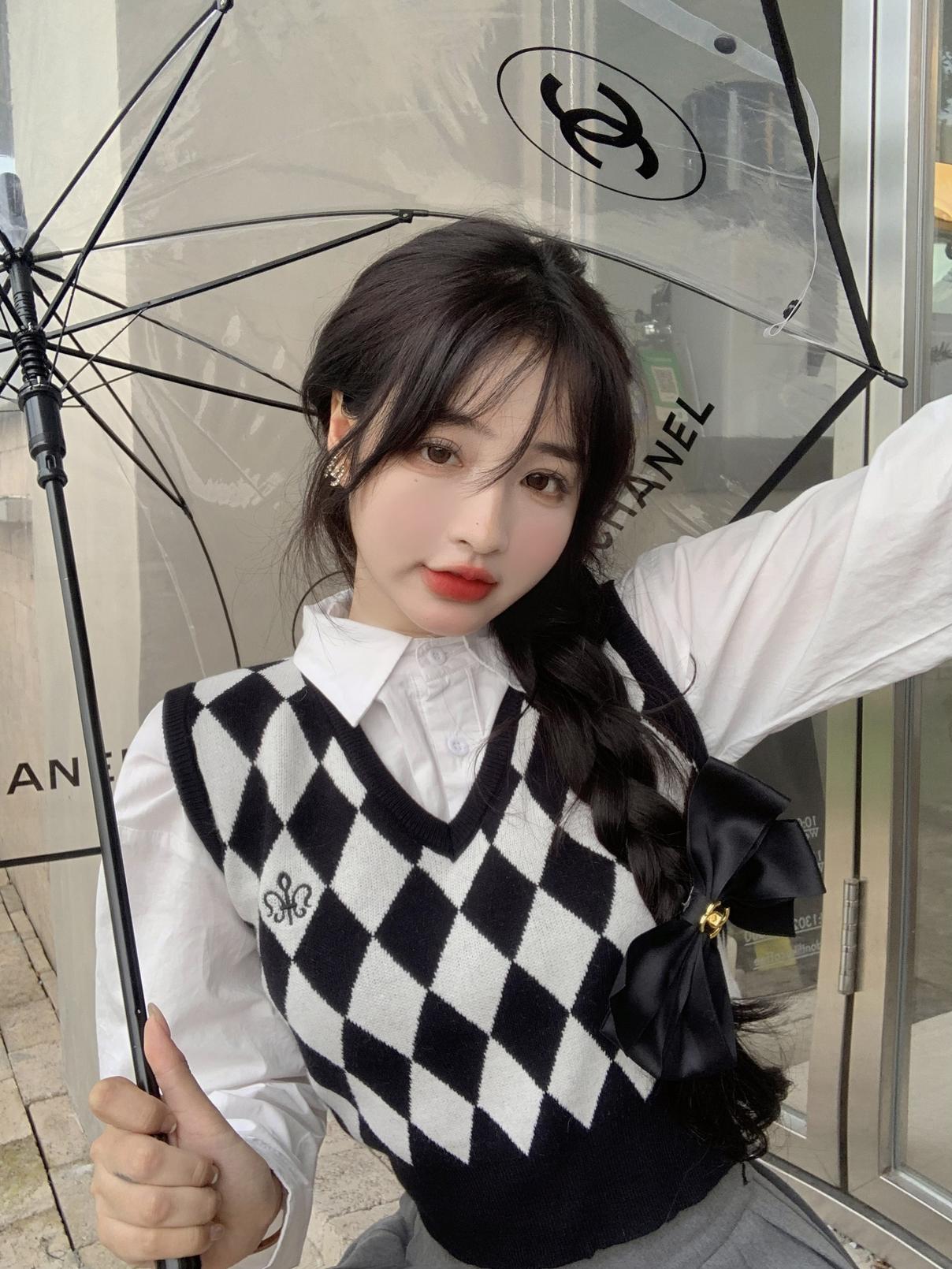 Chaleco de punto romboidal blanco y negro de manga larga estilo universitario, diseño de camisa apilada, suéter corto Sense para mujer