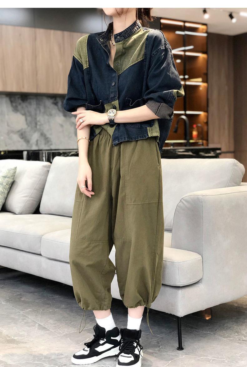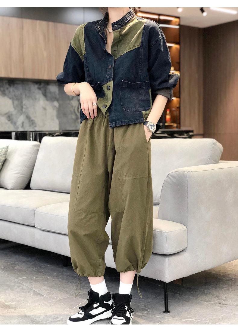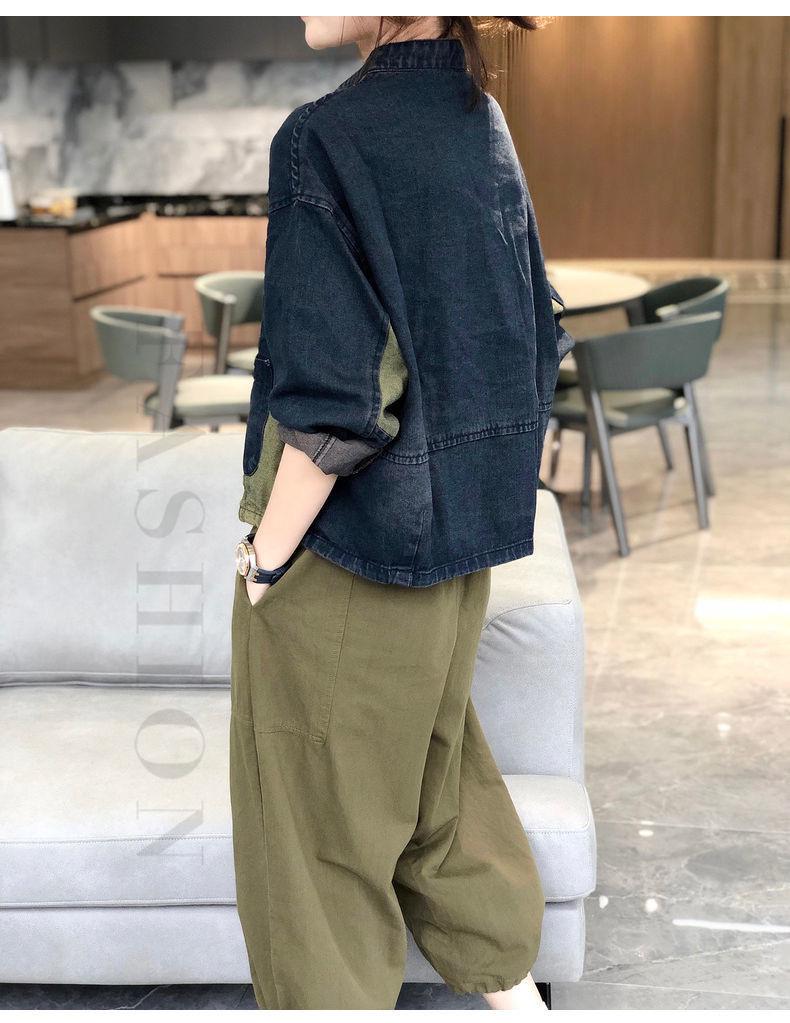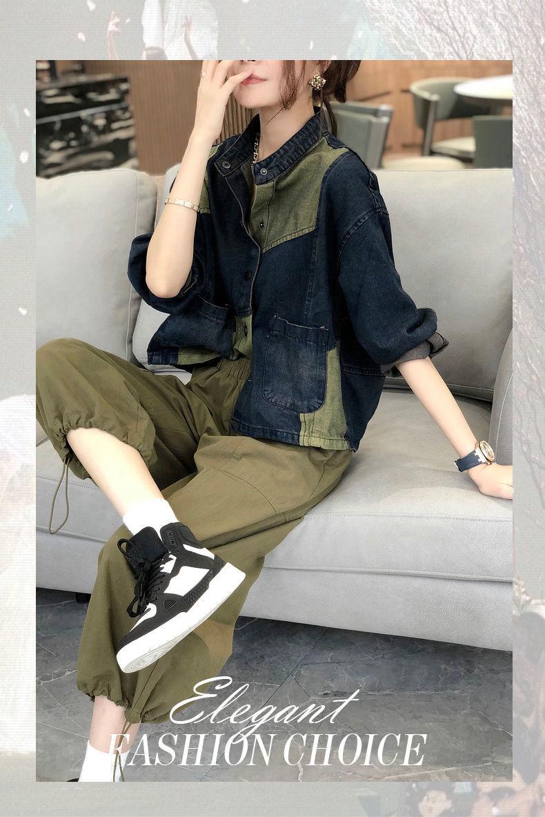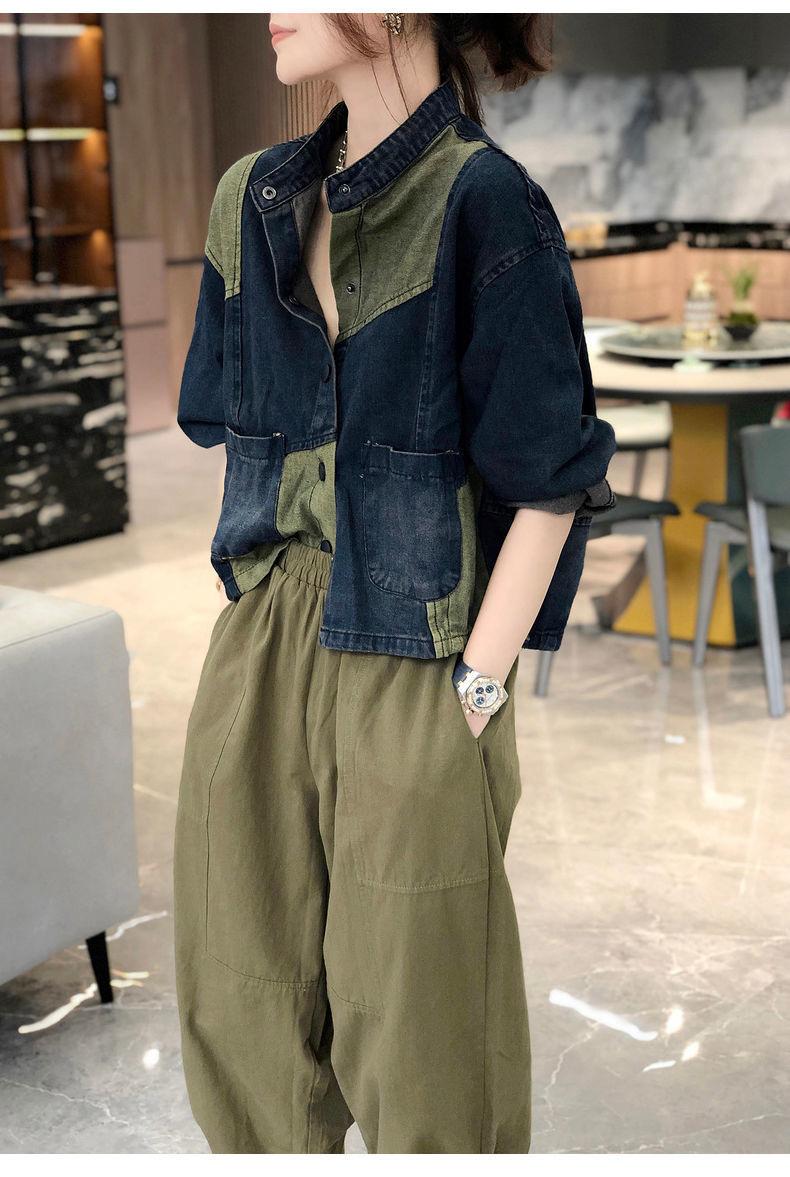 Chaqueta vaquera de estilo americano con cuello vertical corto y costuras para mujer, chaqueta vaquera de diseño nicho, para exportación de comercio exterior