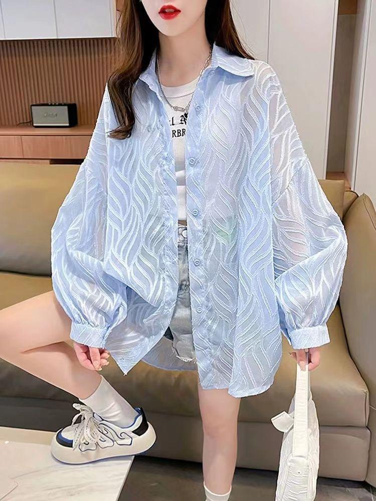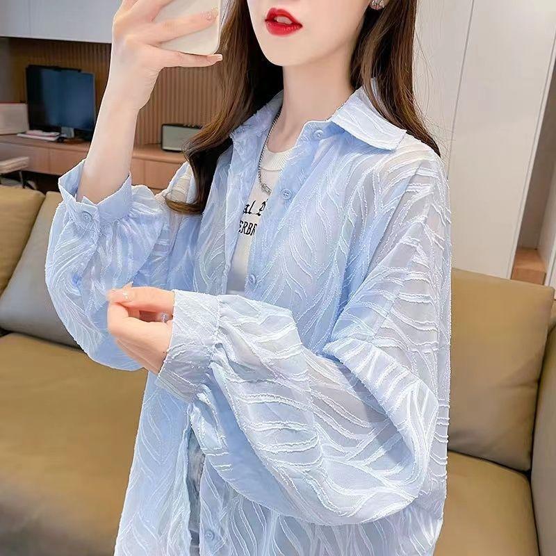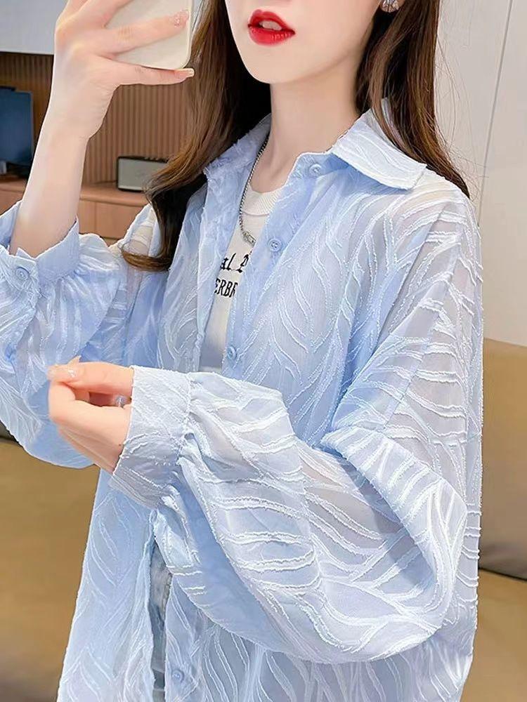 Camisa de Manga Larga Ropa Protectora del Sol Verano 2025 Nueva Llegada Talla Extra Suelta Delgada Transpirable Cárdigan Abrigo Top de Mujer