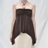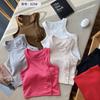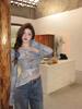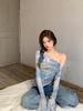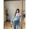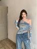 Playera Retro Halo de Hombro Estilo Americano para Mujer Primavera y Verano Bajo Irregular Chica Picante Ajustada Chic Top Corto de Malla