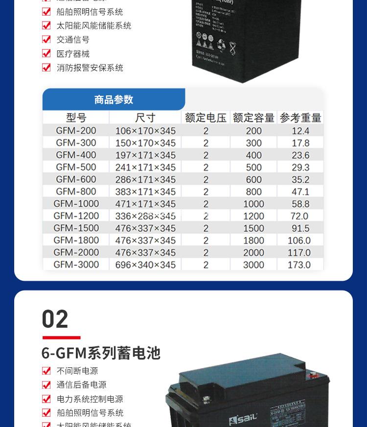 Sail 6-XFM-100 batería de plomo-ácido regulada por válvula equipo de sala de comunicaciones fuente de alimentación ininterrumpida UPS batería otro