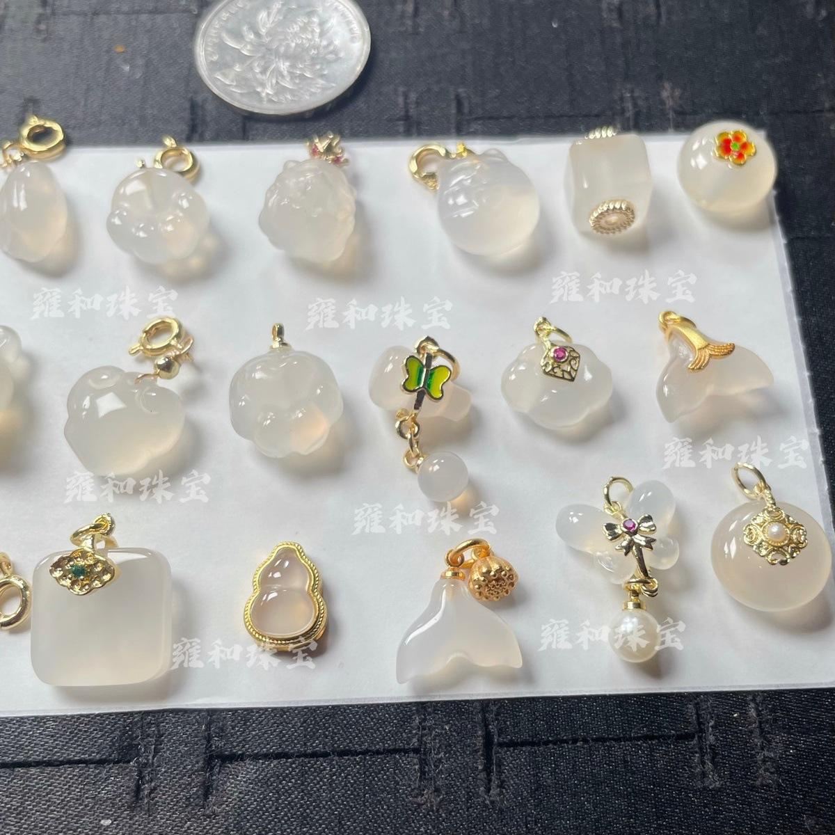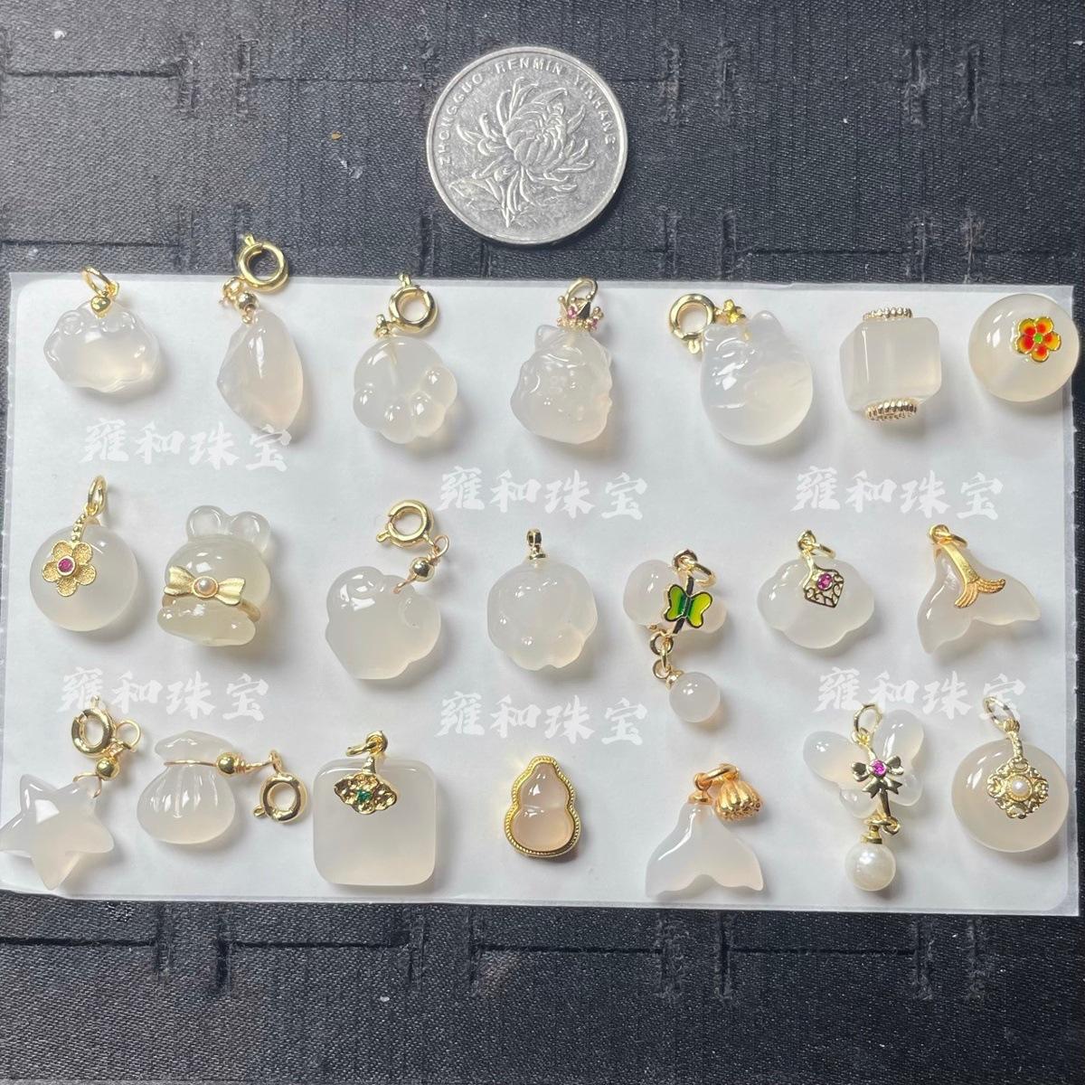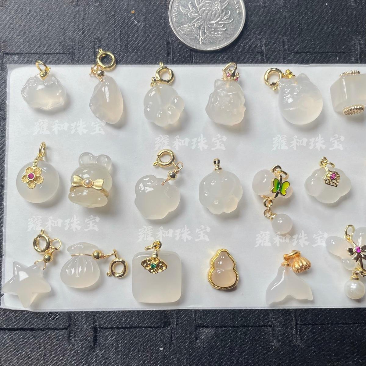 Calcedonia Ágata Optimizada Colgante Pequeño Multigema Fresco Zodíaco Vaina de Loto Pata de Gato Conejo Lindo Pequeño Desmontable