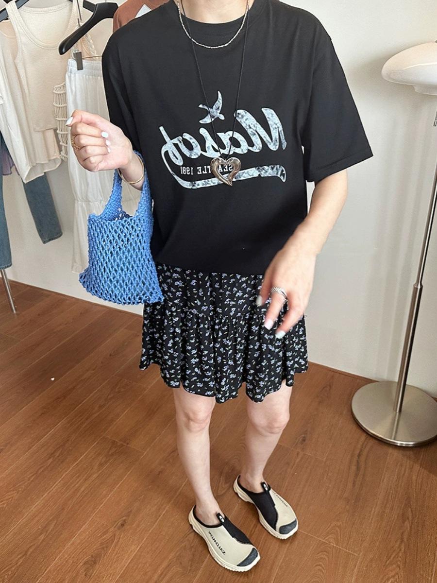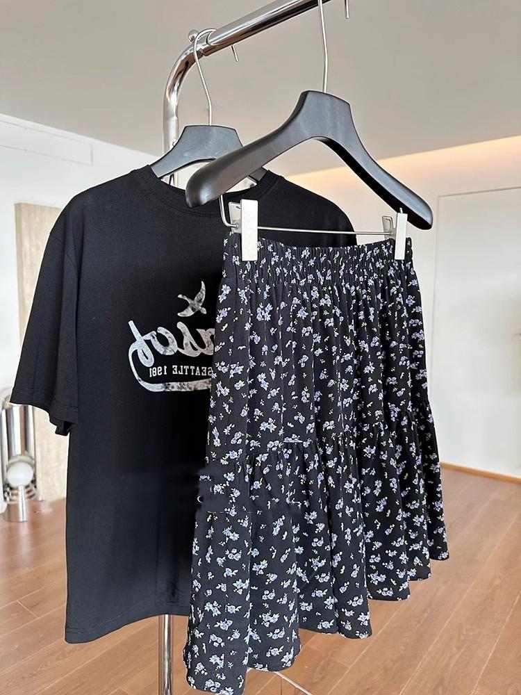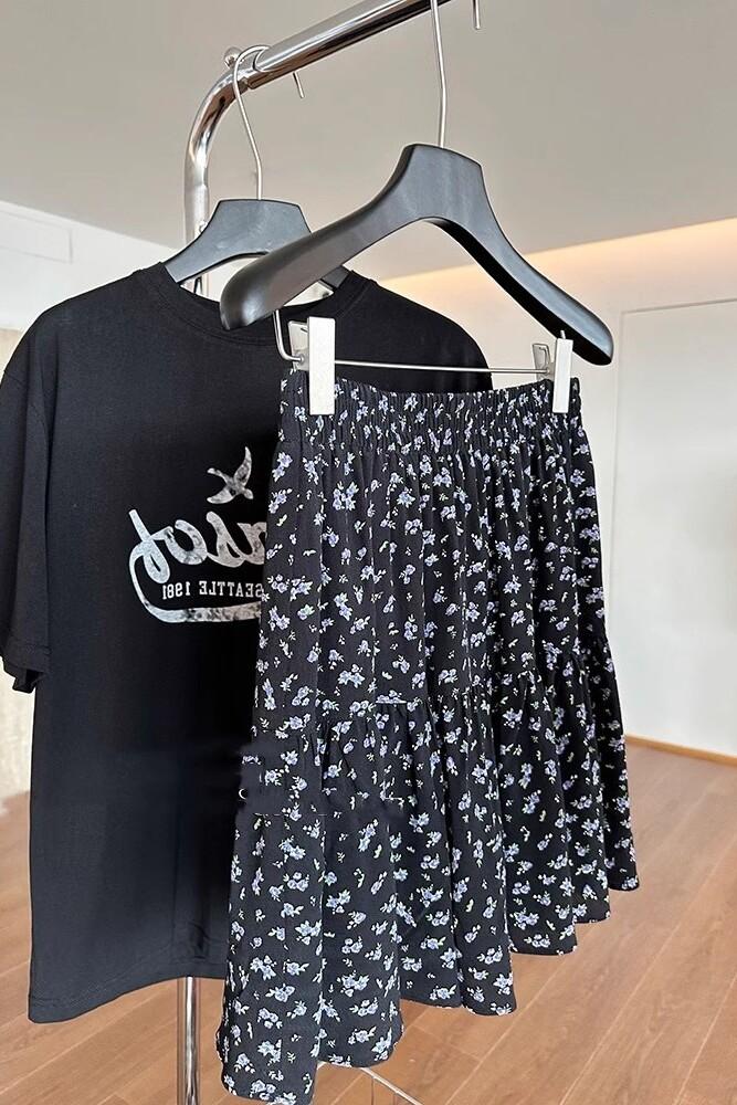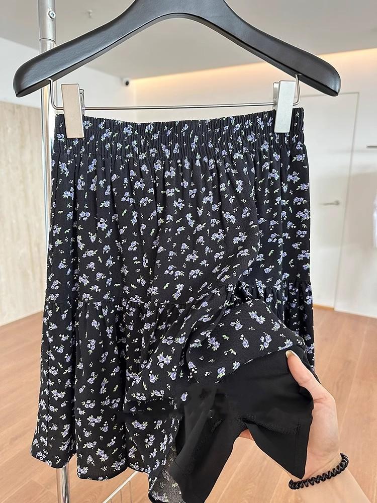 Culottes Florales Retro Negros para Mujer Primavera y Verano 2025 Nuevos Cintura Alta Adelgazantes Diseño de Falda Línea A Pastel 150 Culottes