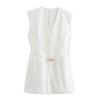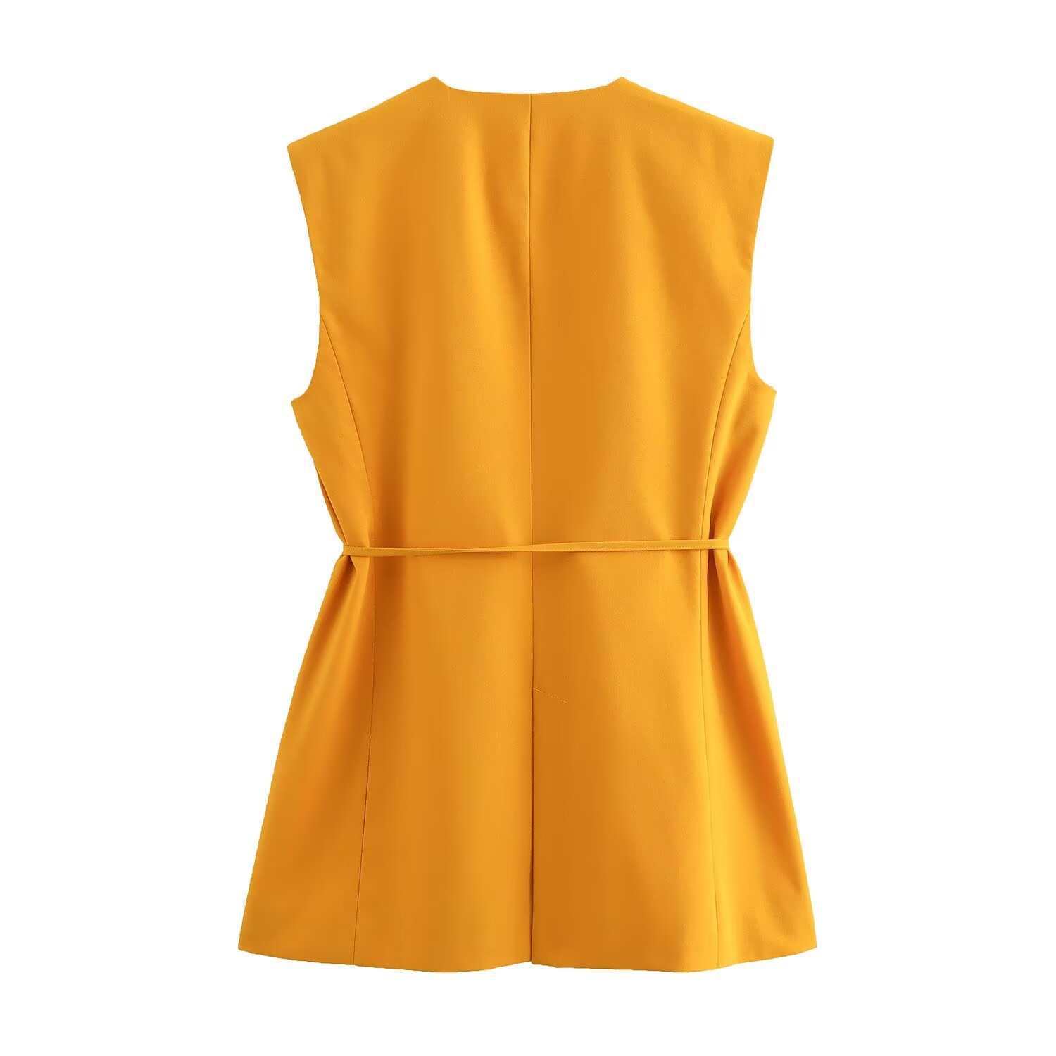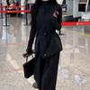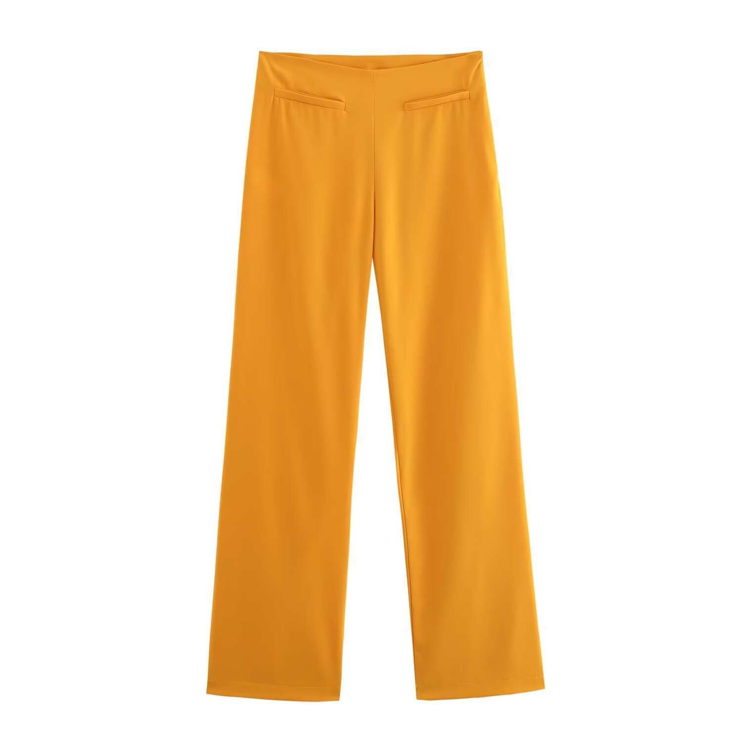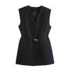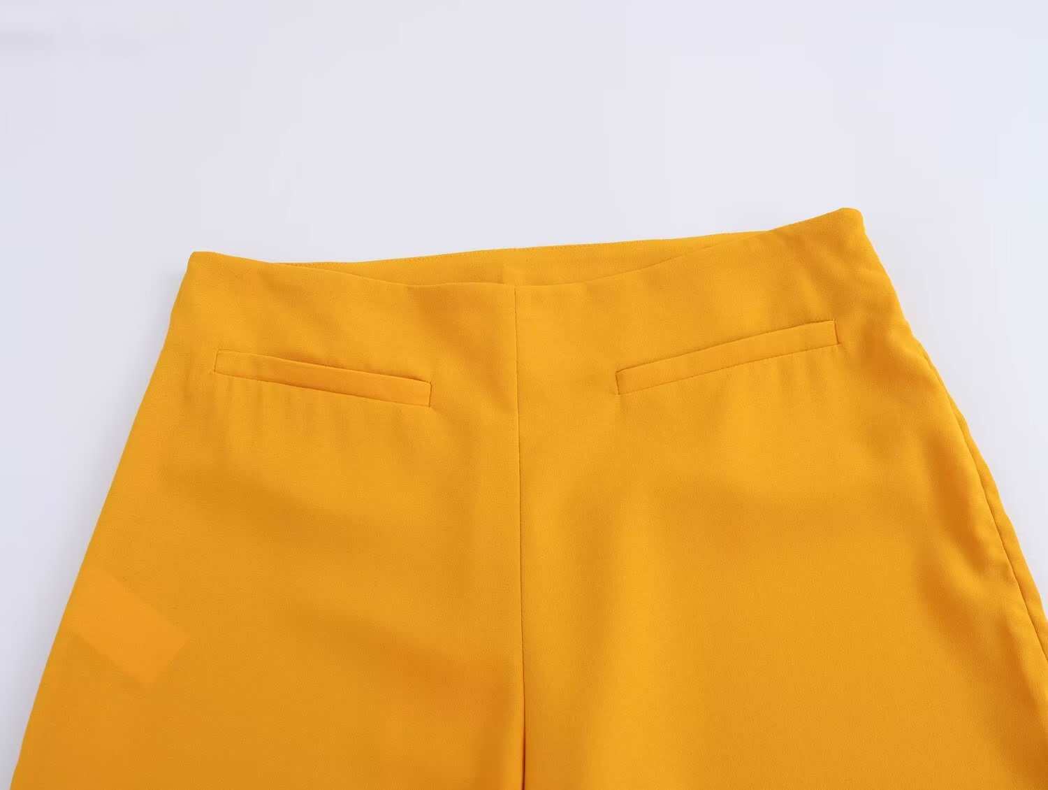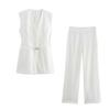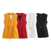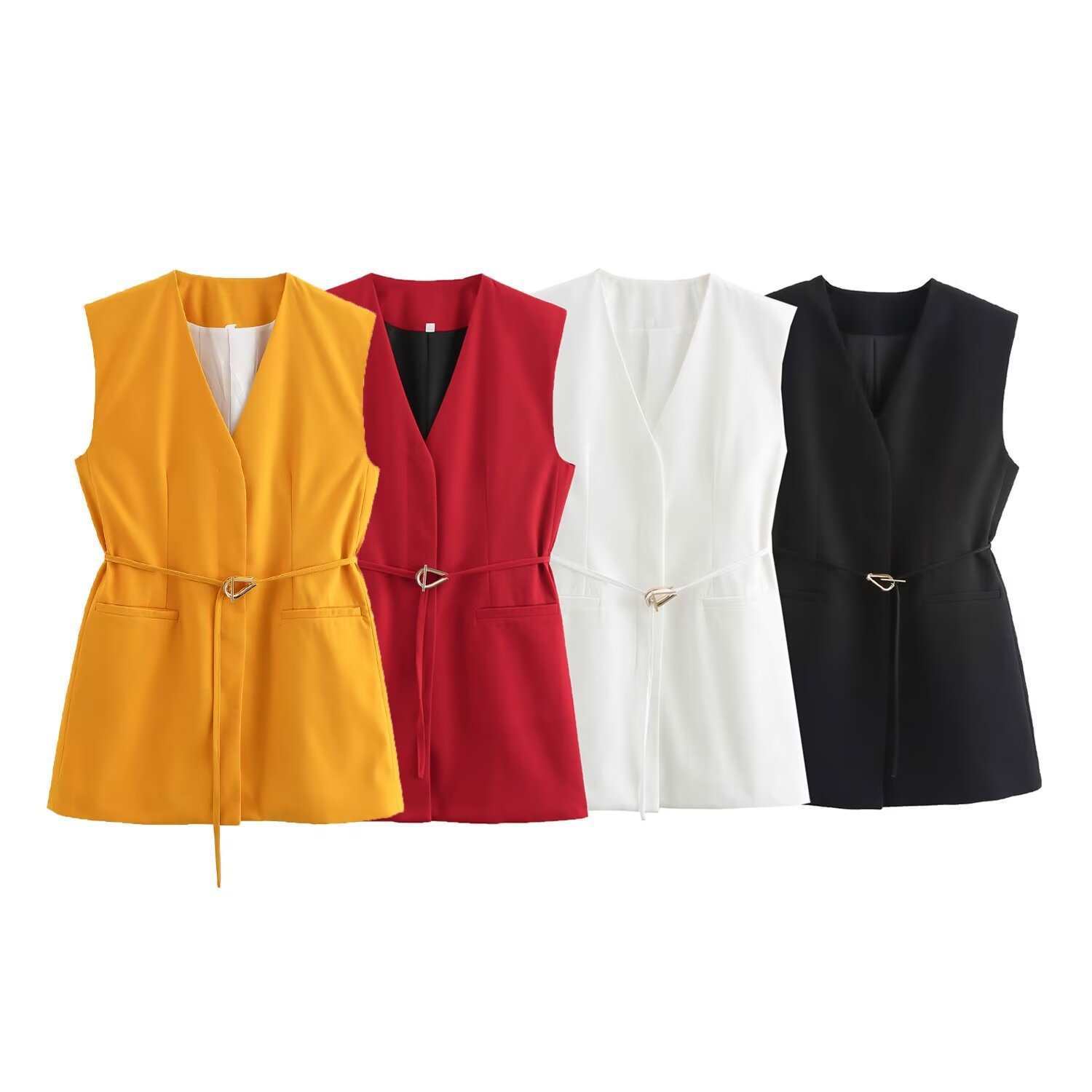 Chaleco de Bolsillo Estilo Europeo y Americano Pantalones Acampanados Cinturón Nuevo Abertura Diseño Ropa de Mujer Comercio Exterior
