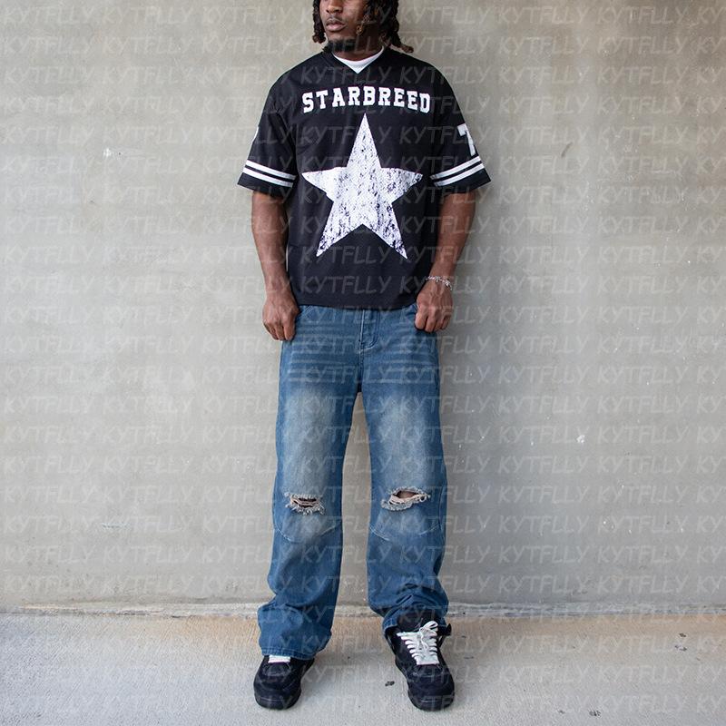 Camiseta de cuello redondo informal de manga corta con estampado de marca de moda europea y americana para hombre, nueva, holgada y transfronteriza.