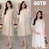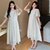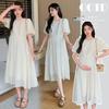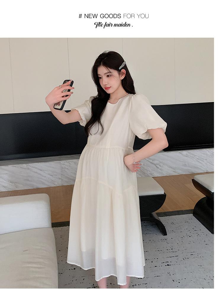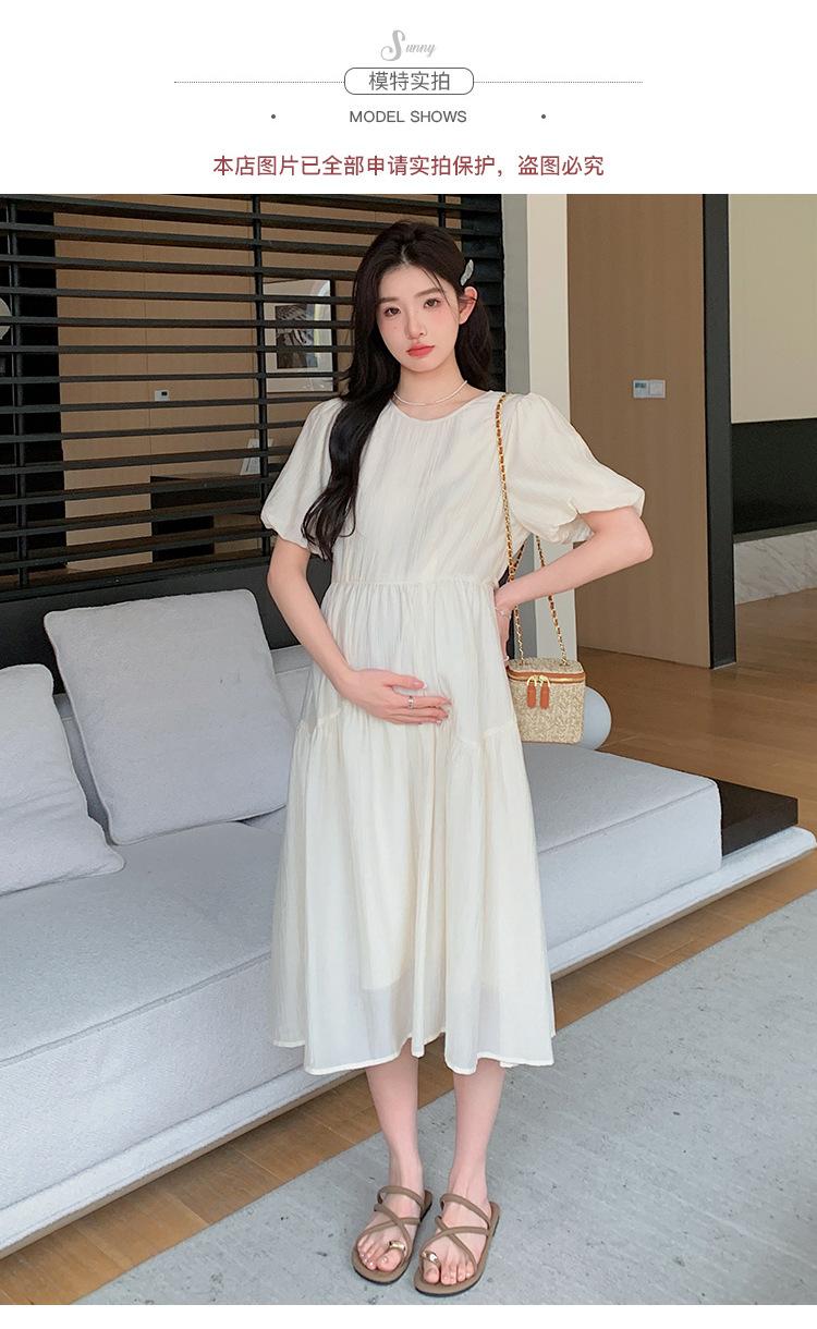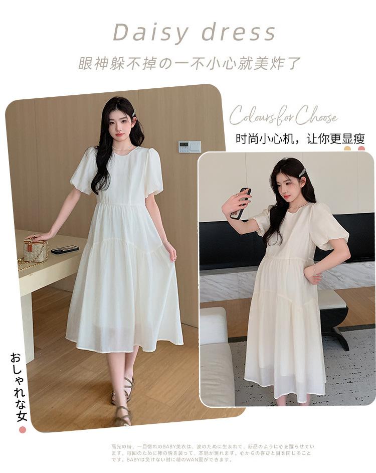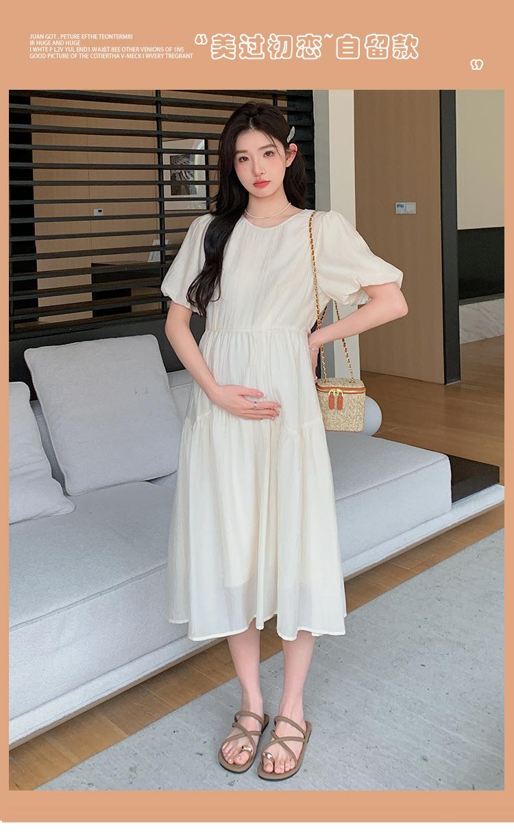 Vestido de maternidad de verano 2024, nuevo, con mangas abullonadas, dulce, con volantes, antiedad, holgado, talla grande, para embarazadas