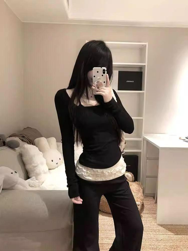 [Práctica de Placa Original] Pantalones Microacampanados con Costuras de Encaje para Niños Primavera y Verano Nuevo Diseño Casual Pantalones Largos