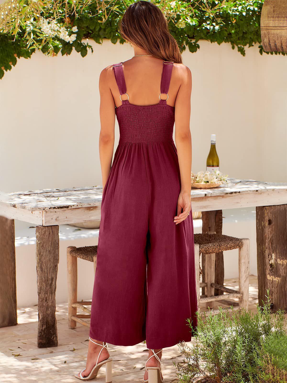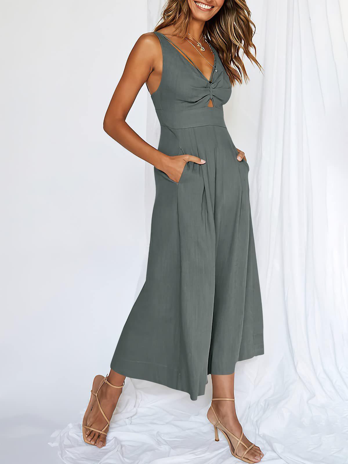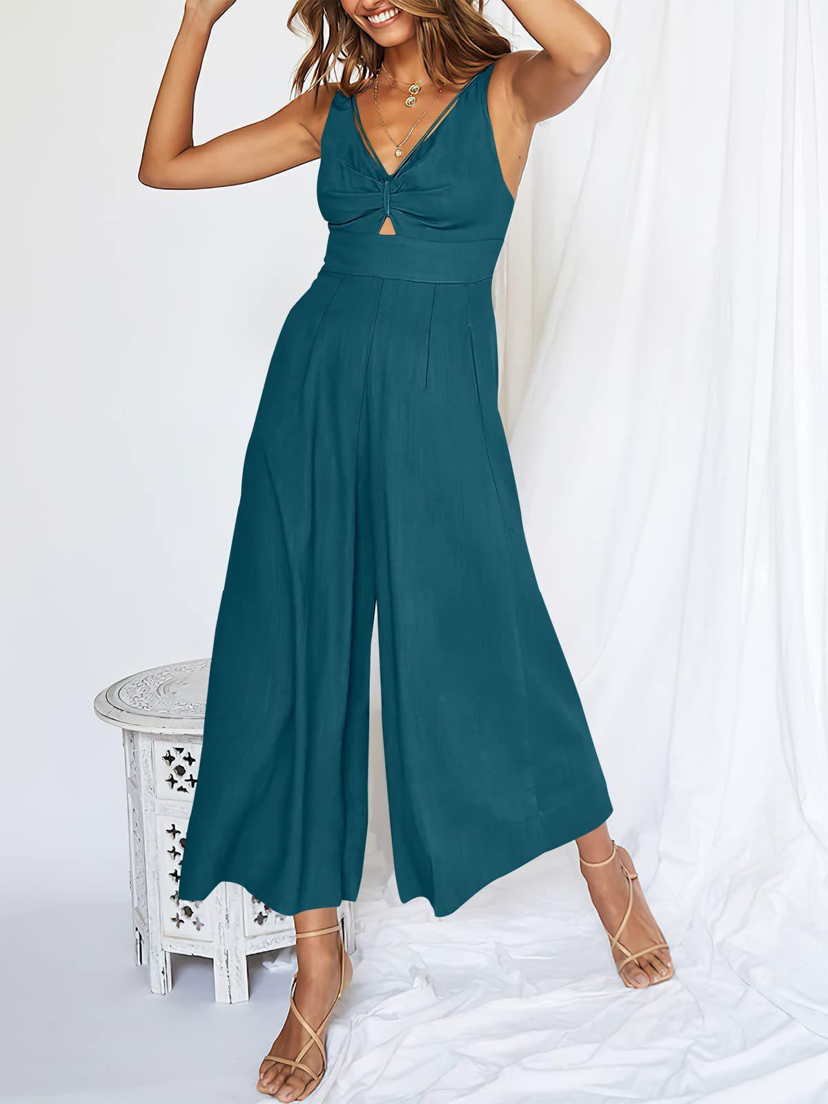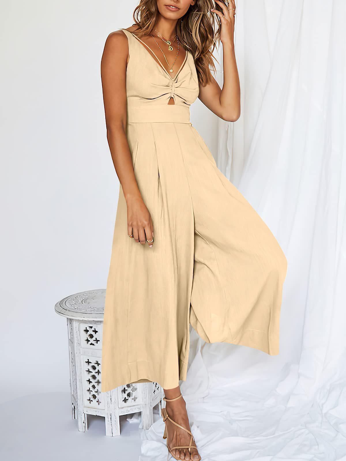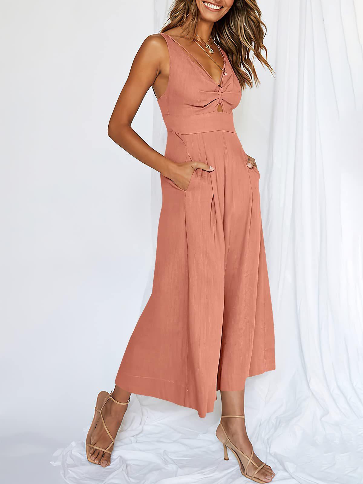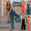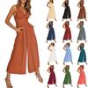 Amazon Europeo y Americano comercio exterior transfronterizo verano tirantes cuello en V hueco plisado cintura alta pierna ancha bolsillo mono de mujer
