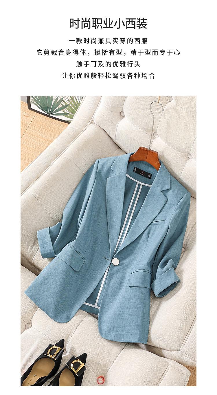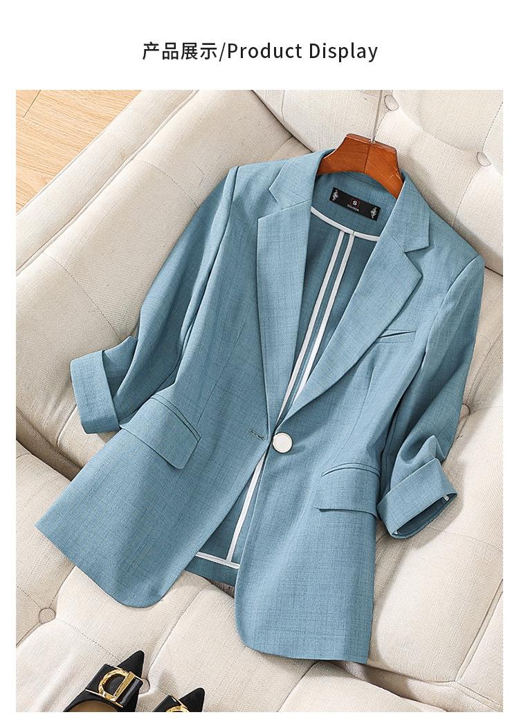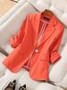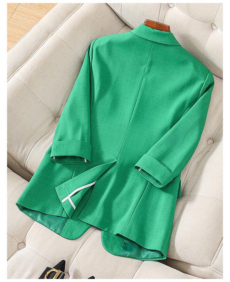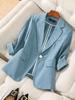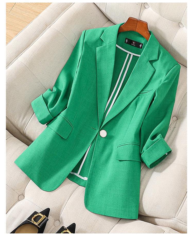 Chaqueta de traje verde para mujer, fina, de verano 2024, elegante, de siete mangas, combinable, de alta gama.