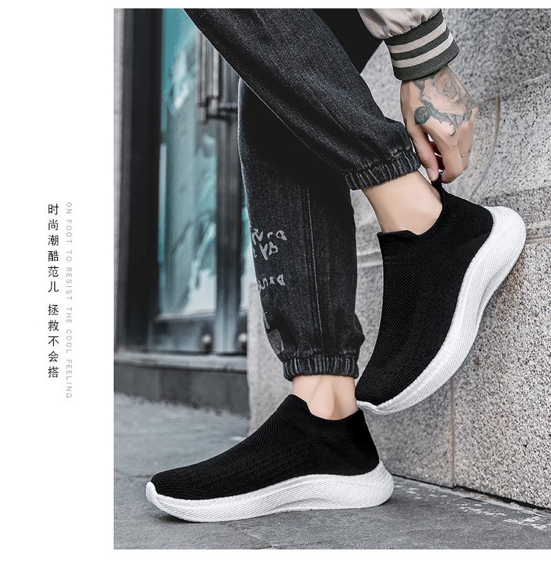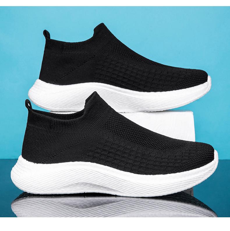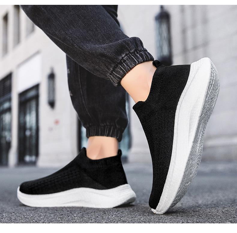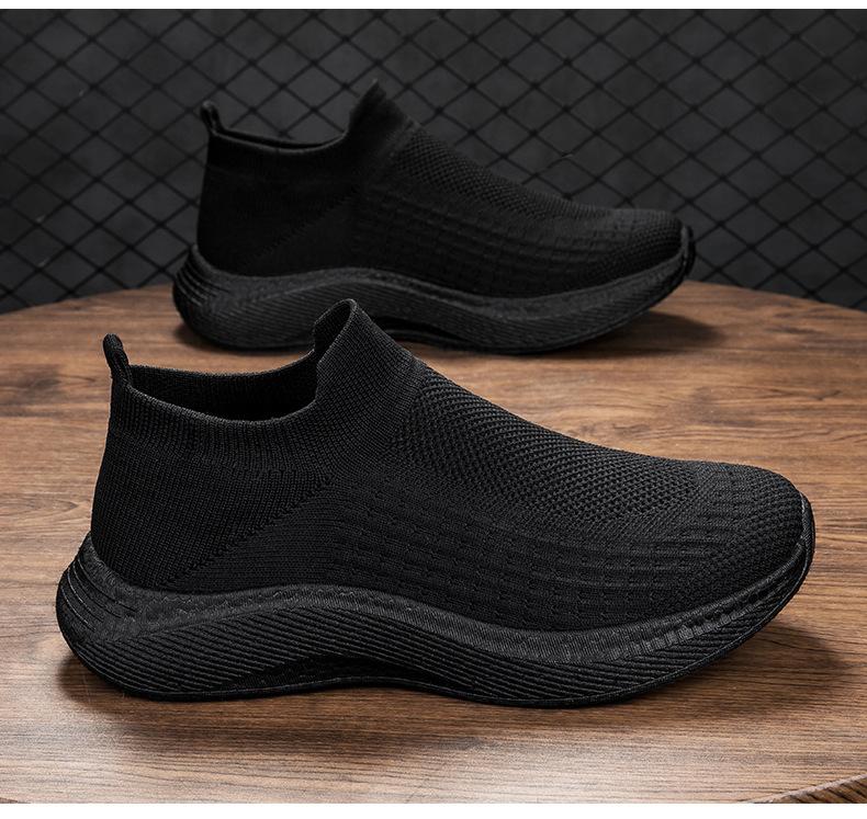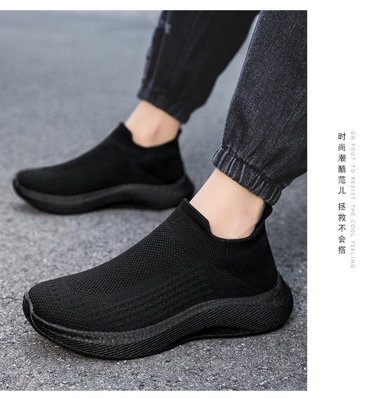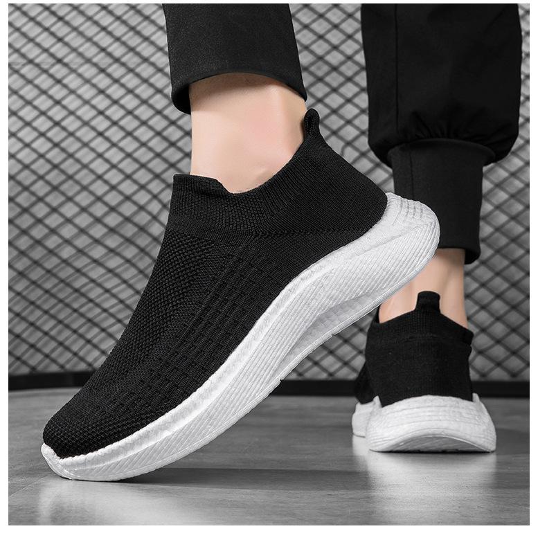 Zapatos casuales de malla para hombre, deportivos, para correr, de malla tejida, para el trabajo, negros, ligeros, con calcetines Tide