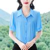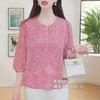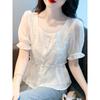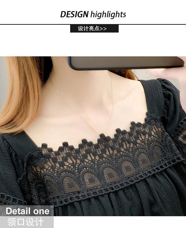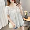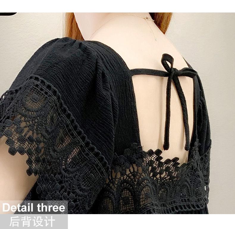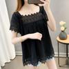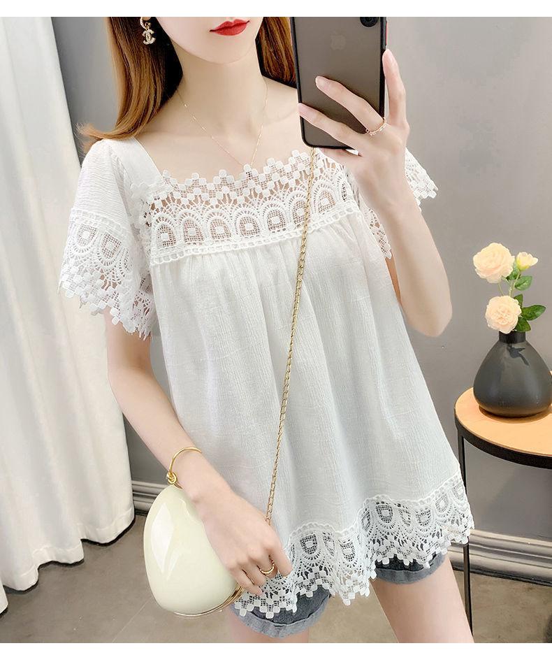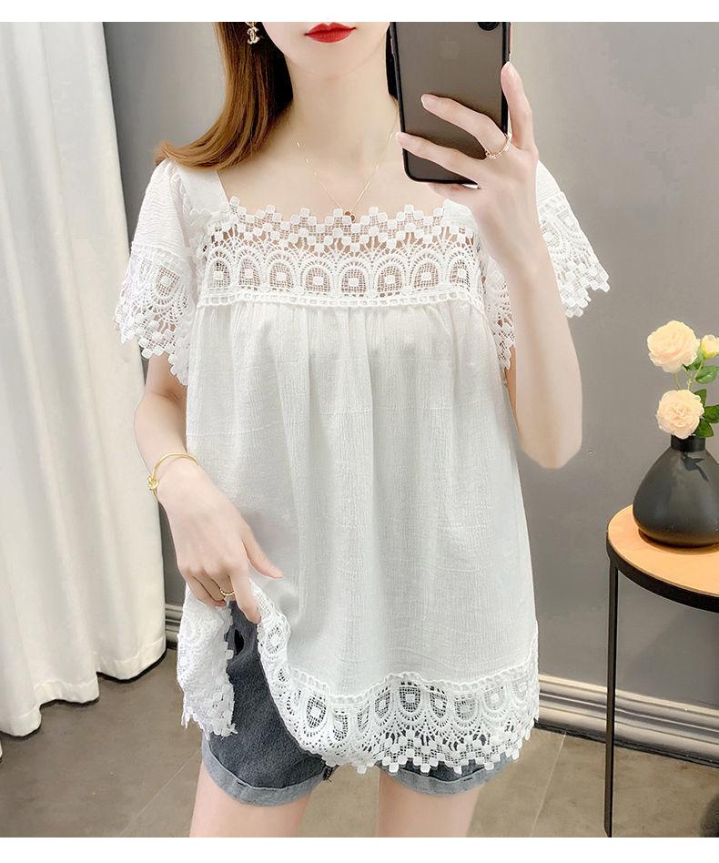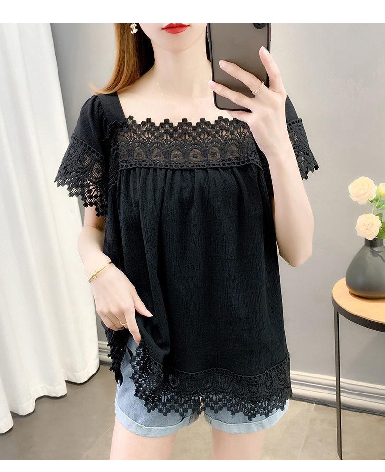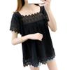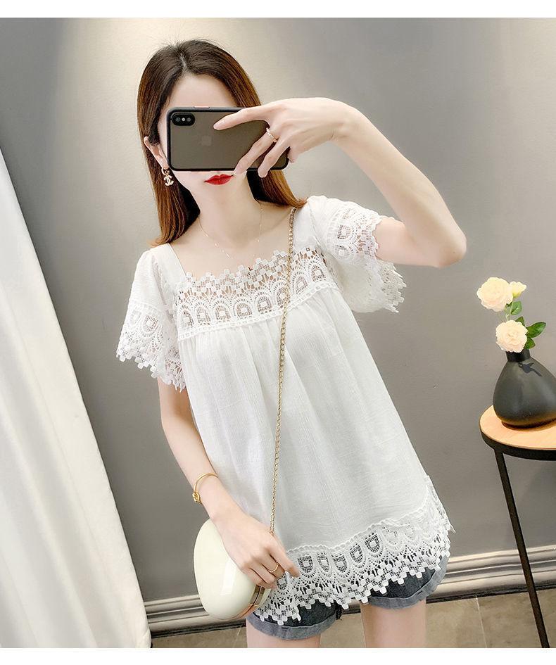 Camiseta de verano gordita nueva, holgada, adelgazante, de manga corta, con encaje hueco, que combina con todo, de gasa que cubre el vientre.