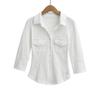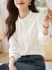 [3972] Camisa de mujer de manga larga, nueva primavera y otoño 2024, camisa blanca de alta gama, diseño Sense Niche Joker