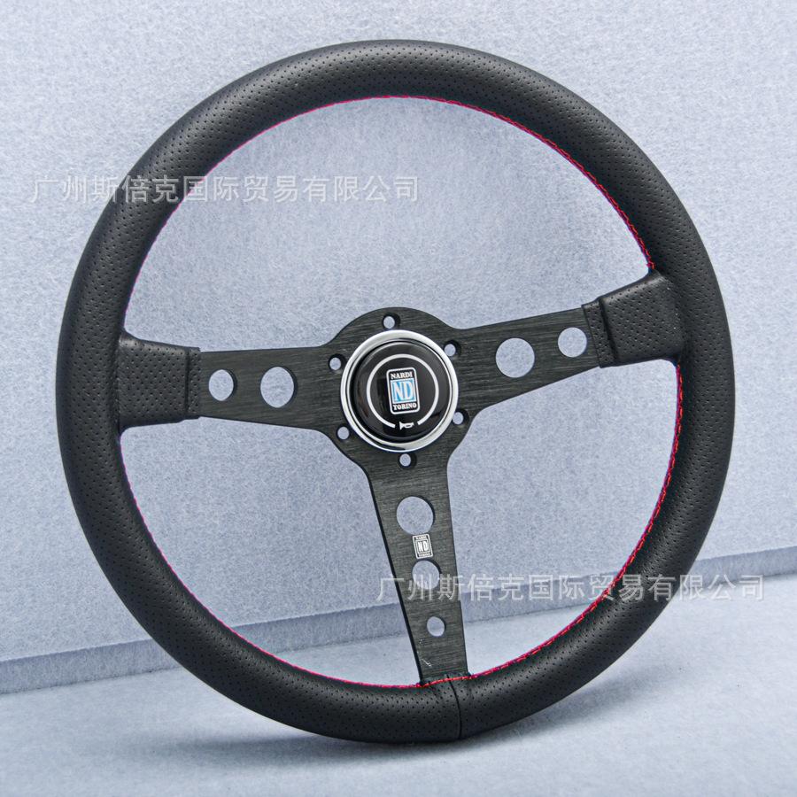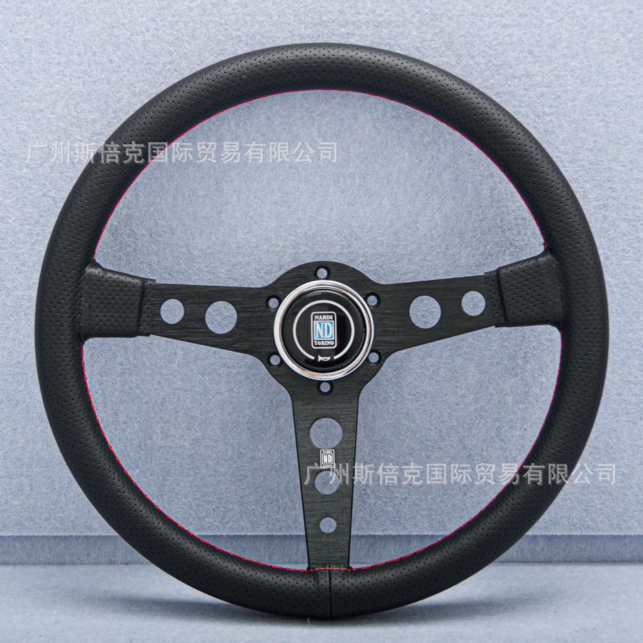 Modificación de Coche Volante Universal de Cuero Hueco de 14 pulgadas Volante Plano Nd Volante Punteado Carreras