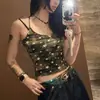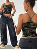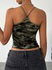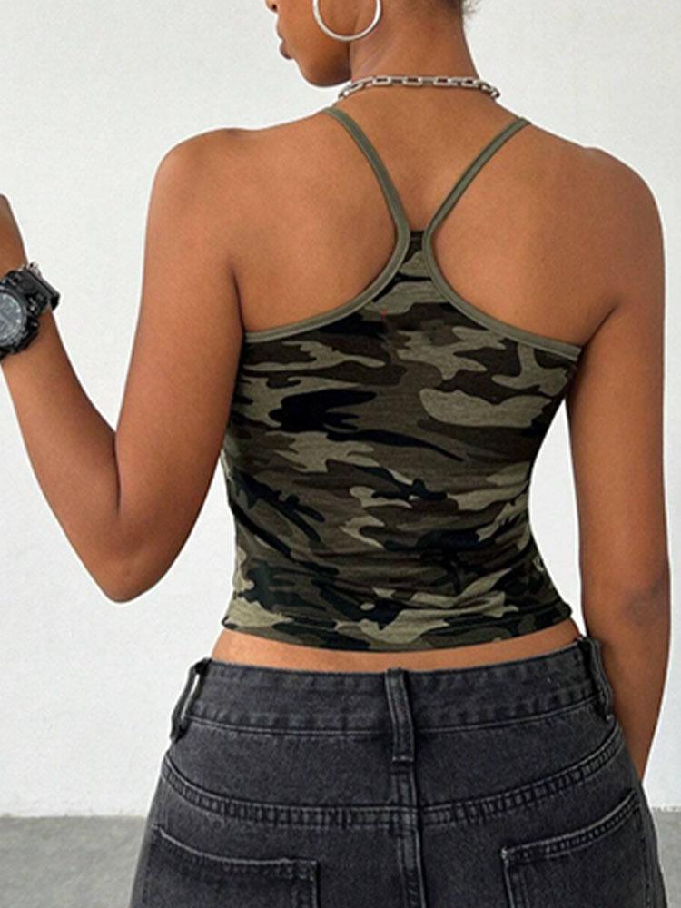 Diseño de Chica Sexy Estilo Americano Camuflaje Camisola Corta Chaleco Verano para Mujer Ropa Exterior Corta Slim Top Delgado Verde