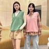 Chaleco retro artístico con estampado pastoral fresco de otoño 2024, cuello en V, nuevo chaleco de punto de algodón combinable.