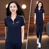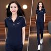2024 Nuevo estilo de mujer adelgazante de manga corta Top de dos piezas traje deportivo de verano de mujer moda casual delgada