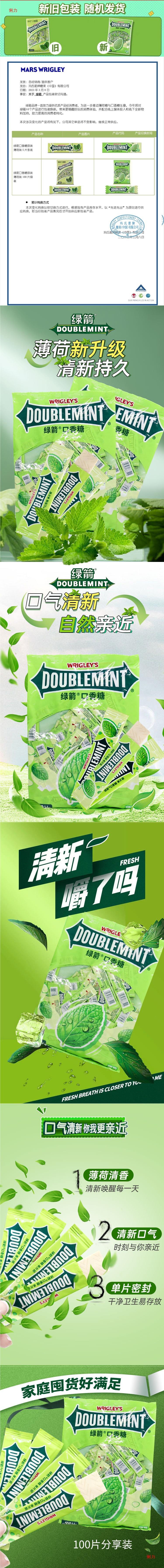 Chicle Flecha Verde 100 Tabletas Bolsa de Catering Sabor a Menta Wrigley Tabletas Masticables Hidratantes y Refrescantes para la Garganta Snacks de Azúcar