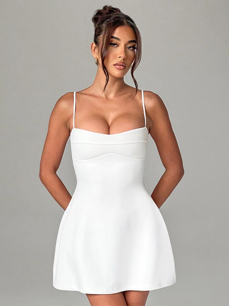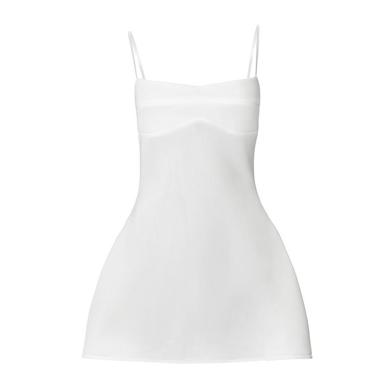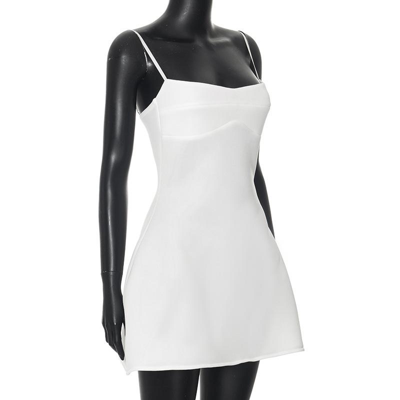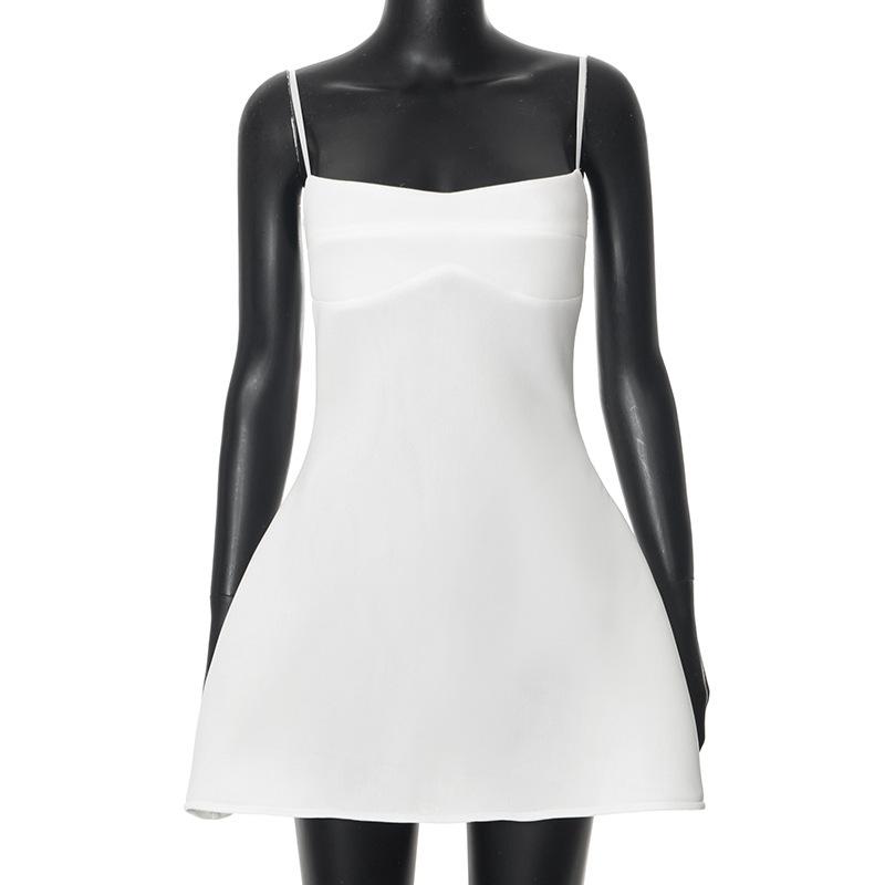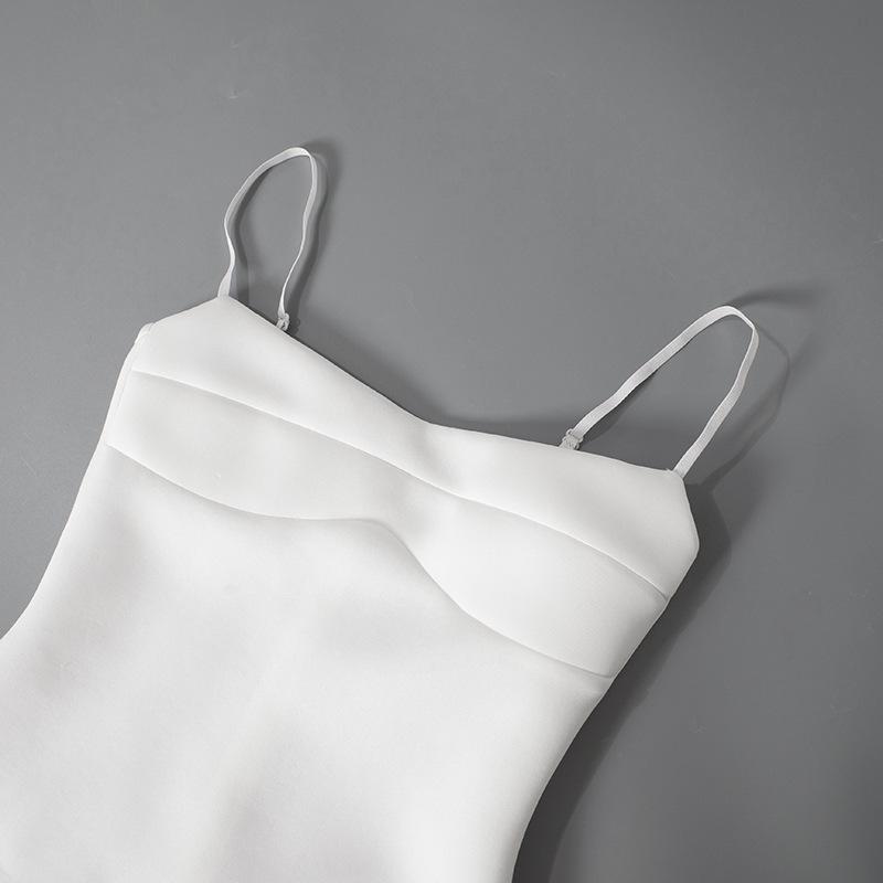 Vestido de tirantes sin mangas de cintura alta para mujer europea y americana 2025 Amazon Verano Nuevo Color Sólido Venta al por mayor Blanco
