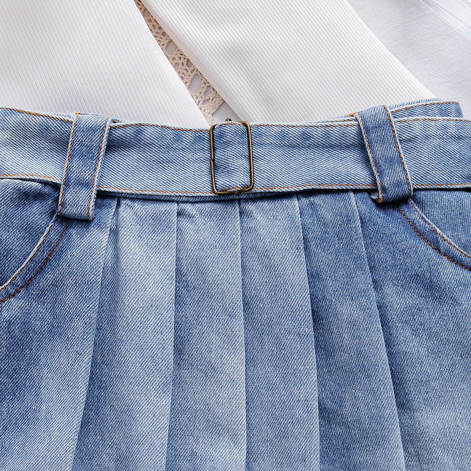 Comercio Exterior Transfronterizo Europa y Estados Unidos Verano Más Vendido Temperamento Traje de Niñas Color Sólido Tirantes Manga Larga Falda Plisada Falda