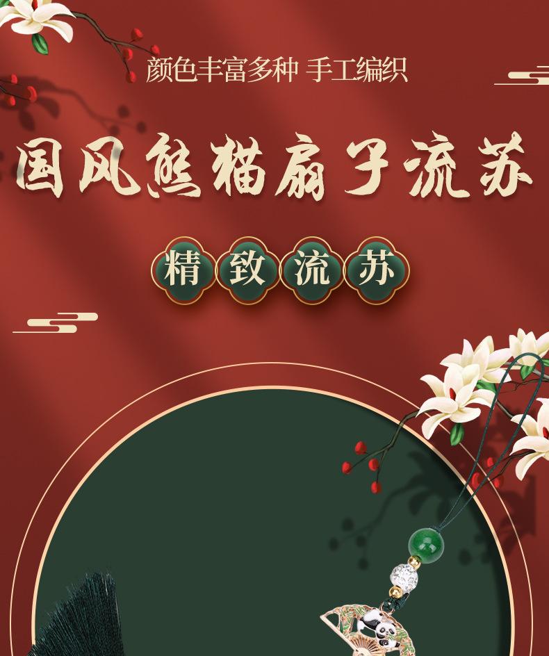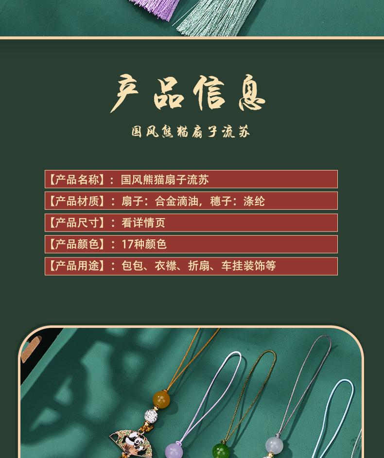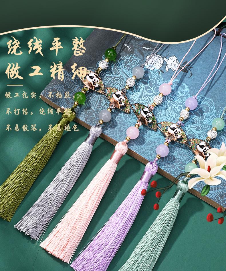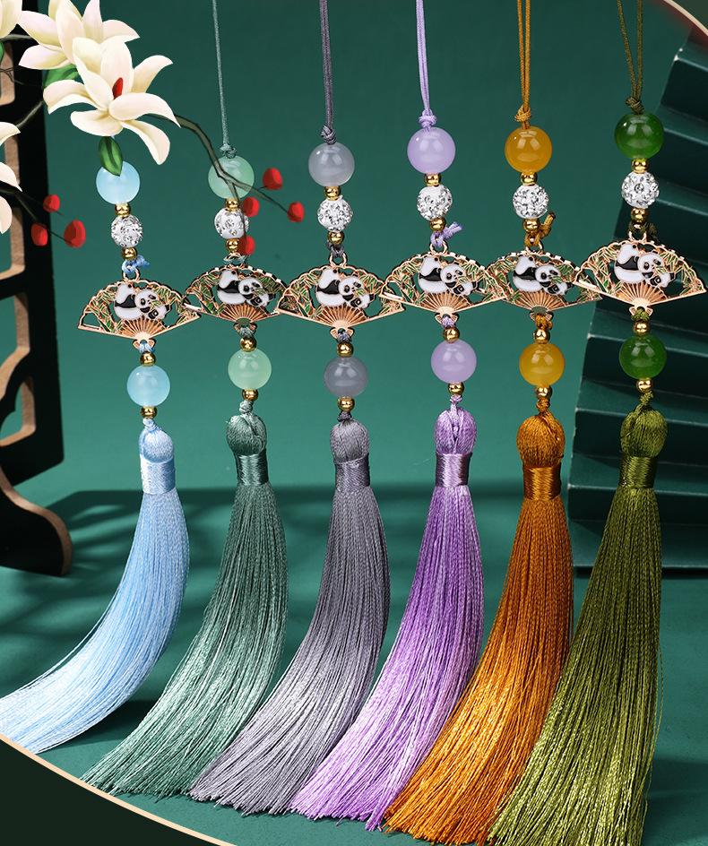 Abanico Panda Guofeng Borla Abanico Blanco Antiguo Adornos de Púa Colgante DIY Hecho a Mano Horquilla Colgante de Abanico Colgante