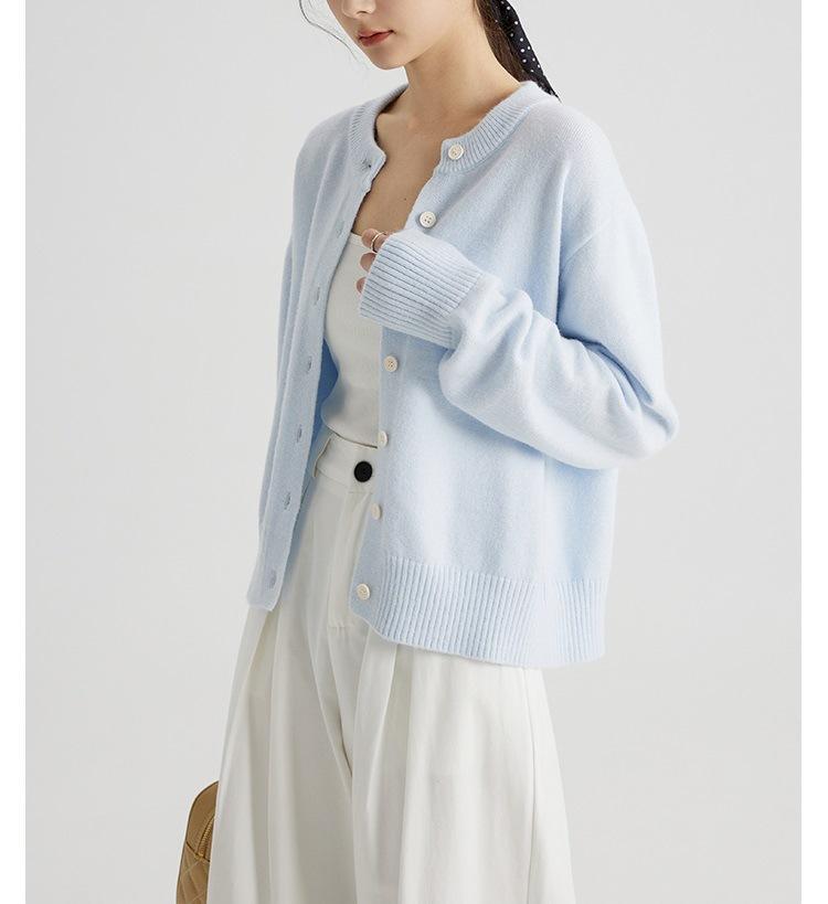Chaqueta tipo cárdigan de punto holgada y perezosa con cuello redondo y botones para mujer, suéter de punto sencillo de otoño e invierno, parte superior de alta calidad