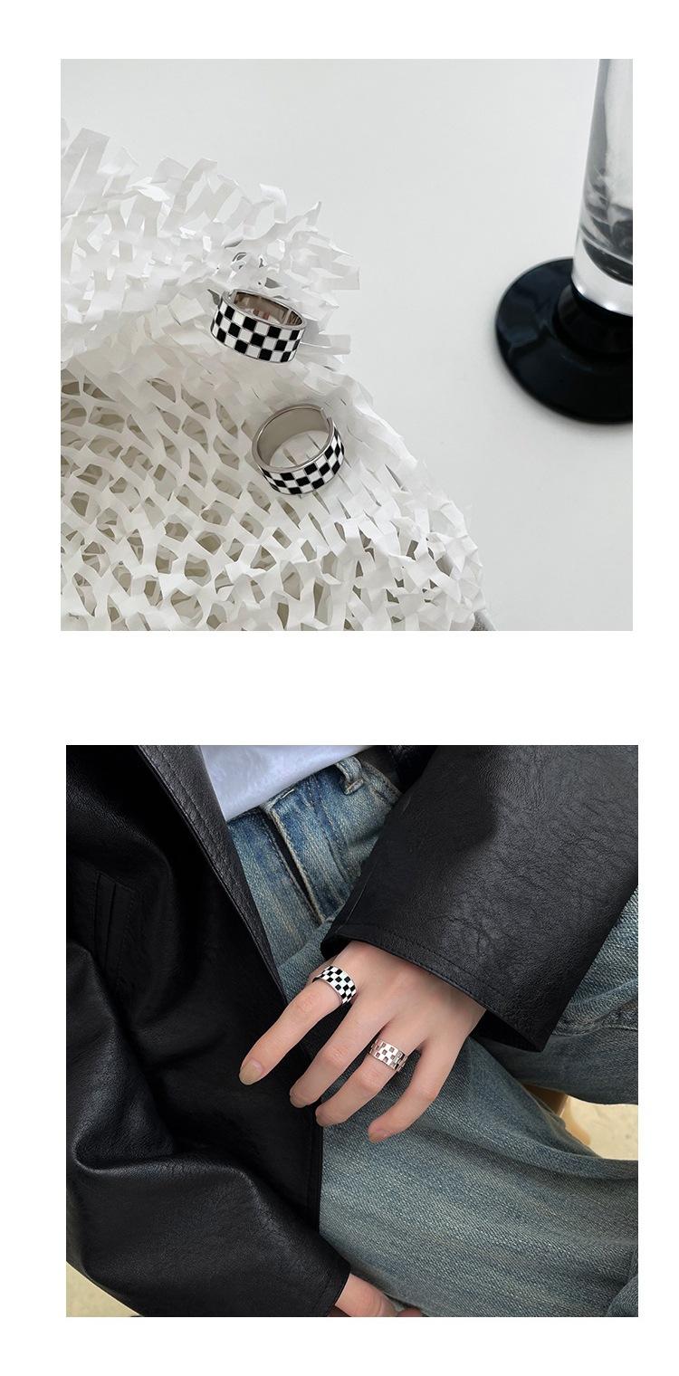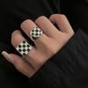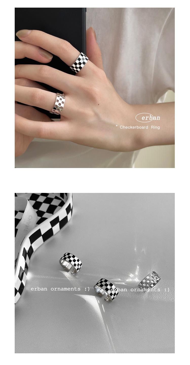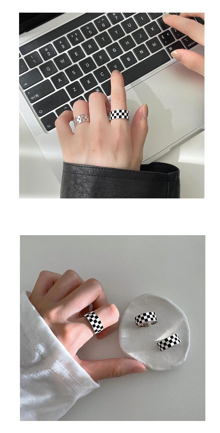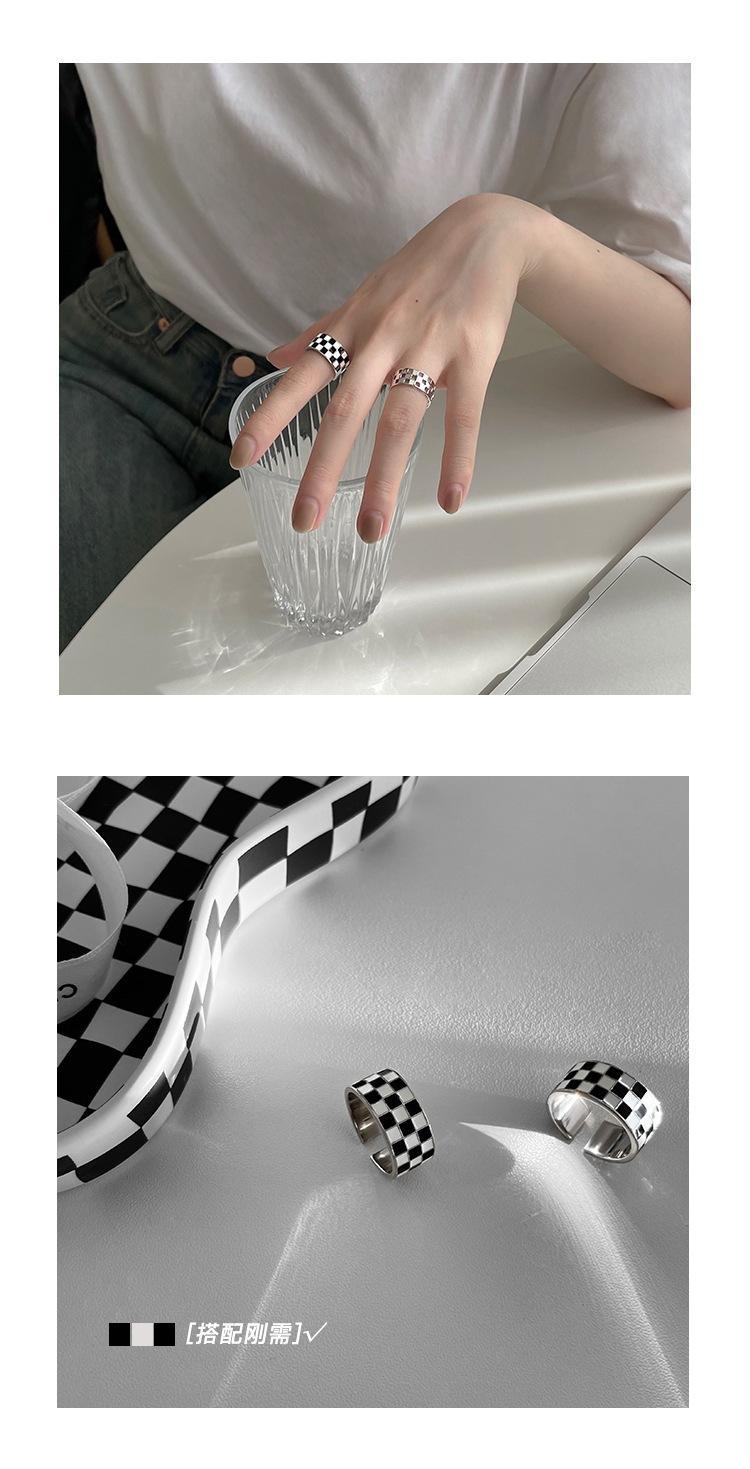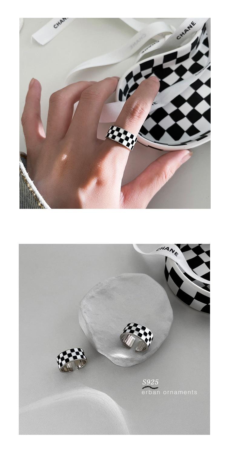 Anillo de Tablero de Ajedrez Blanco y Negro para Mujer Moda Retro Plata S925 Anillo de Cuadrícula Color Dividido Hip-Hop Creativo Anillo de Dedo Trendy