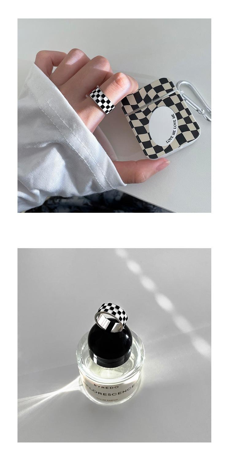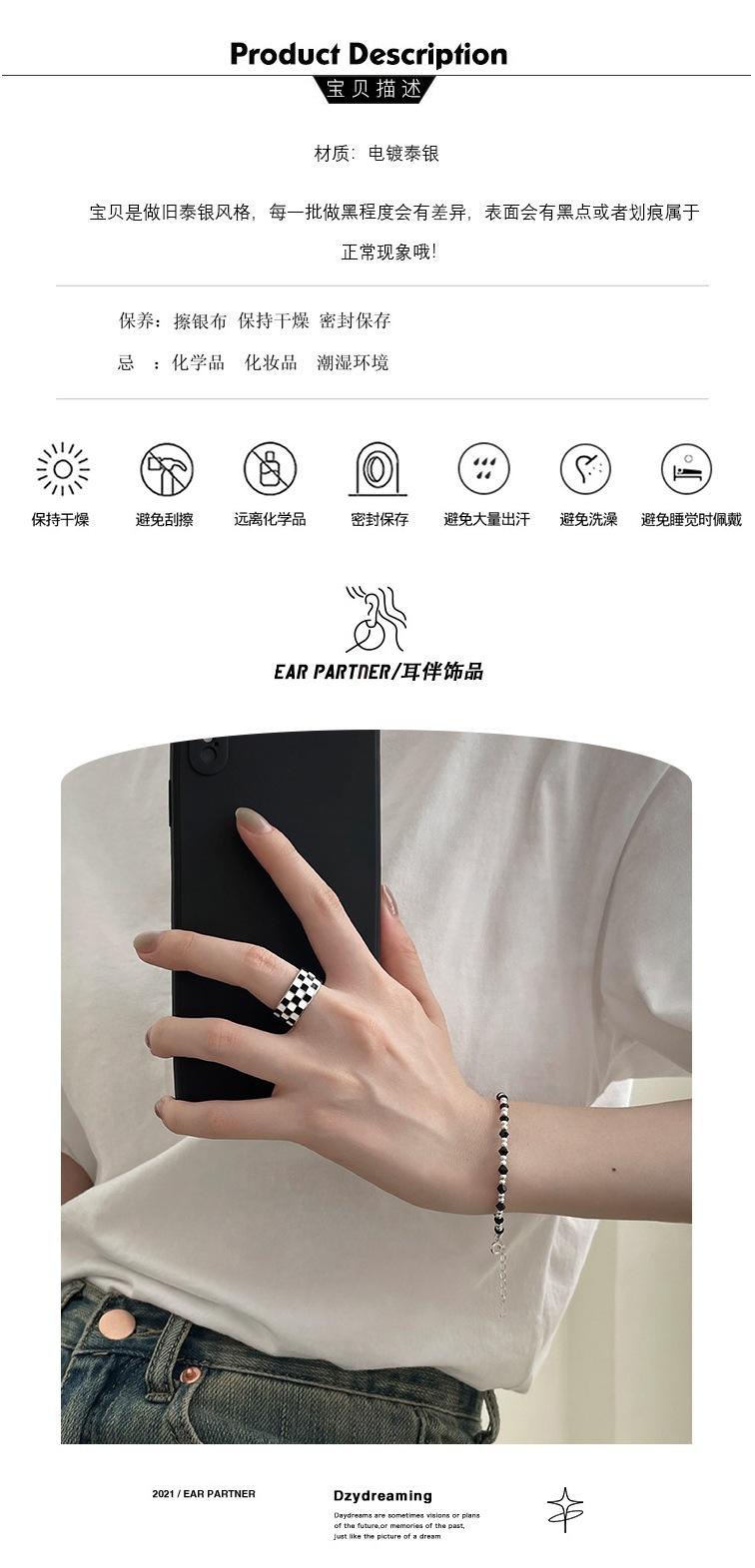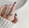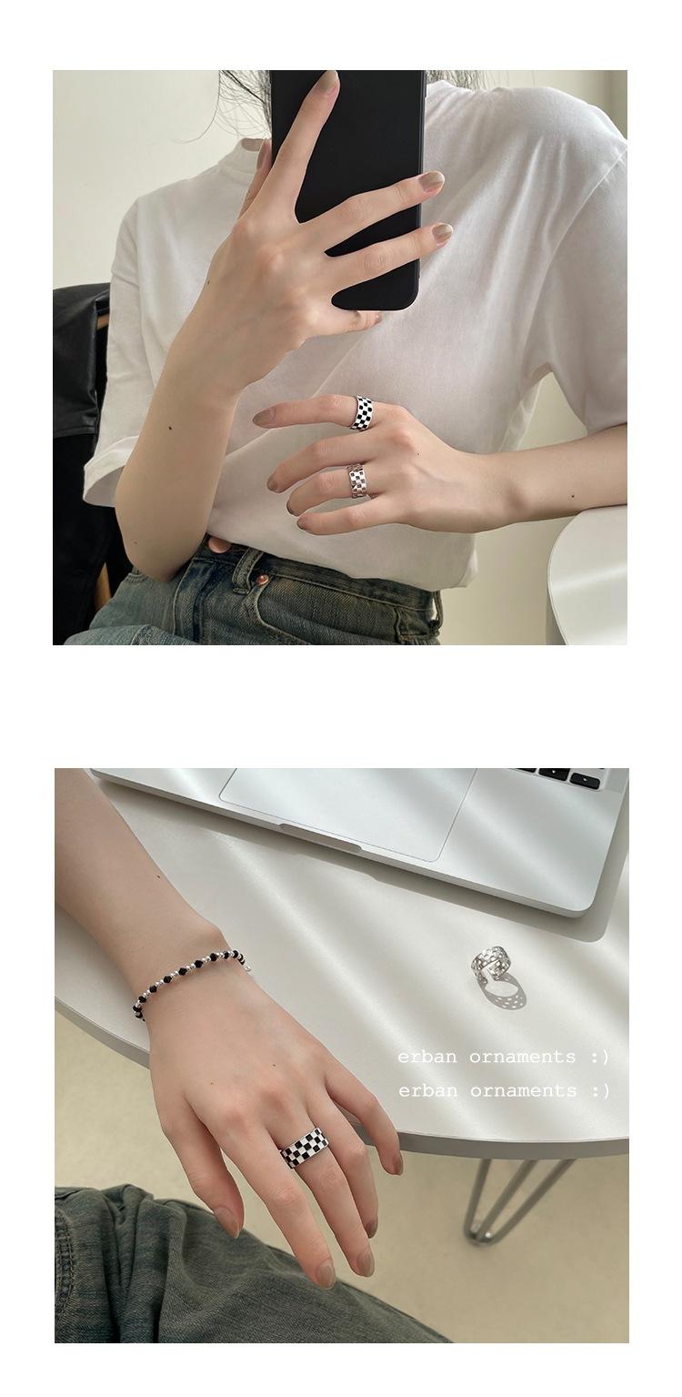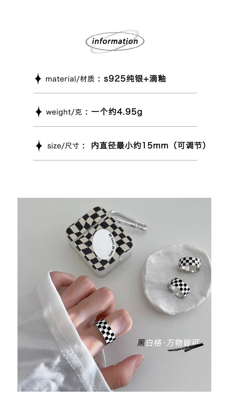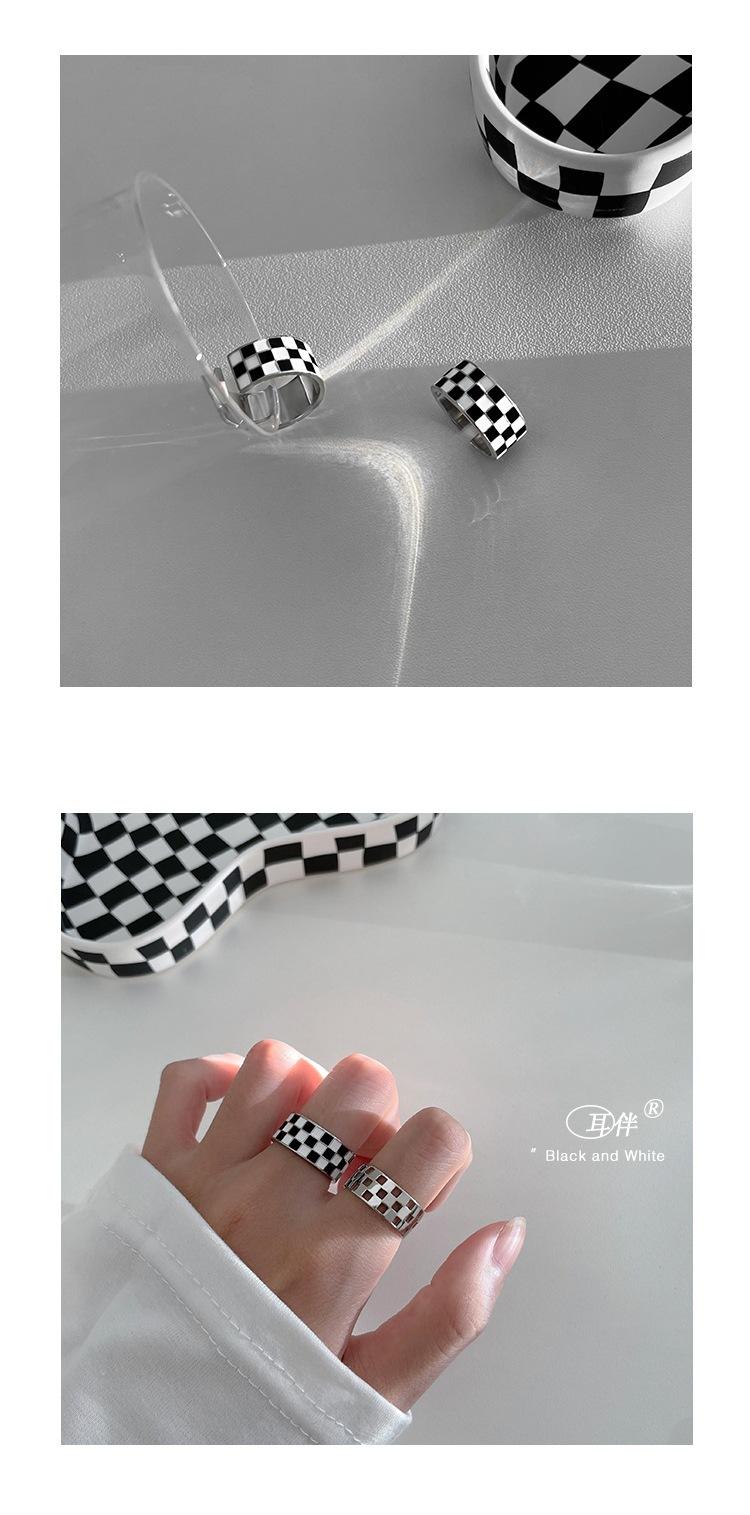 Anillo de Tablero de Ajedrez Blanco y Negro para Mujer Moda Retro Plata S925 Anillo de Cuadrícula Color Dividido Hip-Hop Creativo Anillo de Dedo Trendy