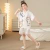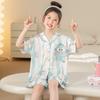 2025 Pijamas Nuevas para Niñas Verano Seda de Hielo Manga Corta Delgadas Niños Niñas Moda Niños Medianos y Grandes Ropa para el Hogar al Por Mayor