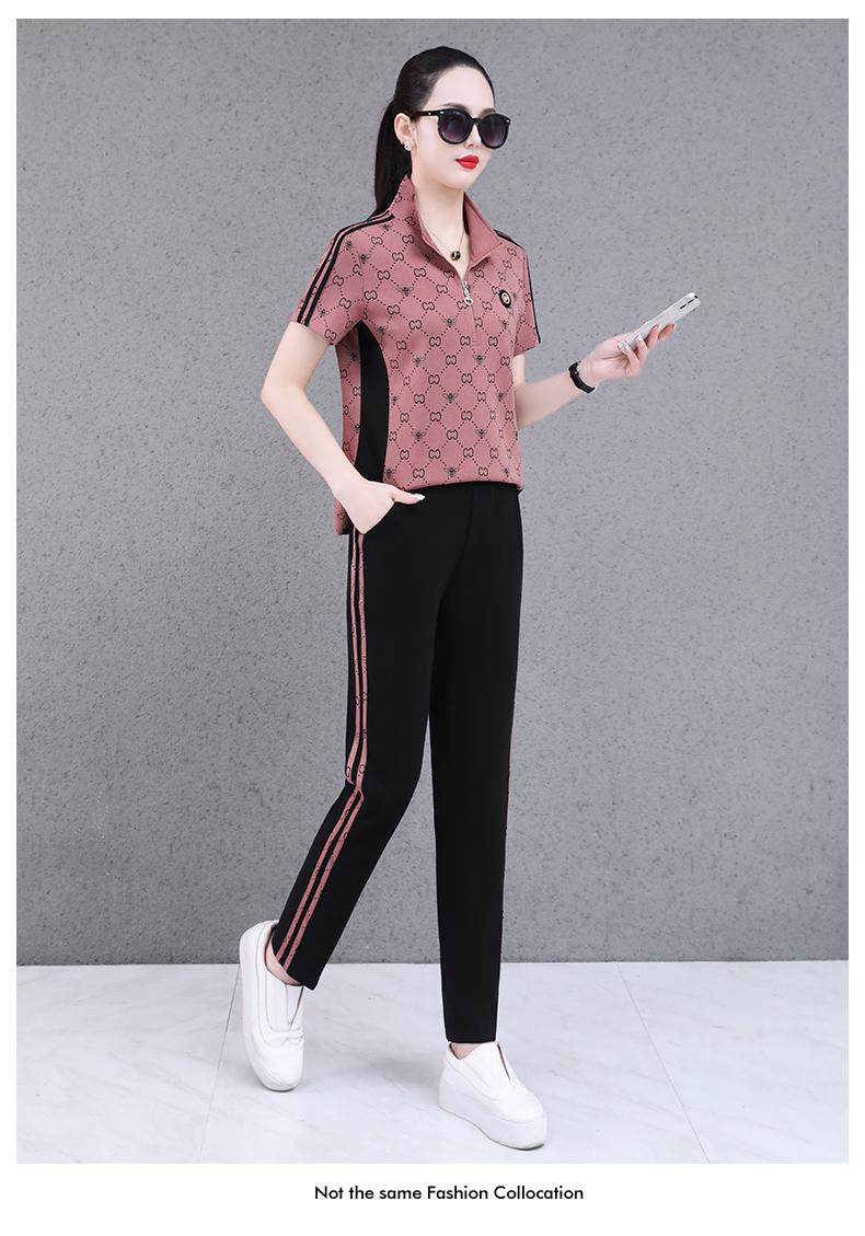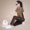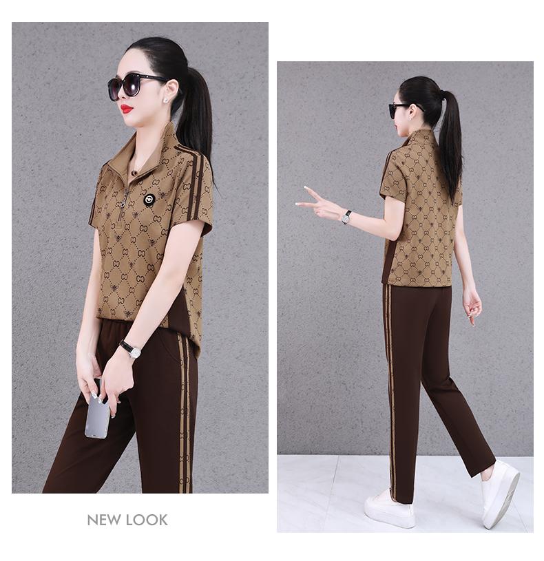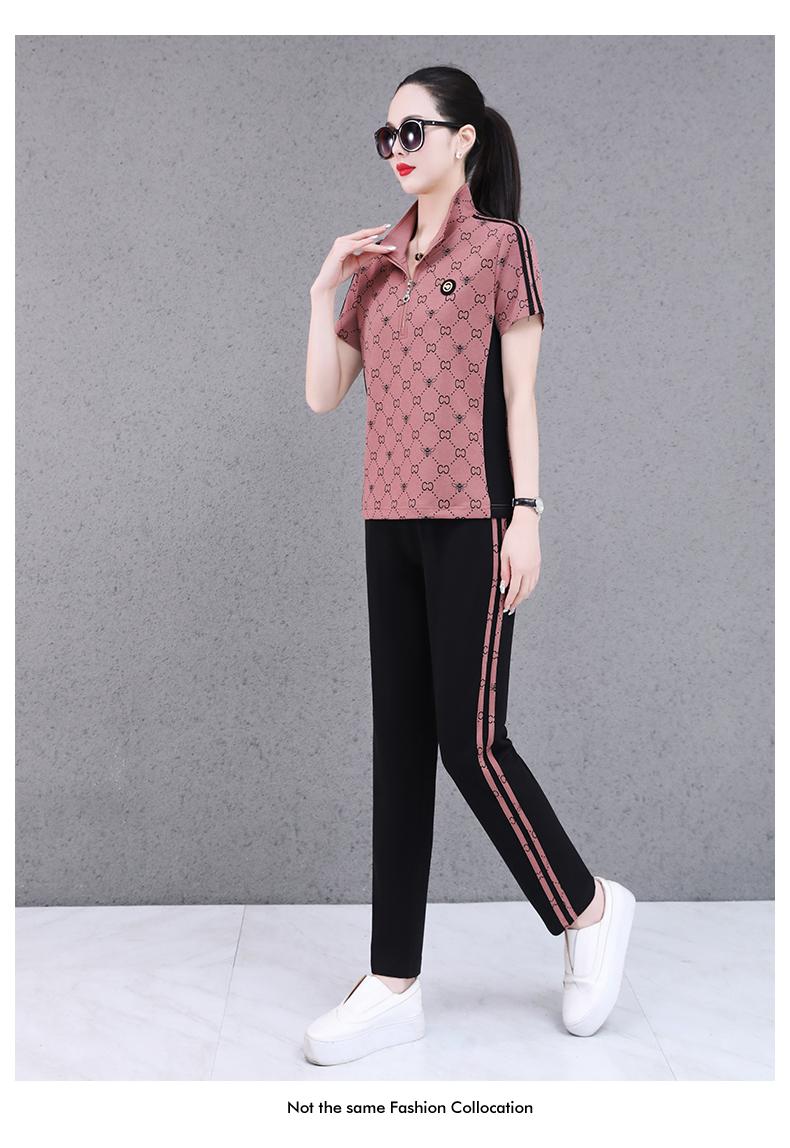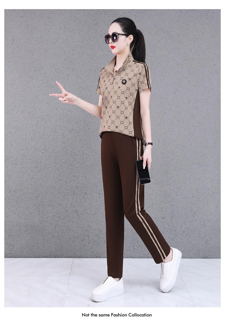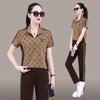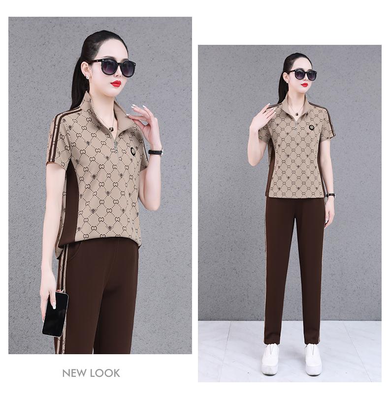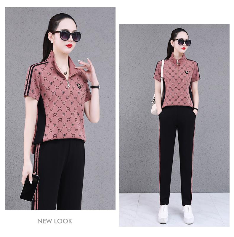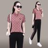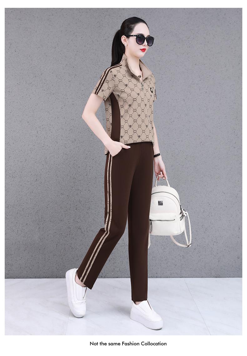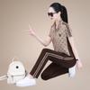 Traje deportivo para mujer Verano Nuevo Estilo Occidental Estampado Romboidal de Alta Gama Holgado Adelgazante para Correr Casual Manga Corta Conjunto de Dos Piezas