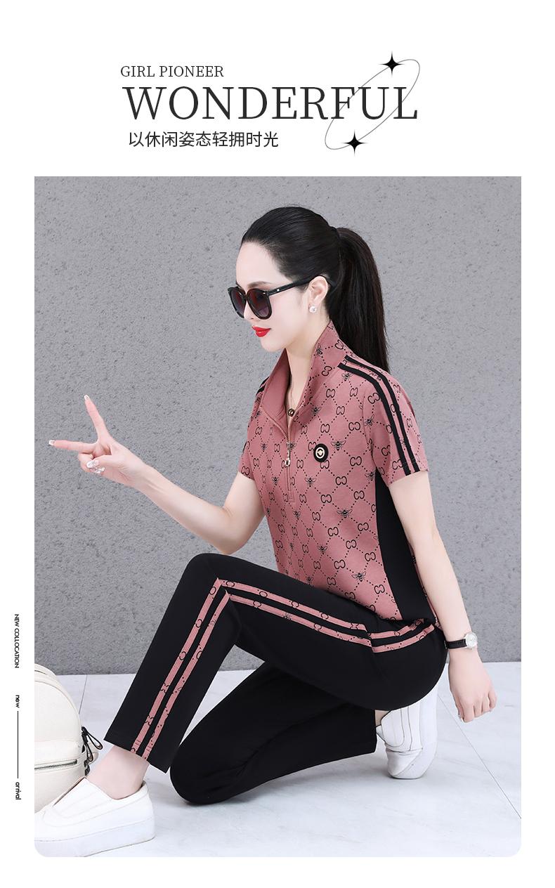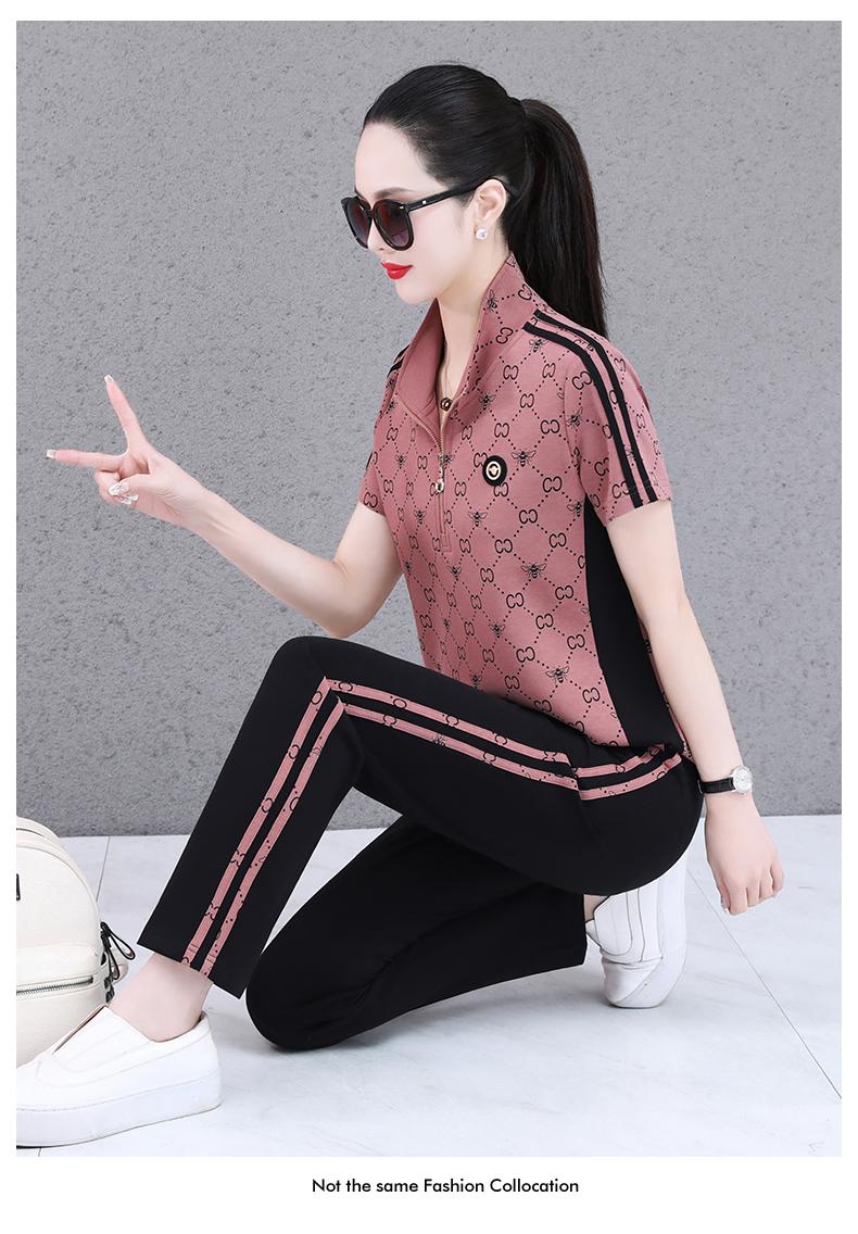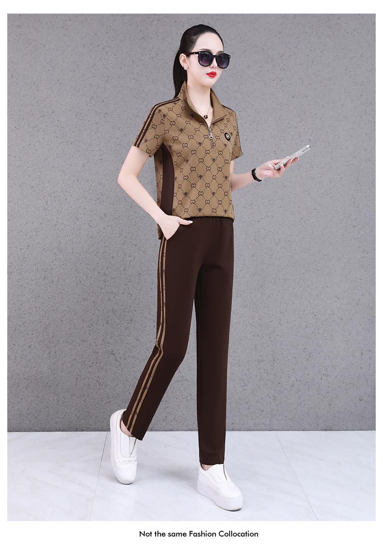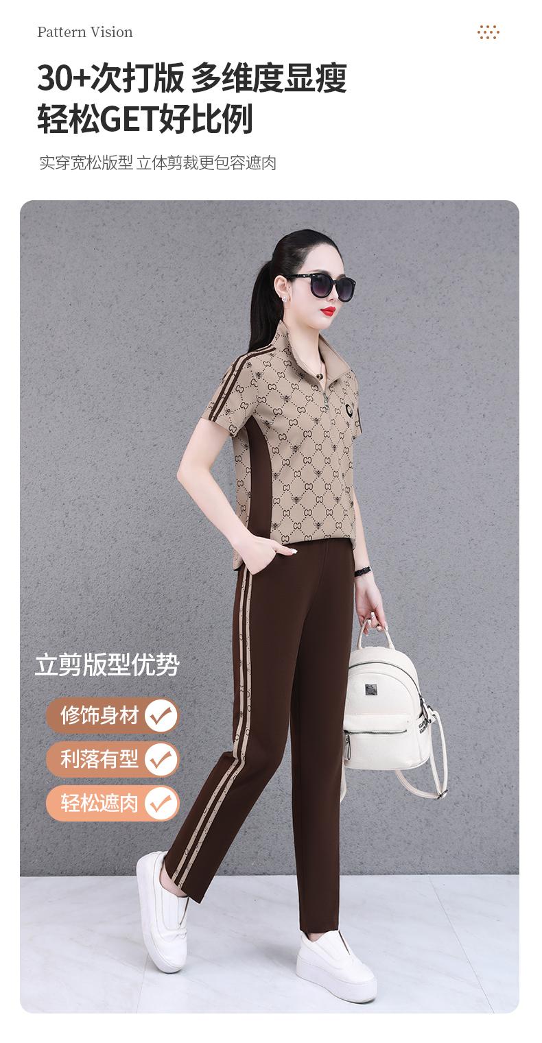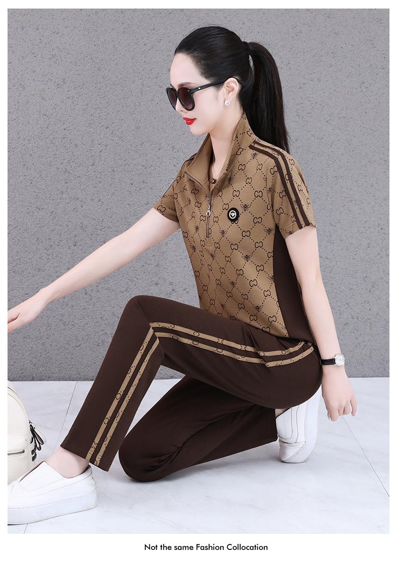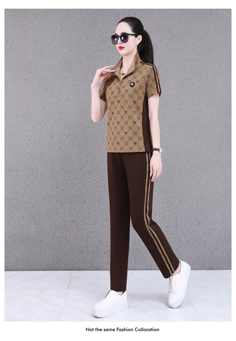Traje deportivo para mujer Verano Nuevo Estilo Occidental Estampado Romboidal de Alta Gama Holgado Adelgazante para Correr Casual Manga Corta Conjunto de Dos Piezas