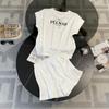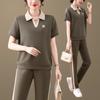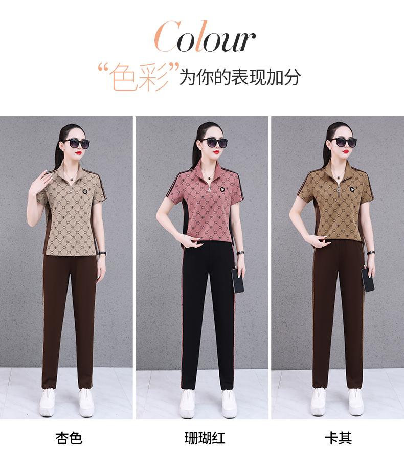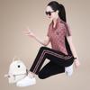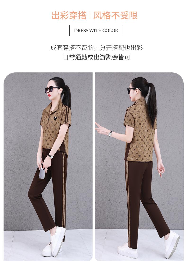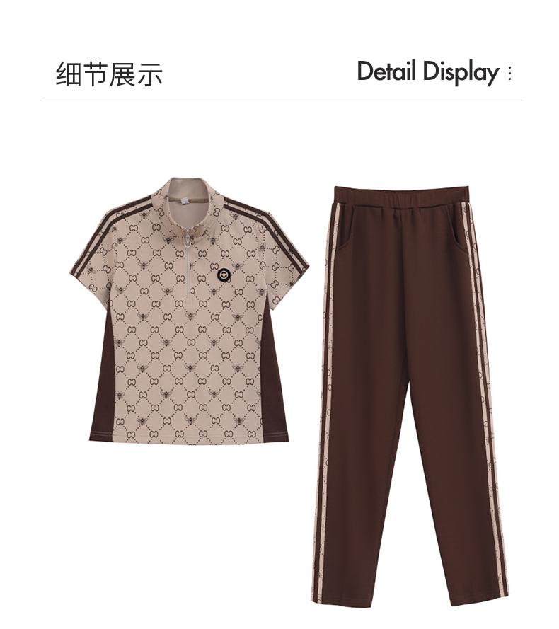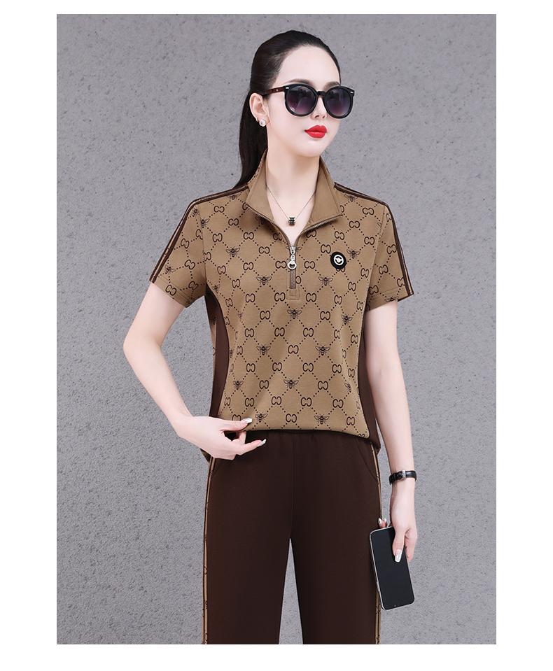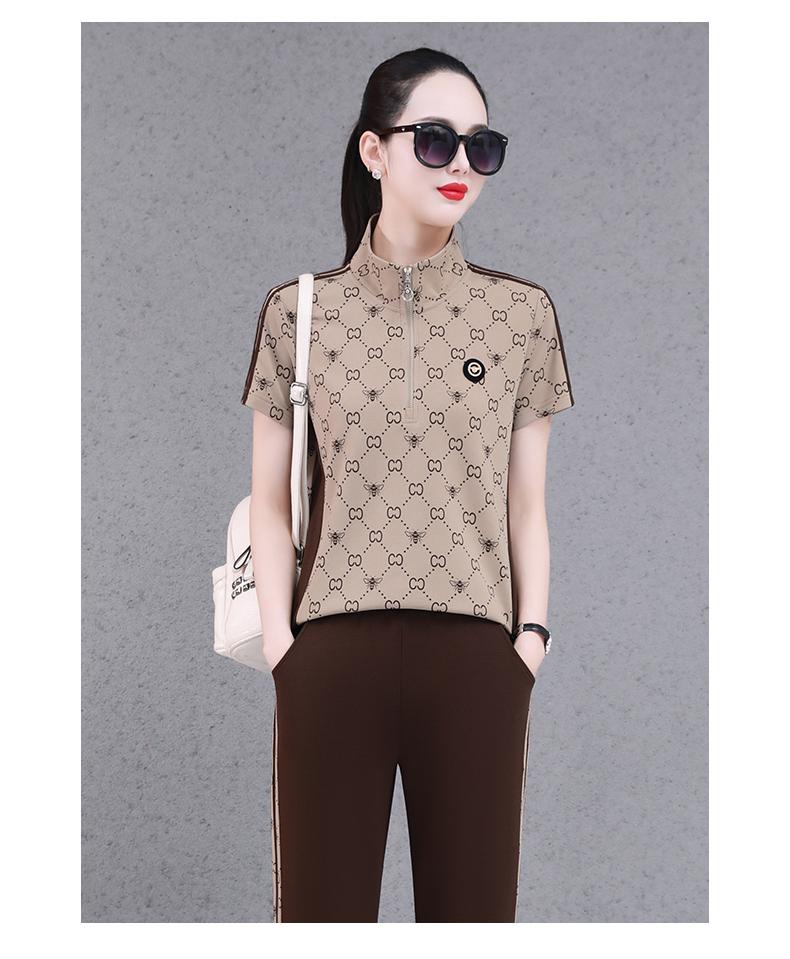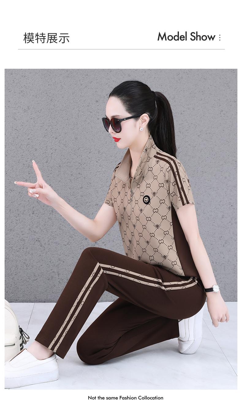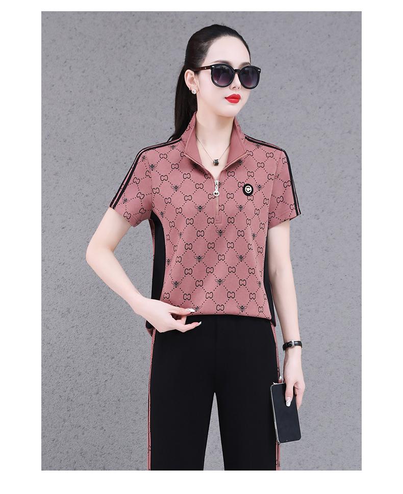 Traje deportivo para mujer Verano Nuevo Estilo Occidental Estampado Romboidal de Alta Gama Holgado Adelgazante para Correr Casual Manga Corta Conjunto de Dos Piezas