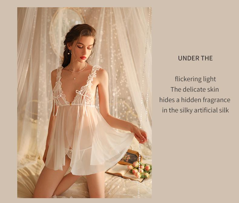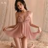Ropa Interior Sexy Pijama Sexy Camisón de Encaje con Abertura Frontal para Mujer Seda de Hielo Fino Ropa para el Hogar Abierto Gratis