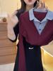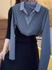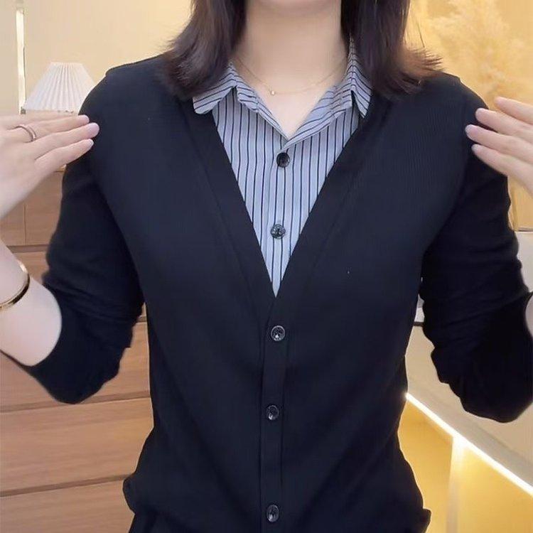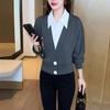 Una generación de camisa de solapa para mujer con costuras de pelo madre nueva moda otoño 2025 falso dos chaqueta adelgazante