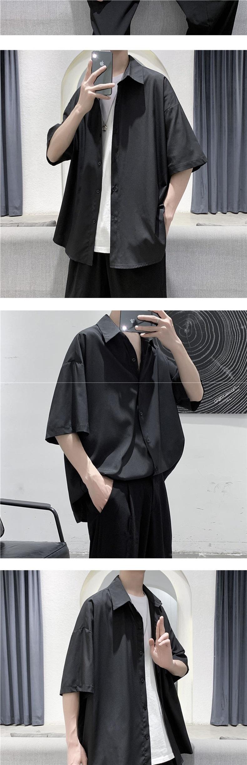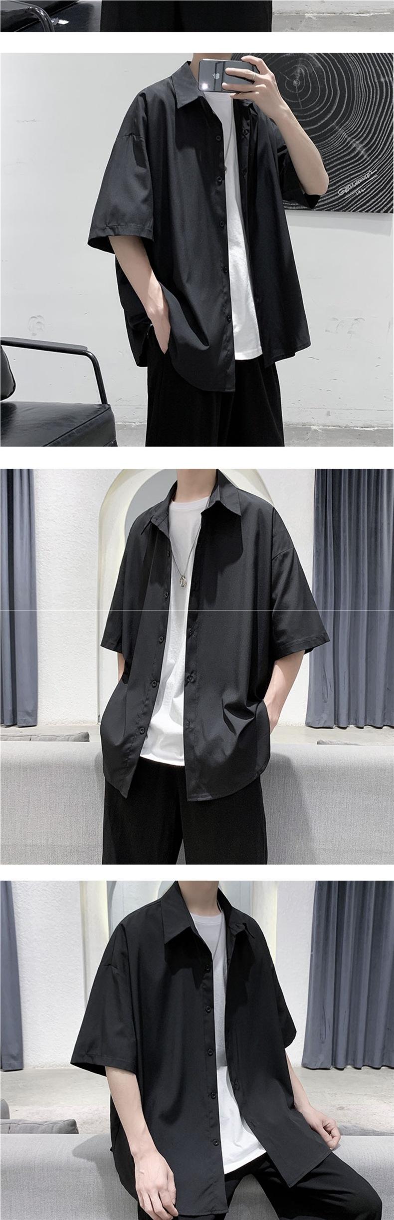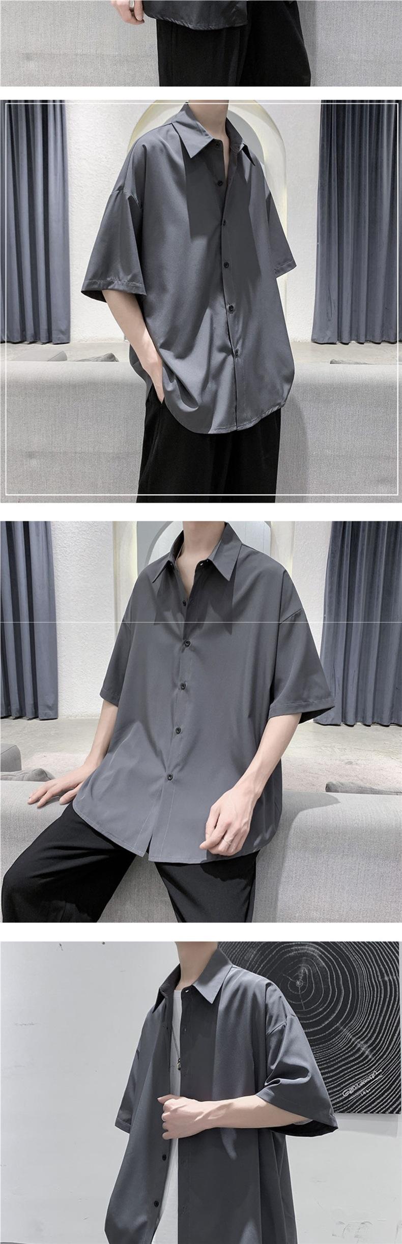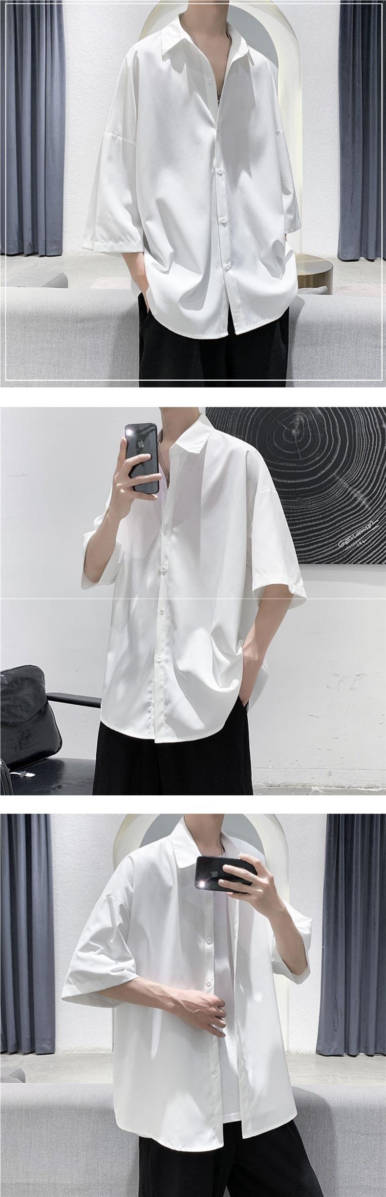 20 Verano Camisa Holgada de Manga Corta Fina Blanca A312CS Gris Negro Mezcla de Algodón