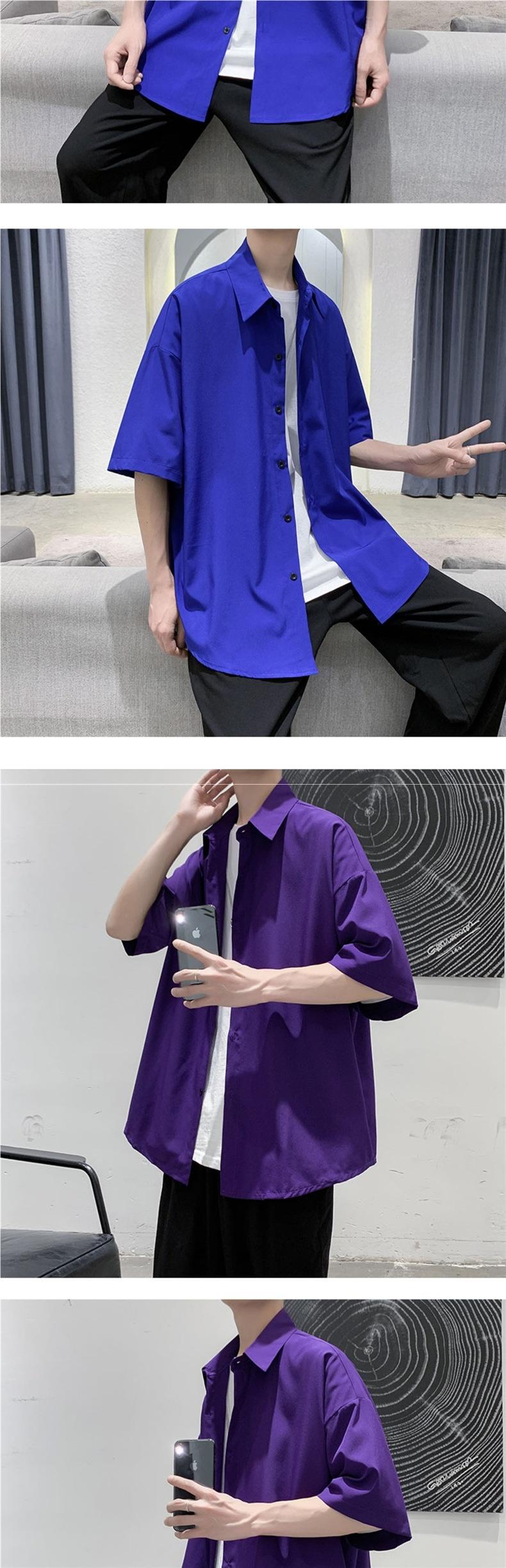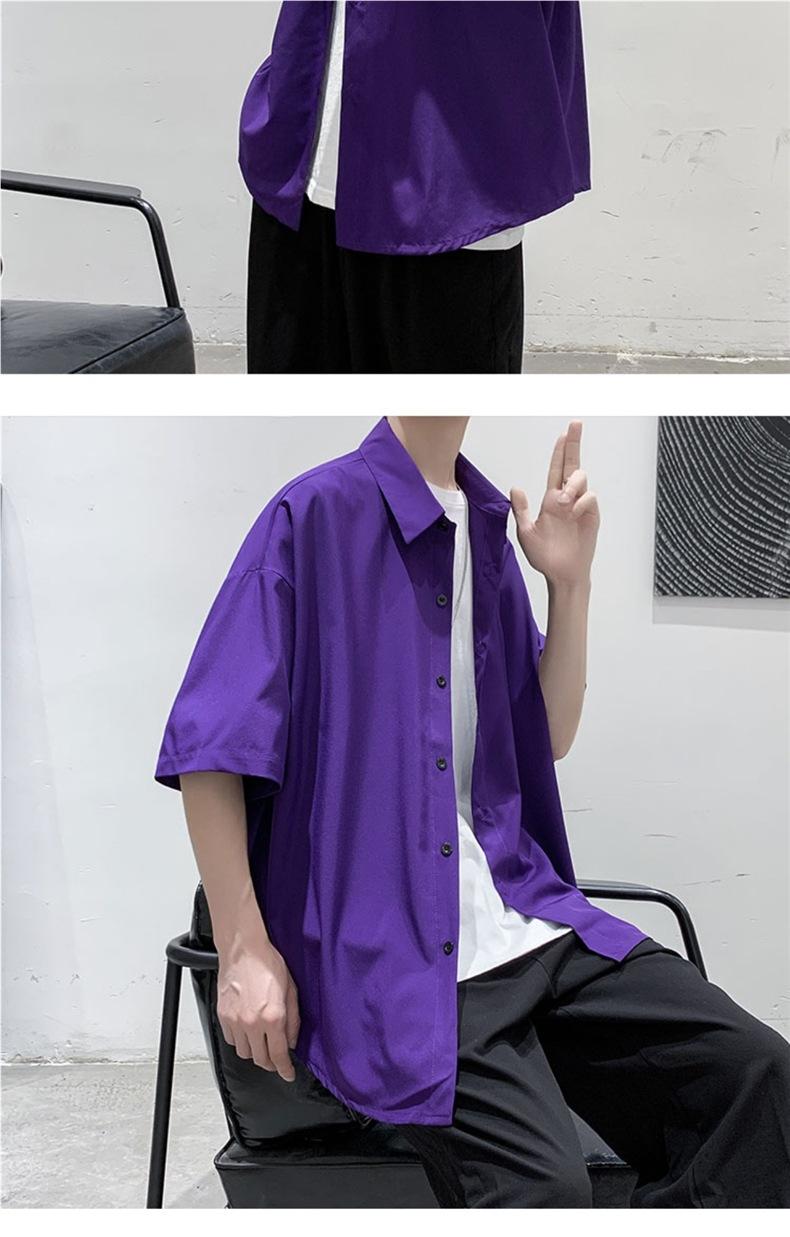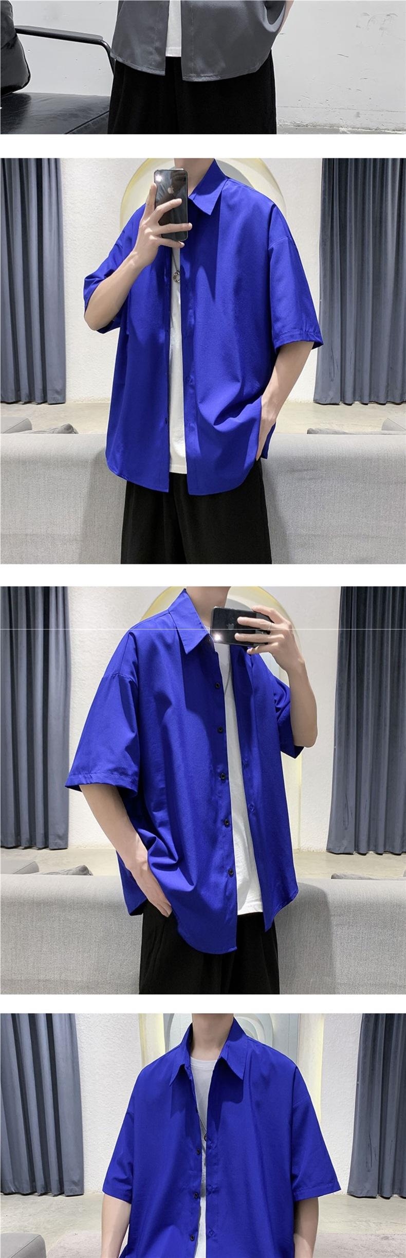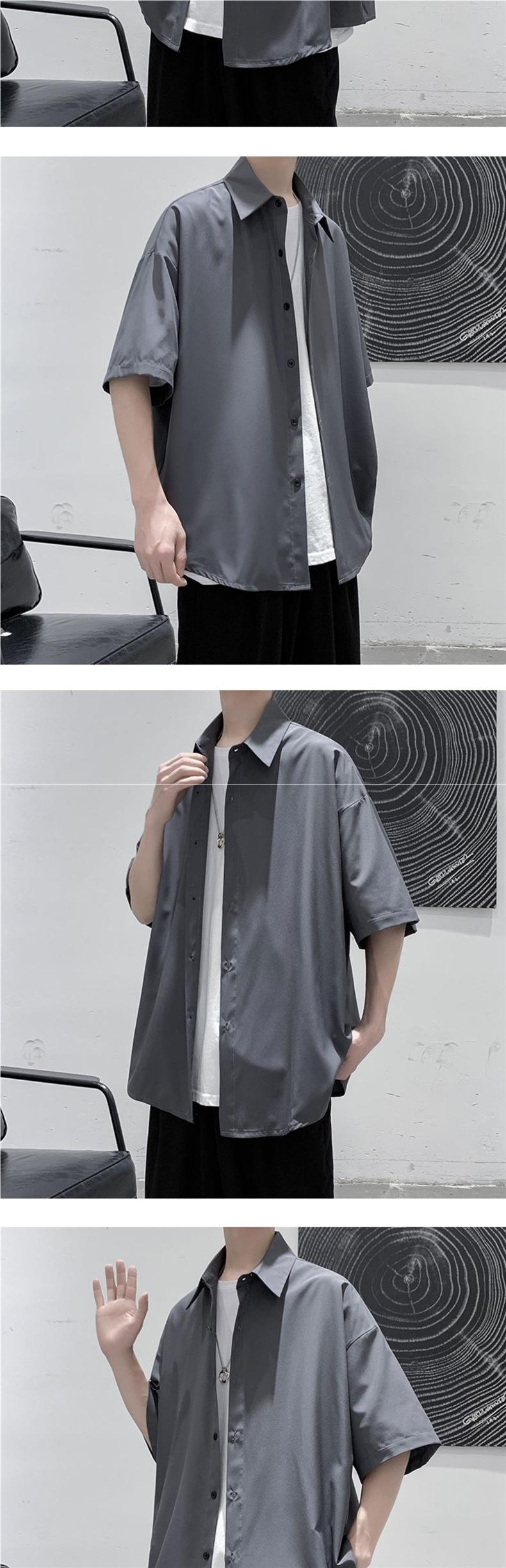 20 Verano Camisa Holgada de Manga Corta Fina Blanca A312CS Gris Negro Mezcla de Algodón