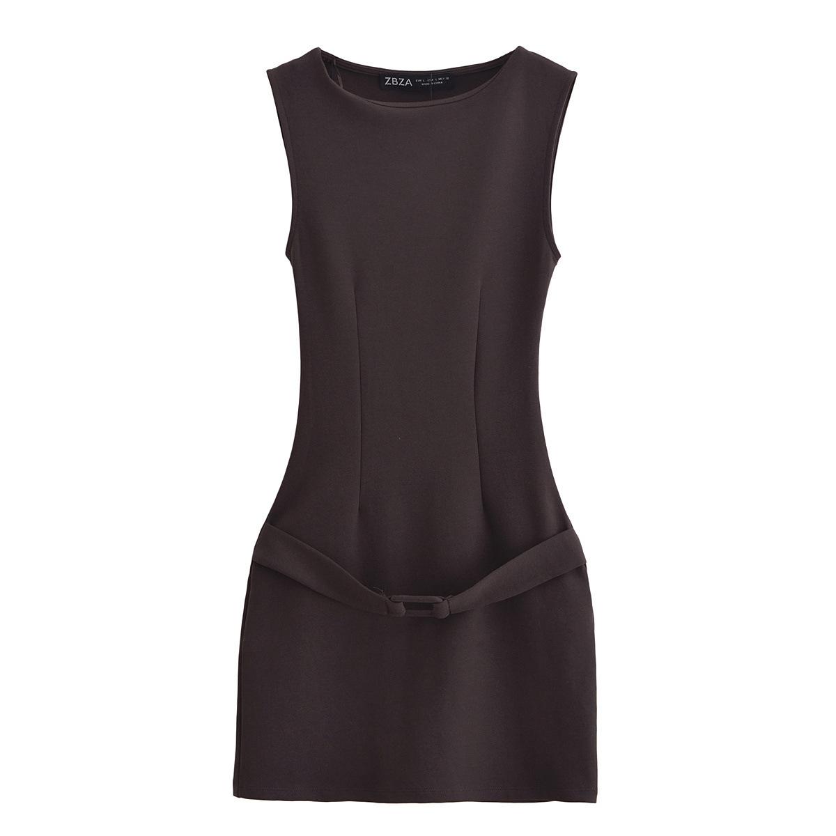 2025 primavera nuevo temperamento europeo y americano transfronterizo para mujer con cinturón vestido ajustado sin mangas w040 2574