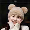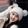 Sombrero de punto cálido de invierno para niña, lindo pompón de piel, estilo europeo y americano, retro, punto grueso trenzado, coreano, protección para las orejas, sombrero de lana