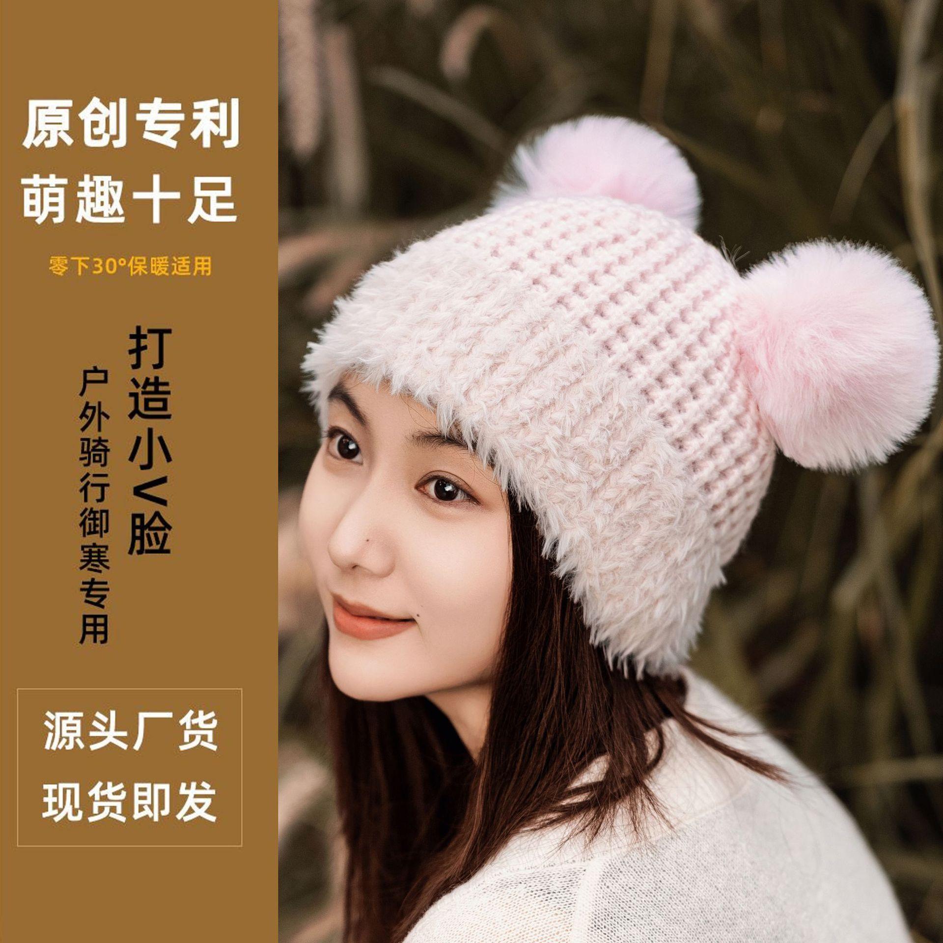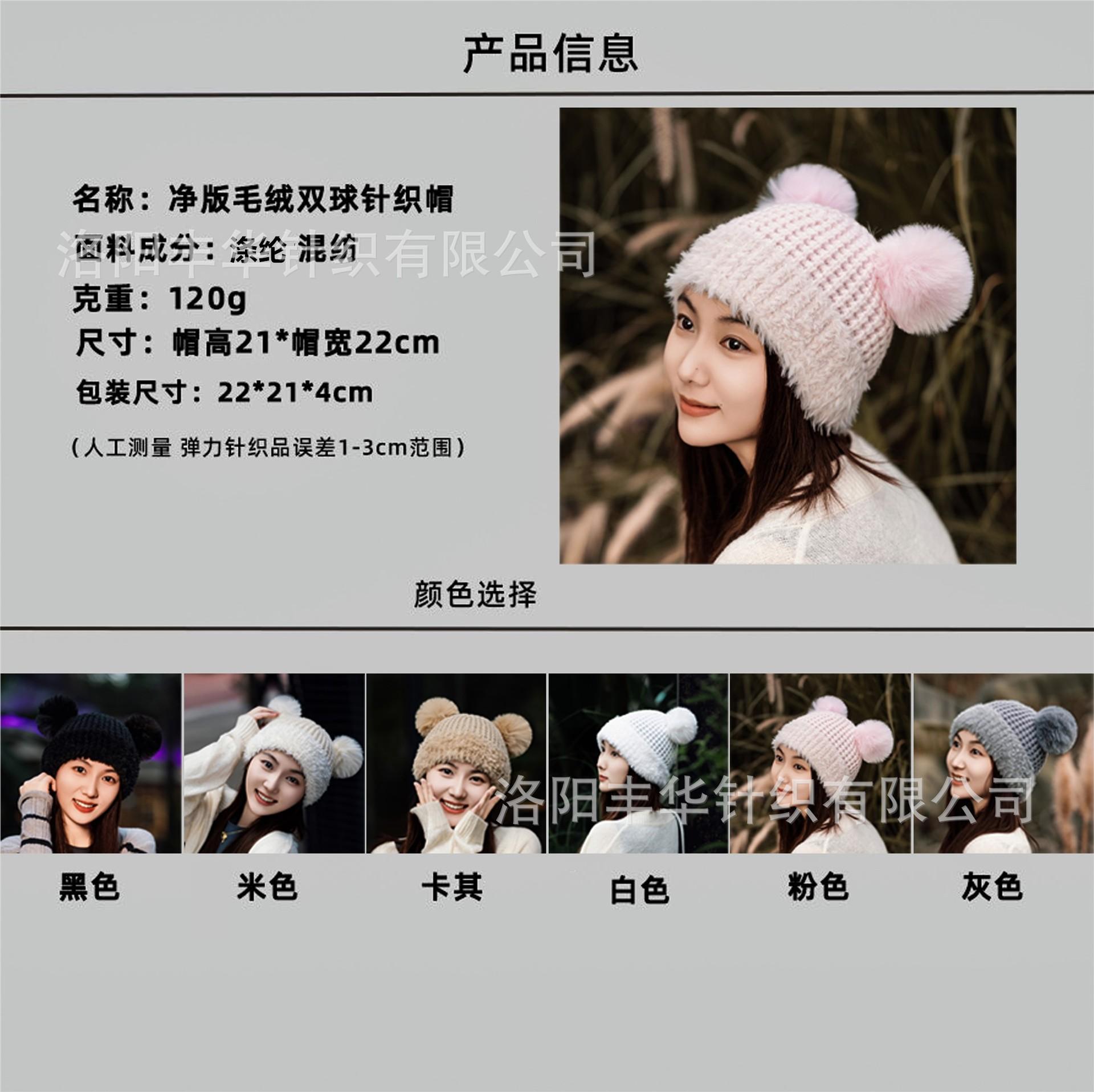 Plush double ball splicing-black, Plush double ball splicing-off-white, Plush double ball splicing-khaki, Plus...