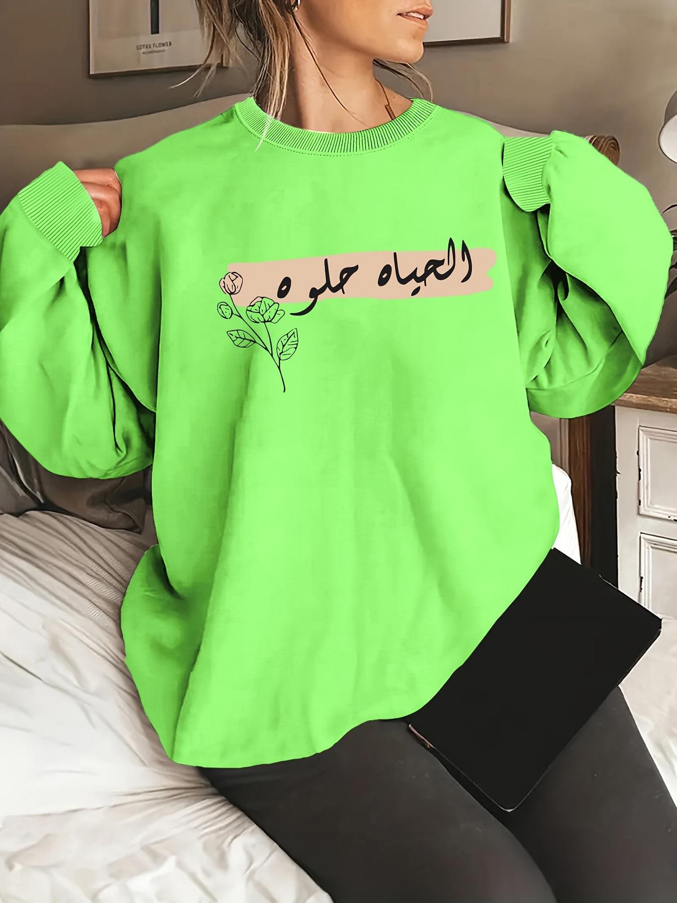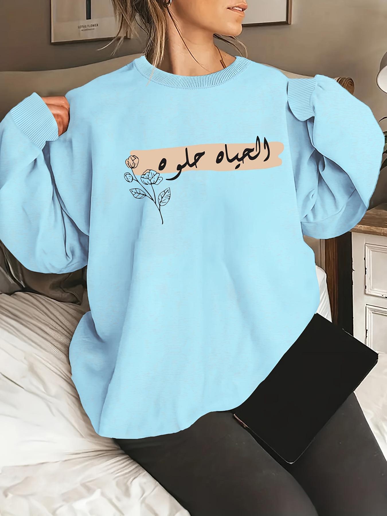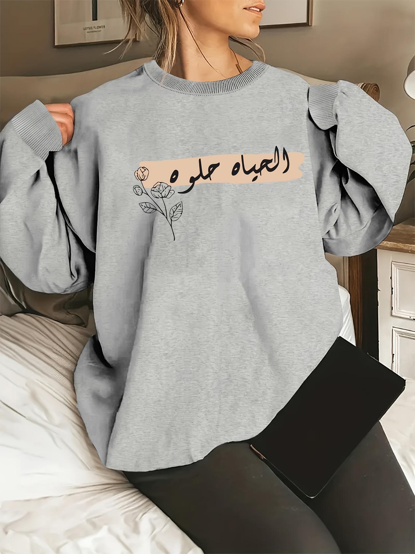 Exportación Transfronteriza Sudadera de Moda de Cuello Redondo Talla Grande con Estampado de Flores y Letras Oglr más Vendida en Europa y América